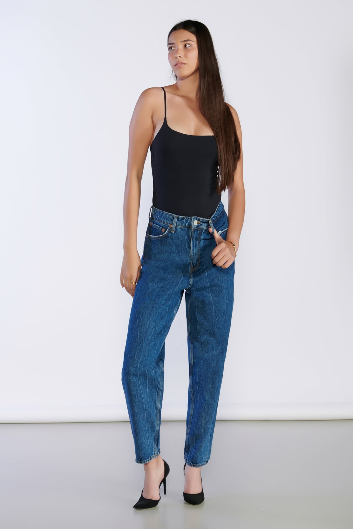 Lacivert Yüksek Bel Boyfriend Jeans