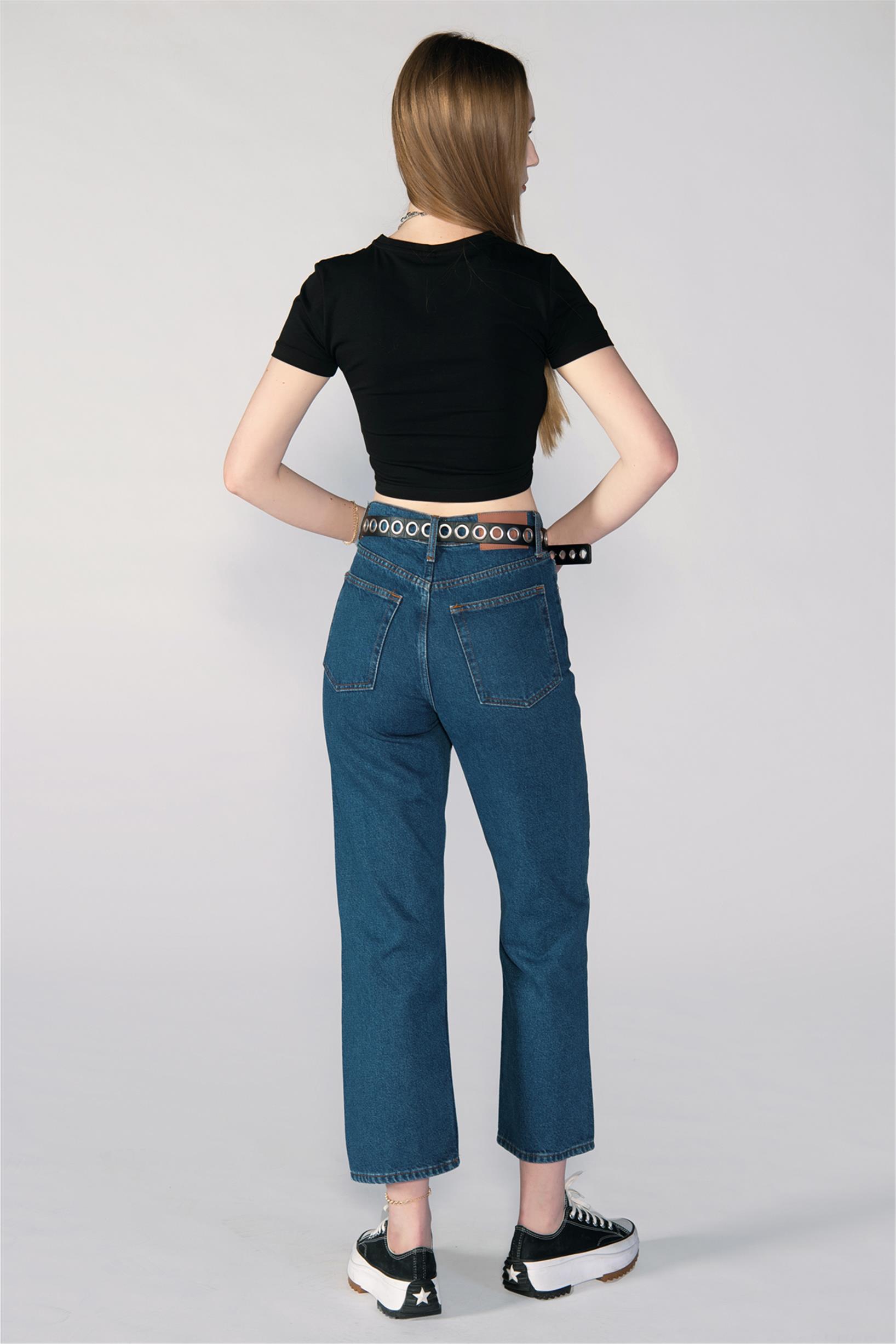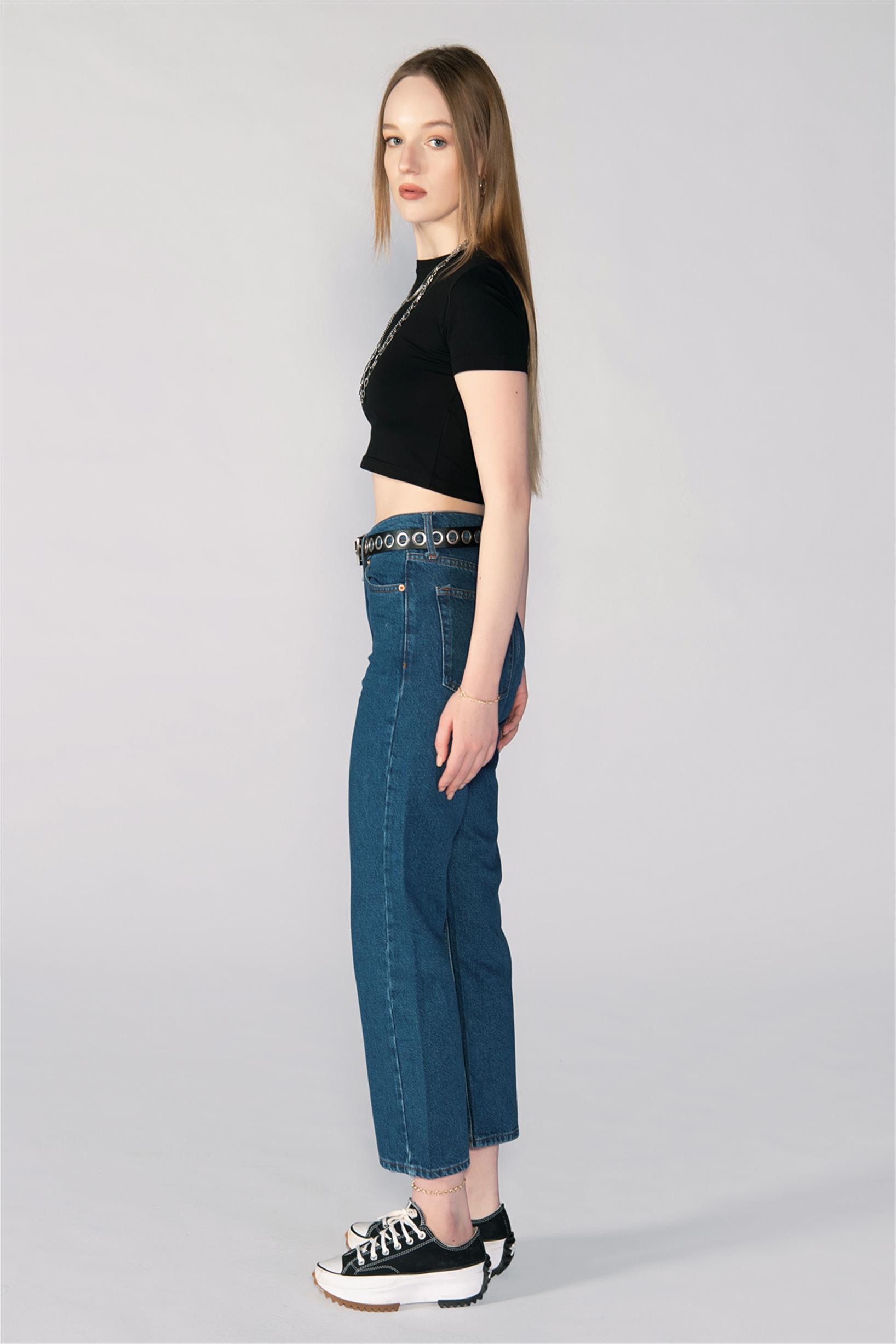 Lacivert Yüksek Bel Wide Leg Pantolon