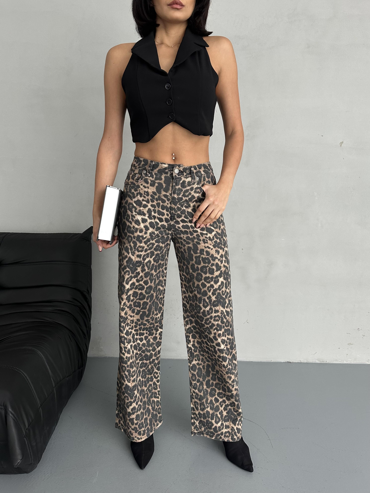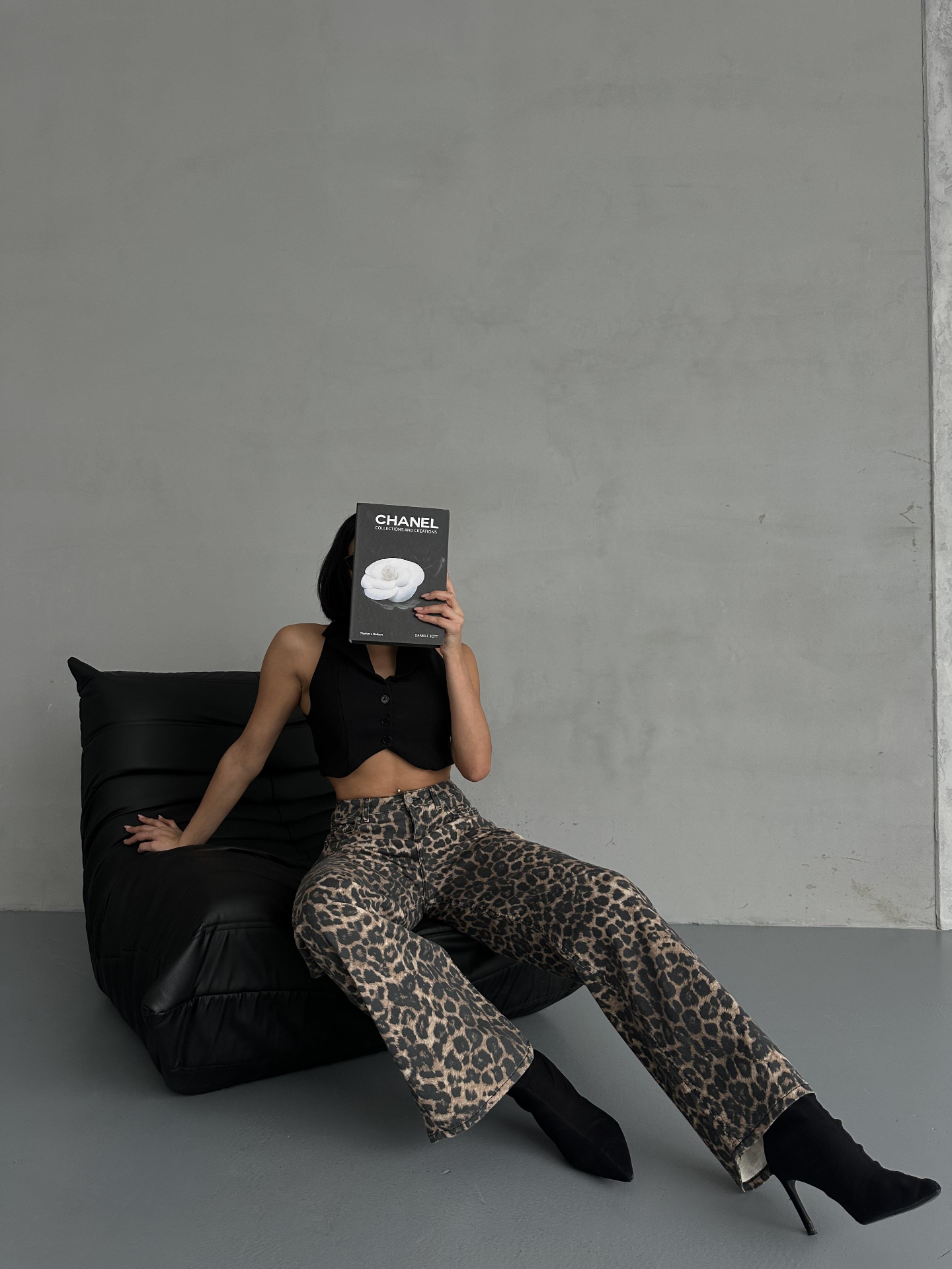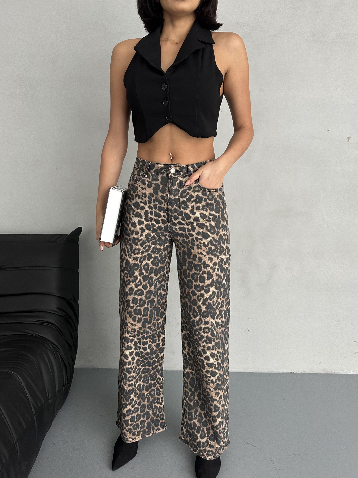 Leopar Desen Detaylı Wide Leg Gabardin Panatolon