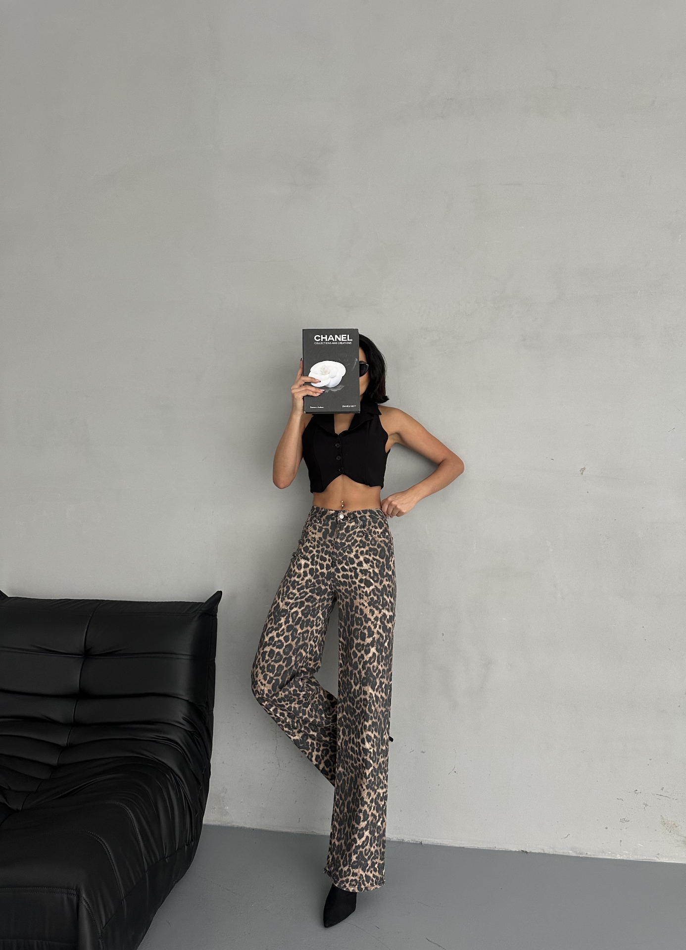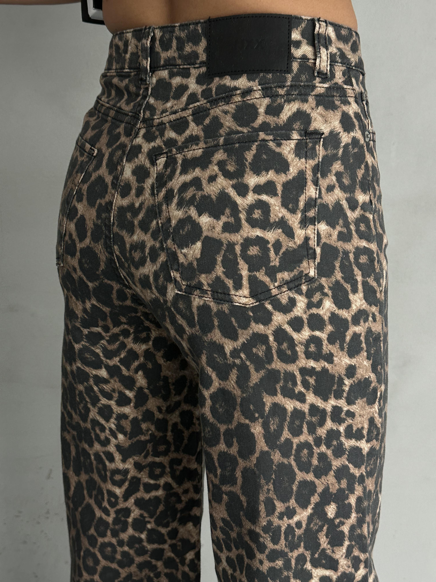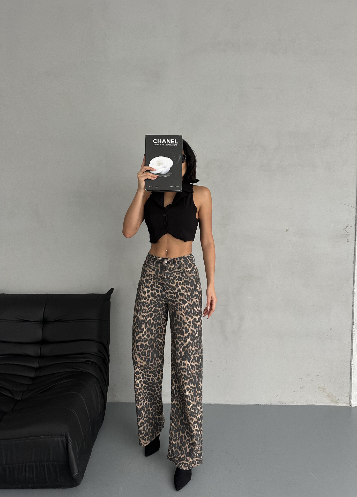 Leopar Desen Detaylı Wide Leg Gabardin Panatolon