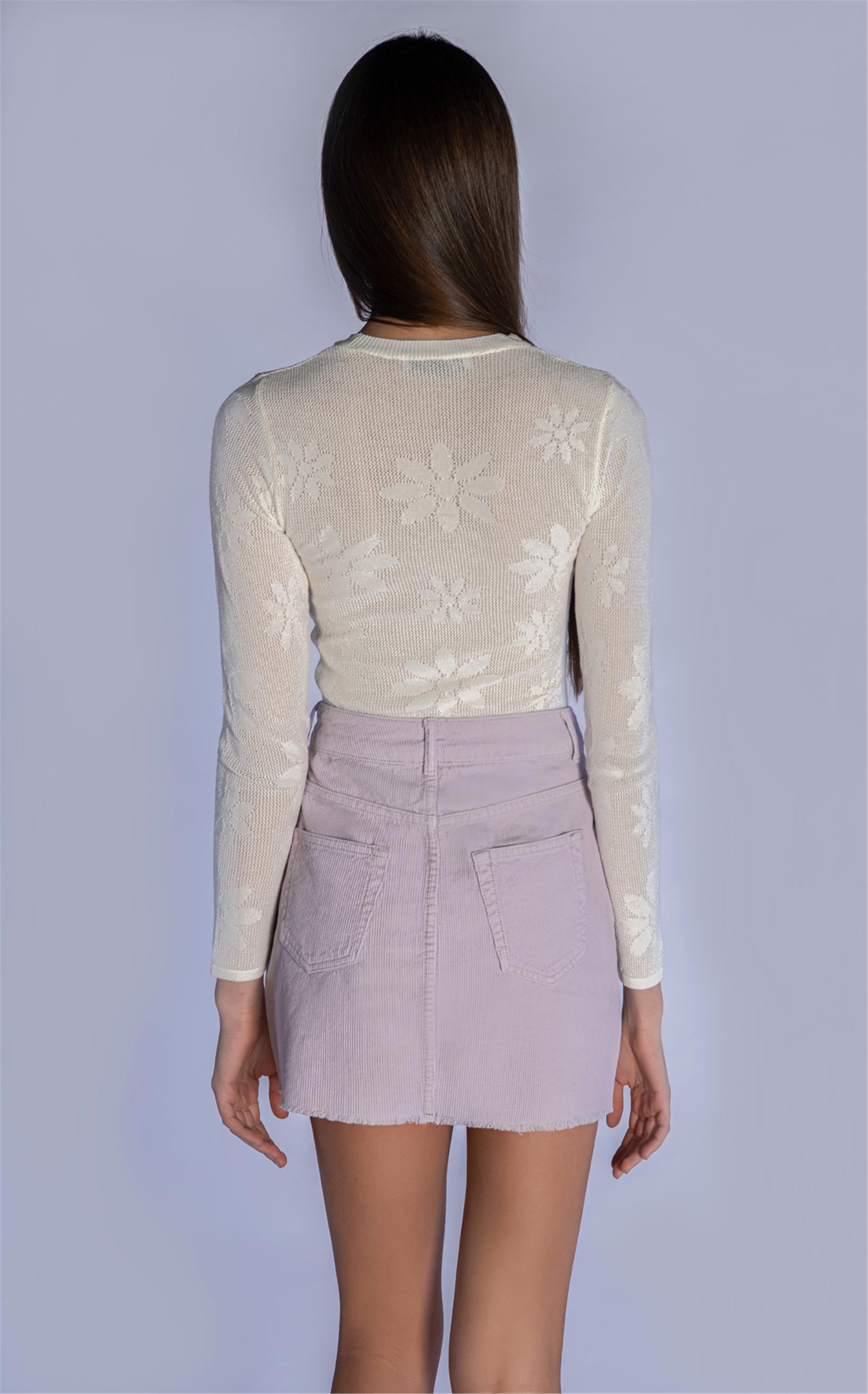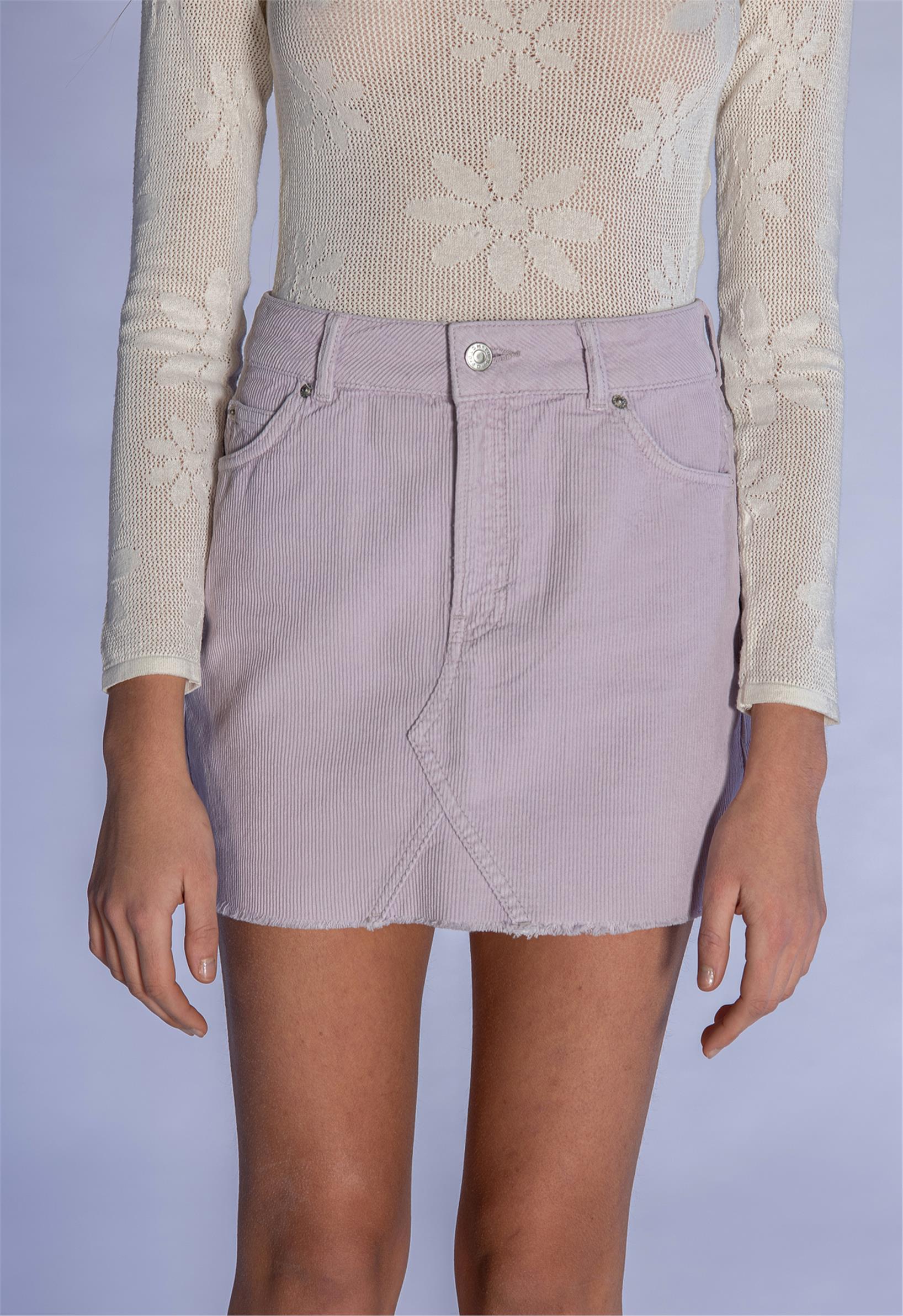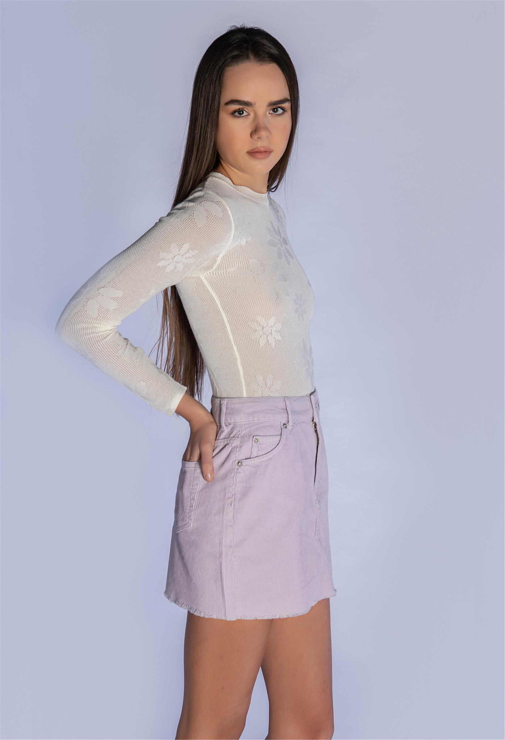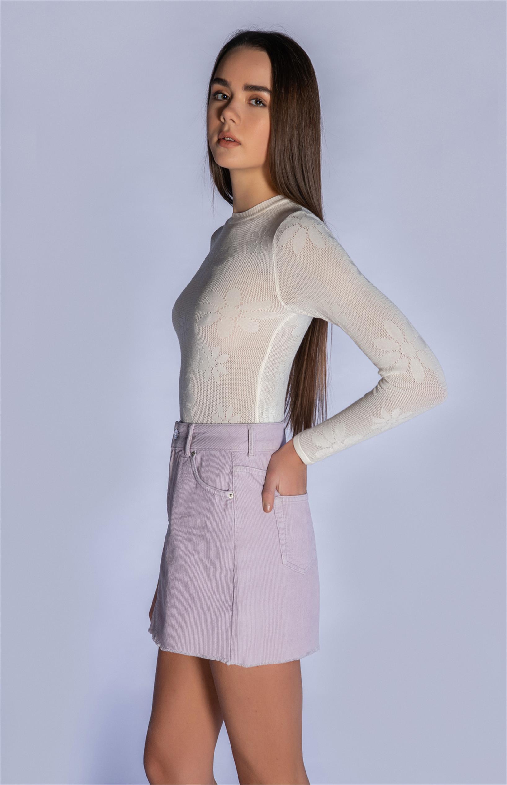 Lila Fitilli Kadife Mini Etek