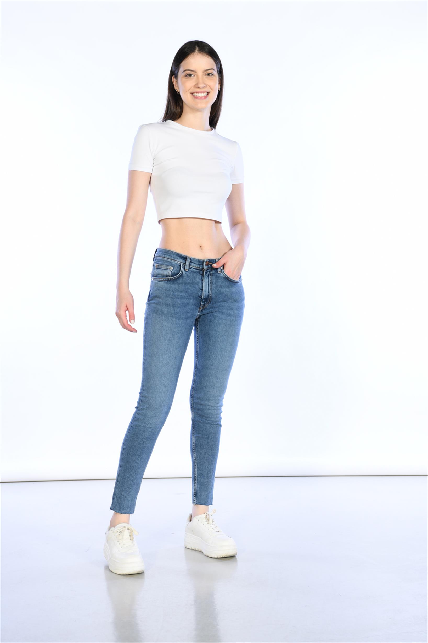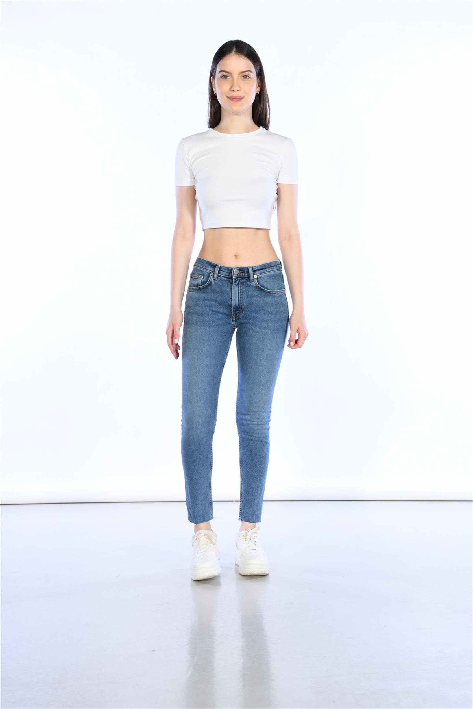 Mavi Düşük Bel Skinny Jeans