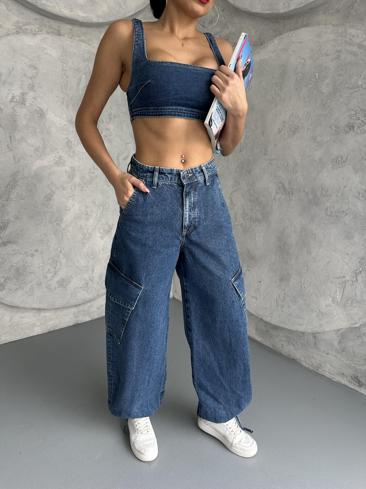 Mavi Kargo Cep Bağcık Detaylı Jean
