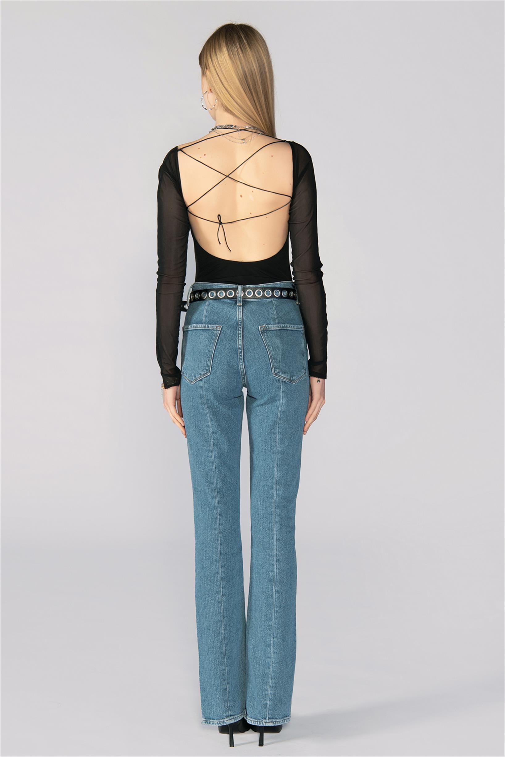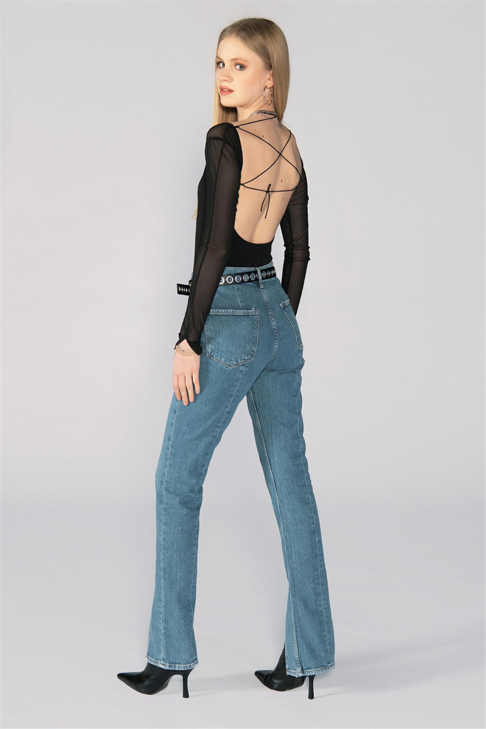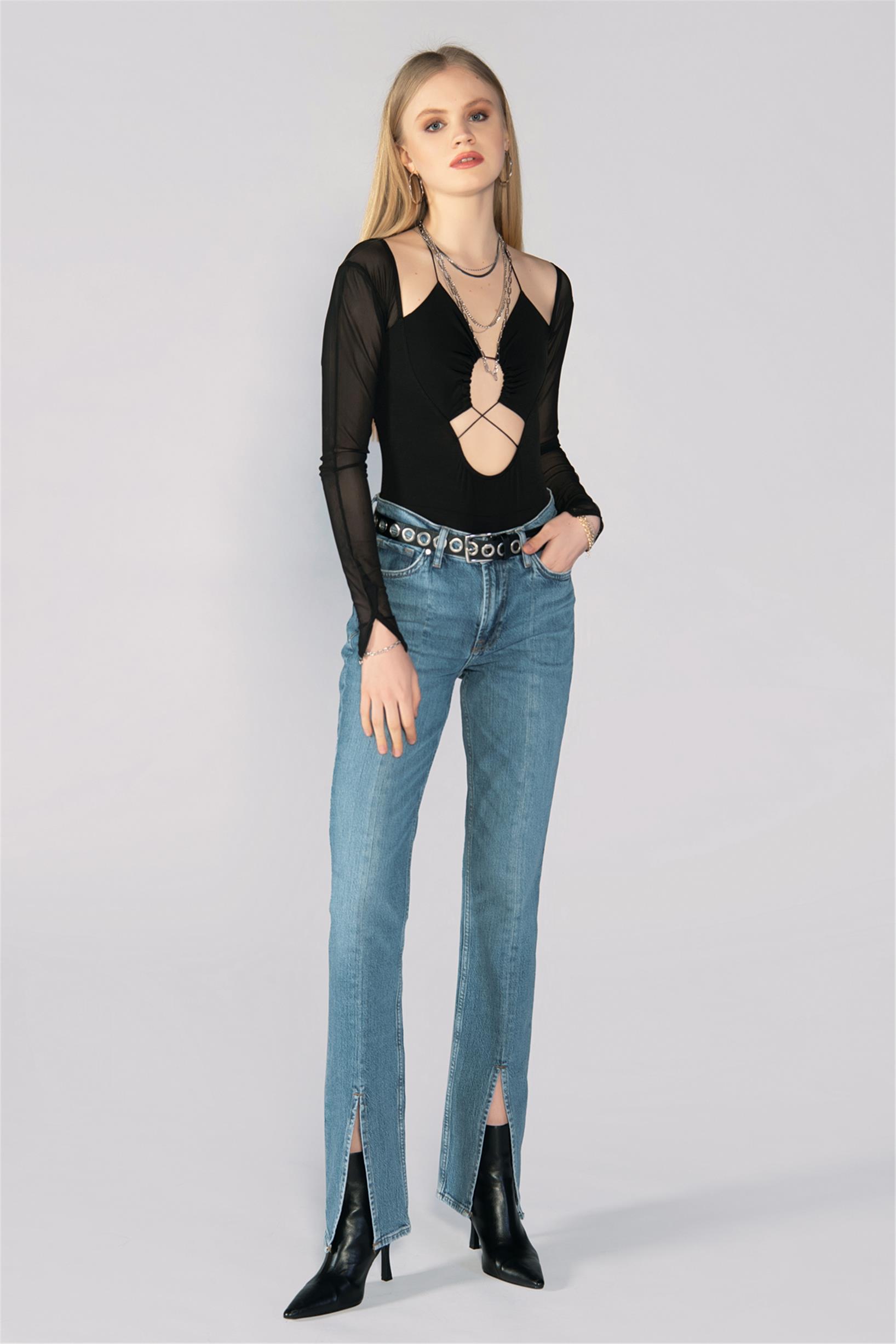 Mavi Normal Bel Paça Yırtmaçlı Straight Jeans