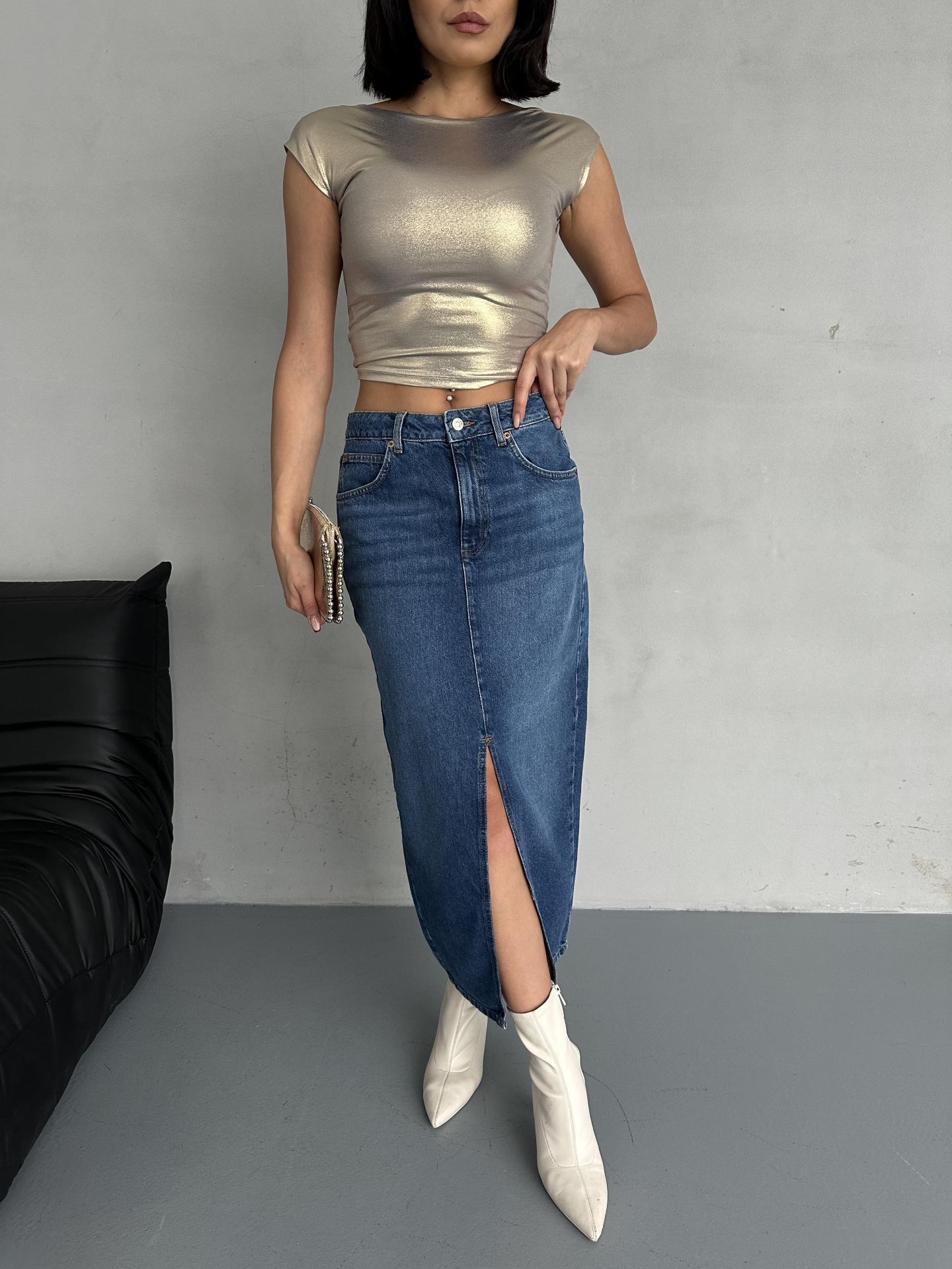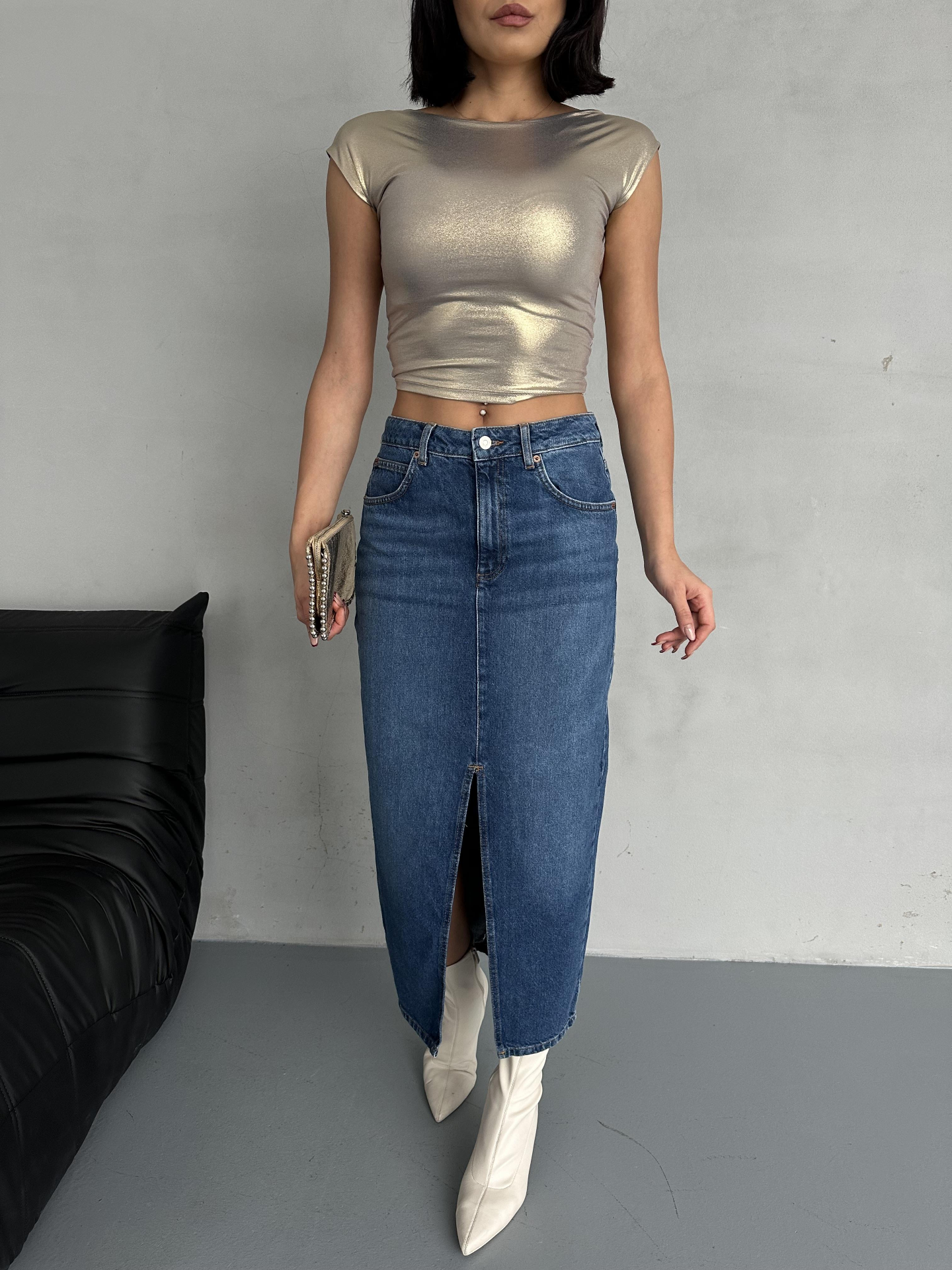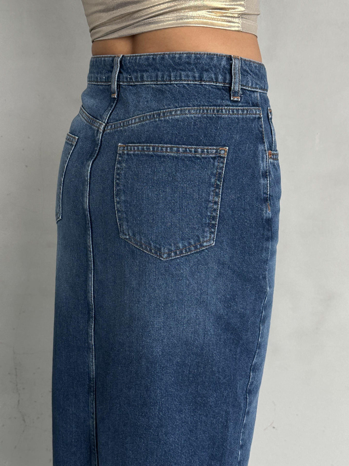 Mavi Ön Yırtmaç Detaylı Jean Etek