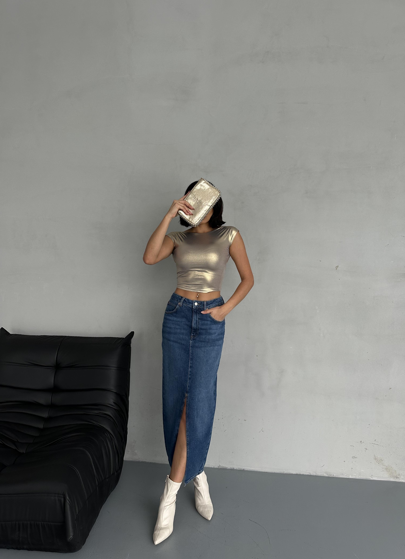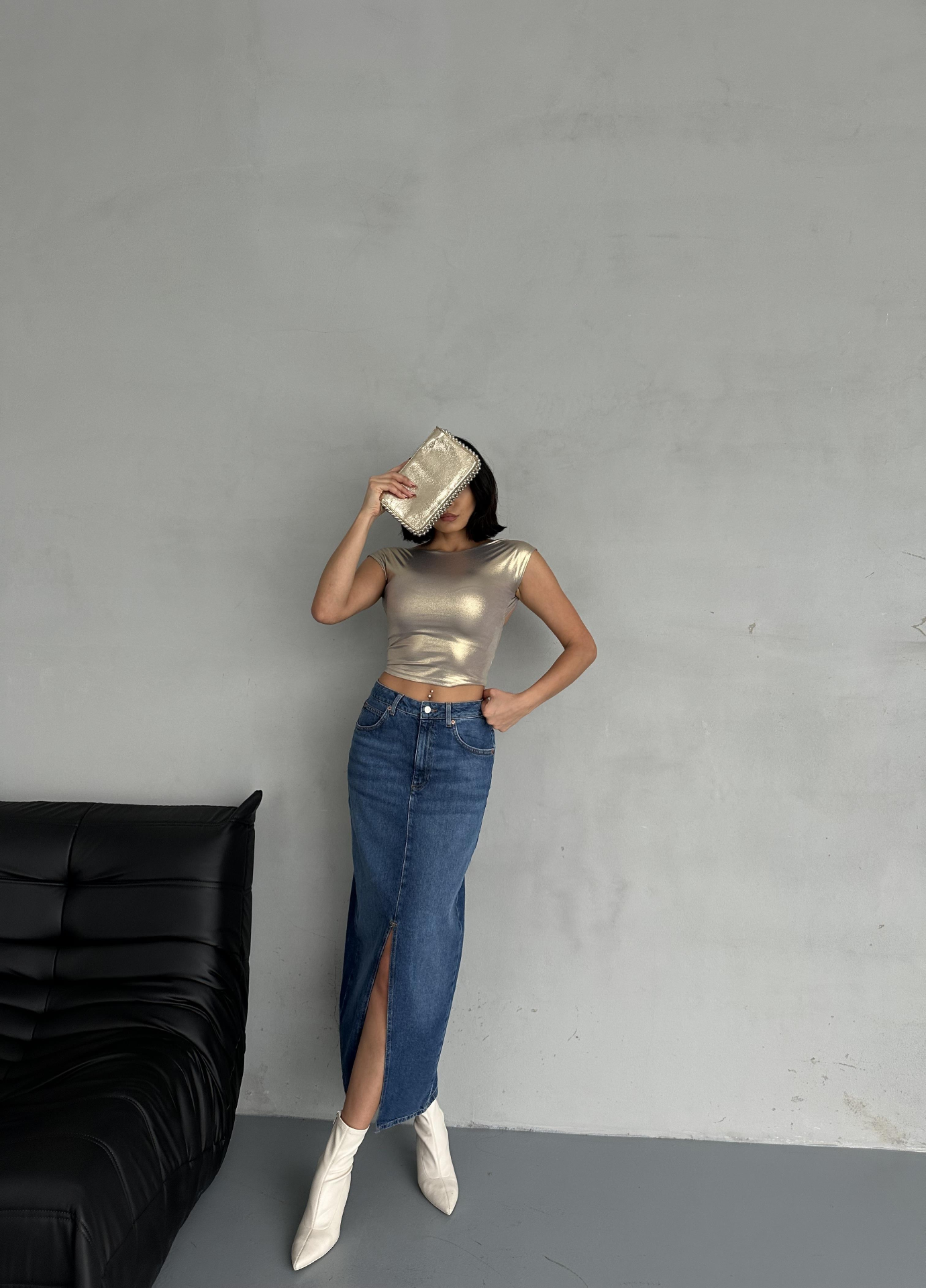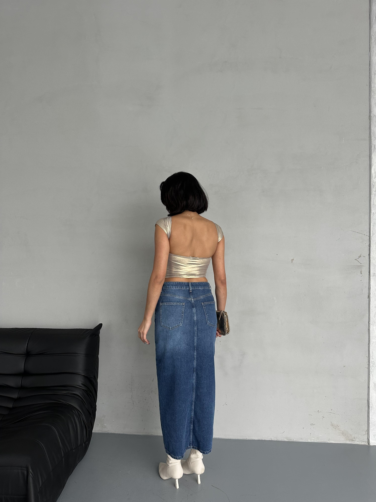 Mavi Ön Yırtmaç Detaylı Jean Etek