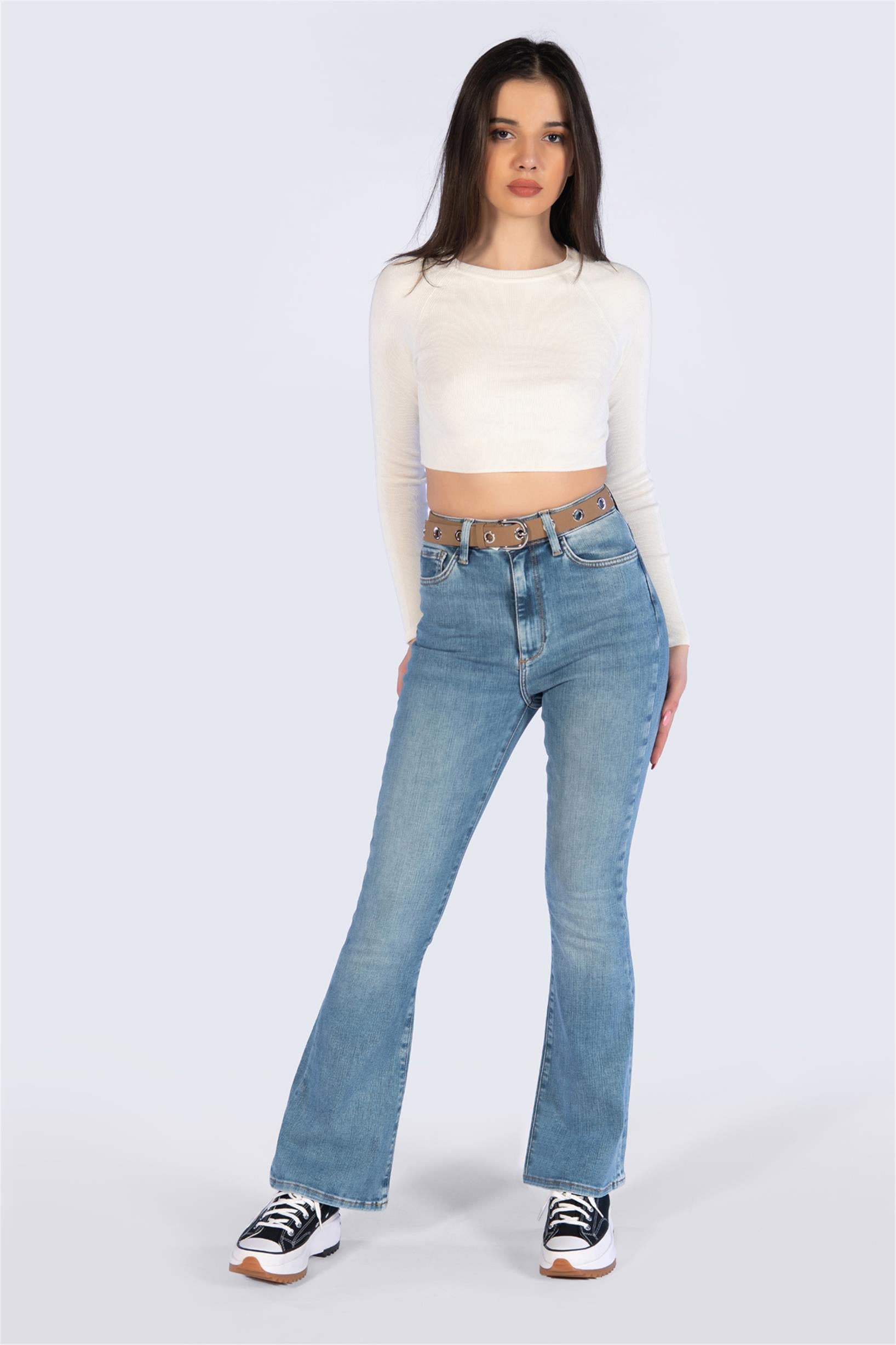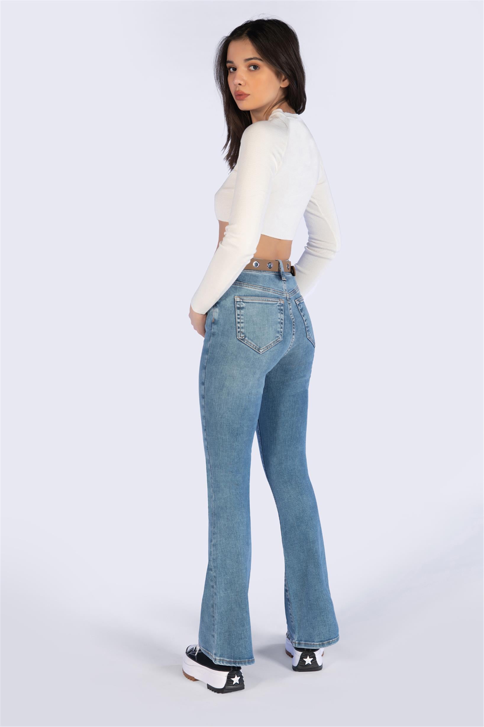 Mavi Yüksek Bel Flare Jeans