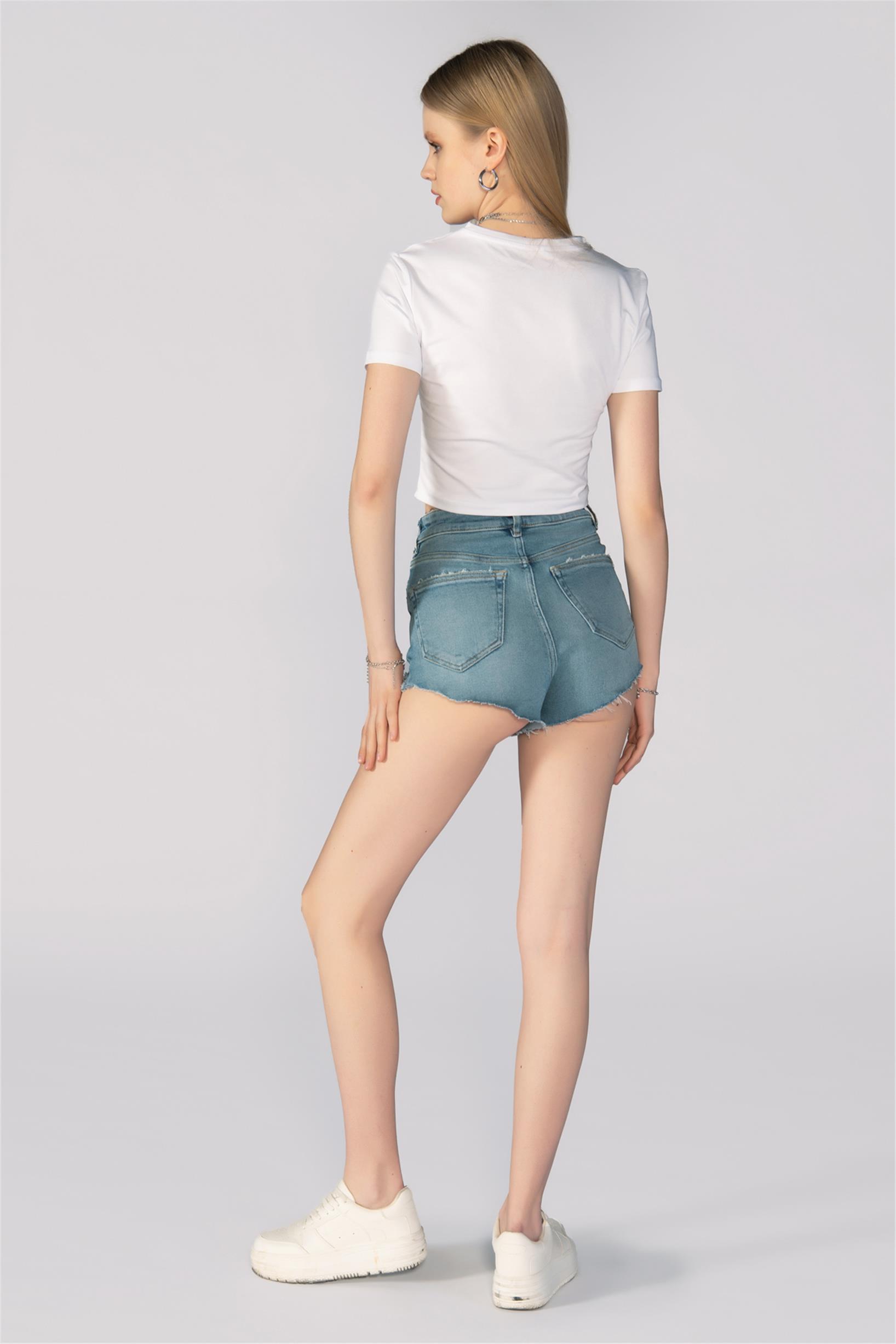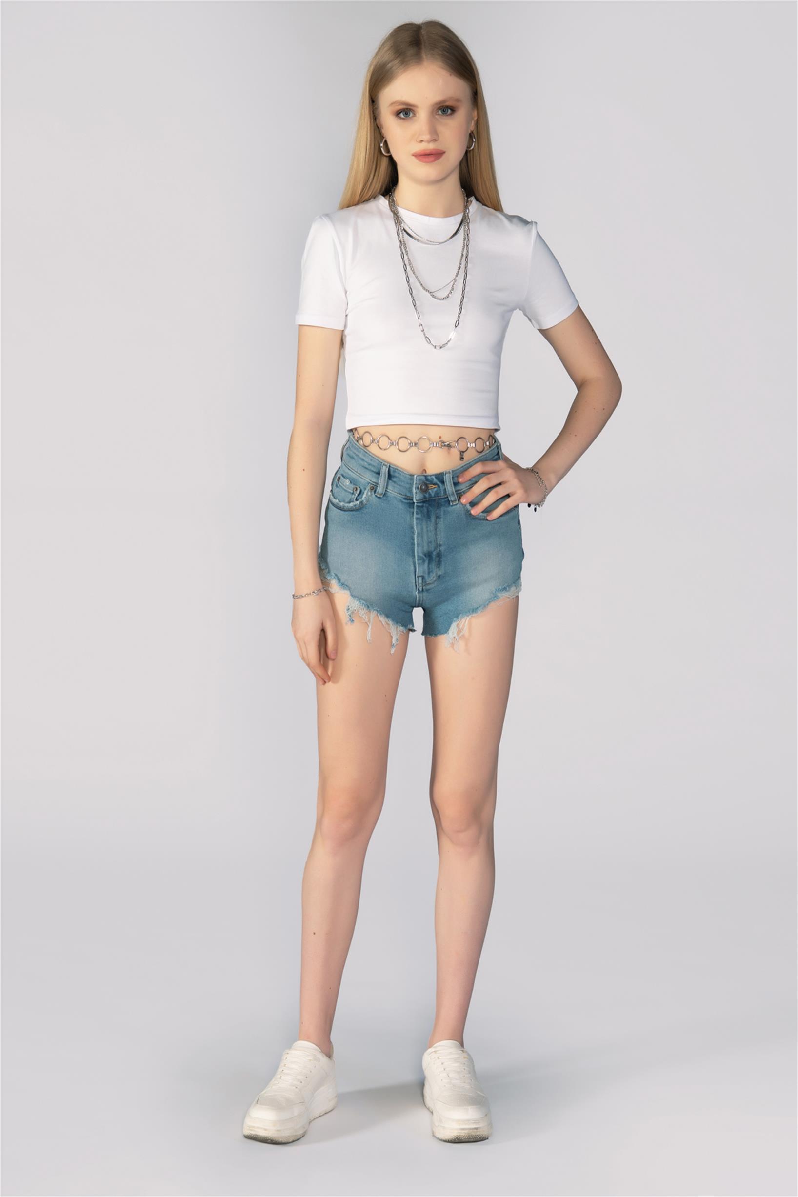 Mavi Yüksek Bel Kot Şort