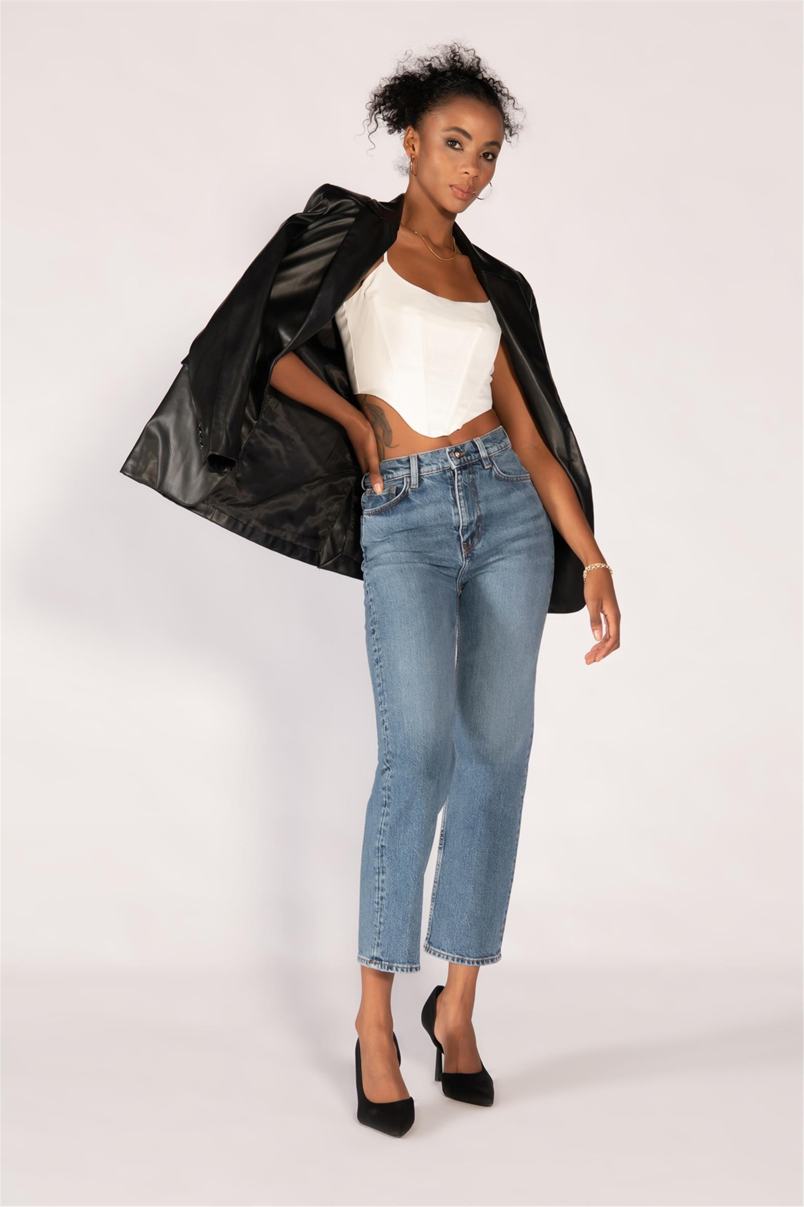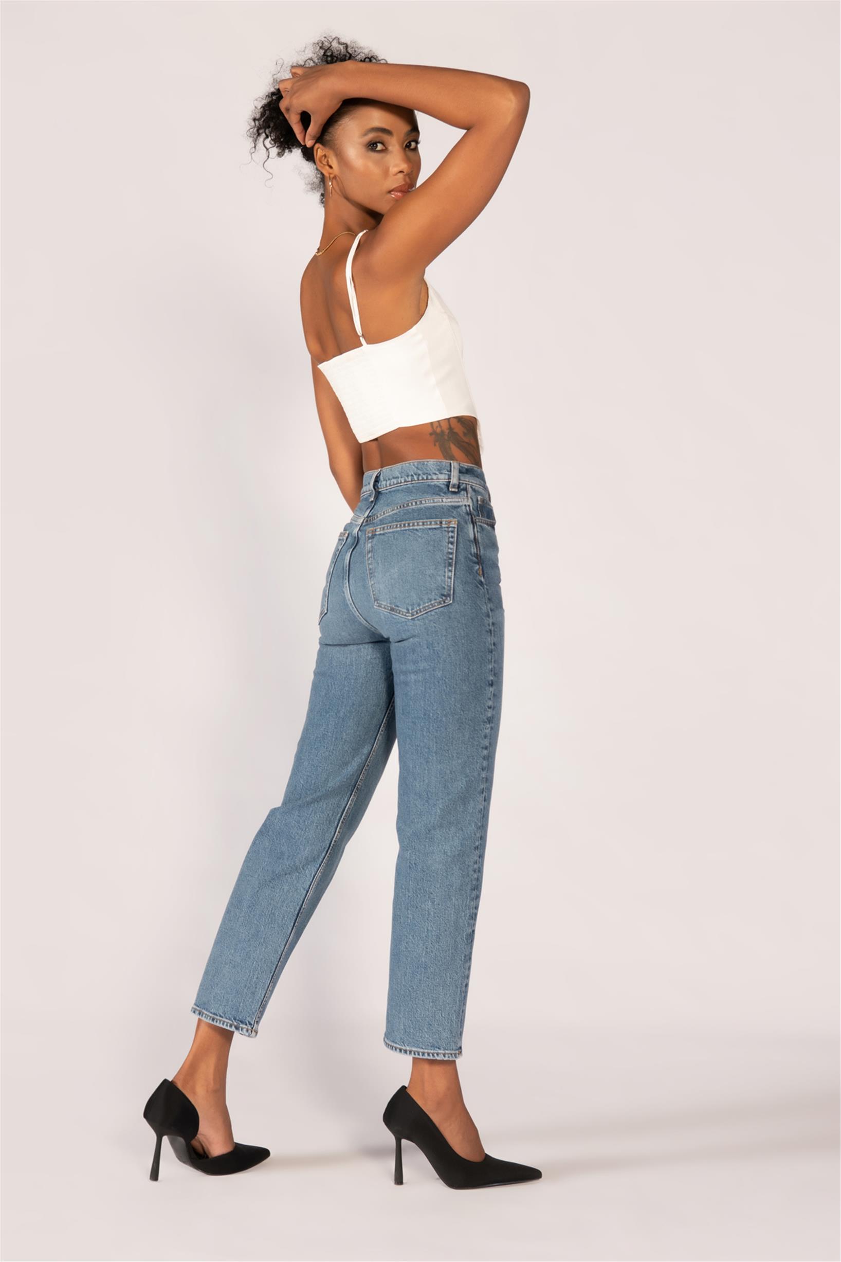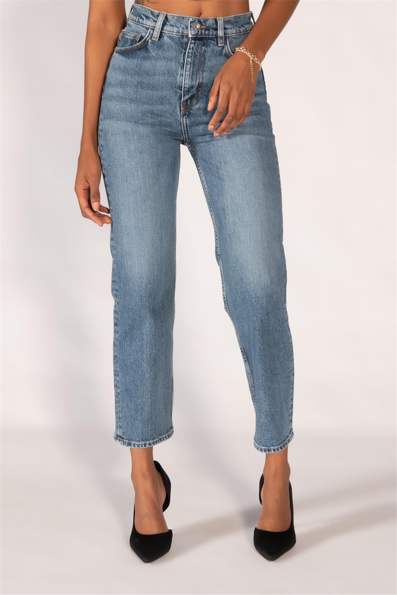 Mavi Yüksek Bel Mom Jeans