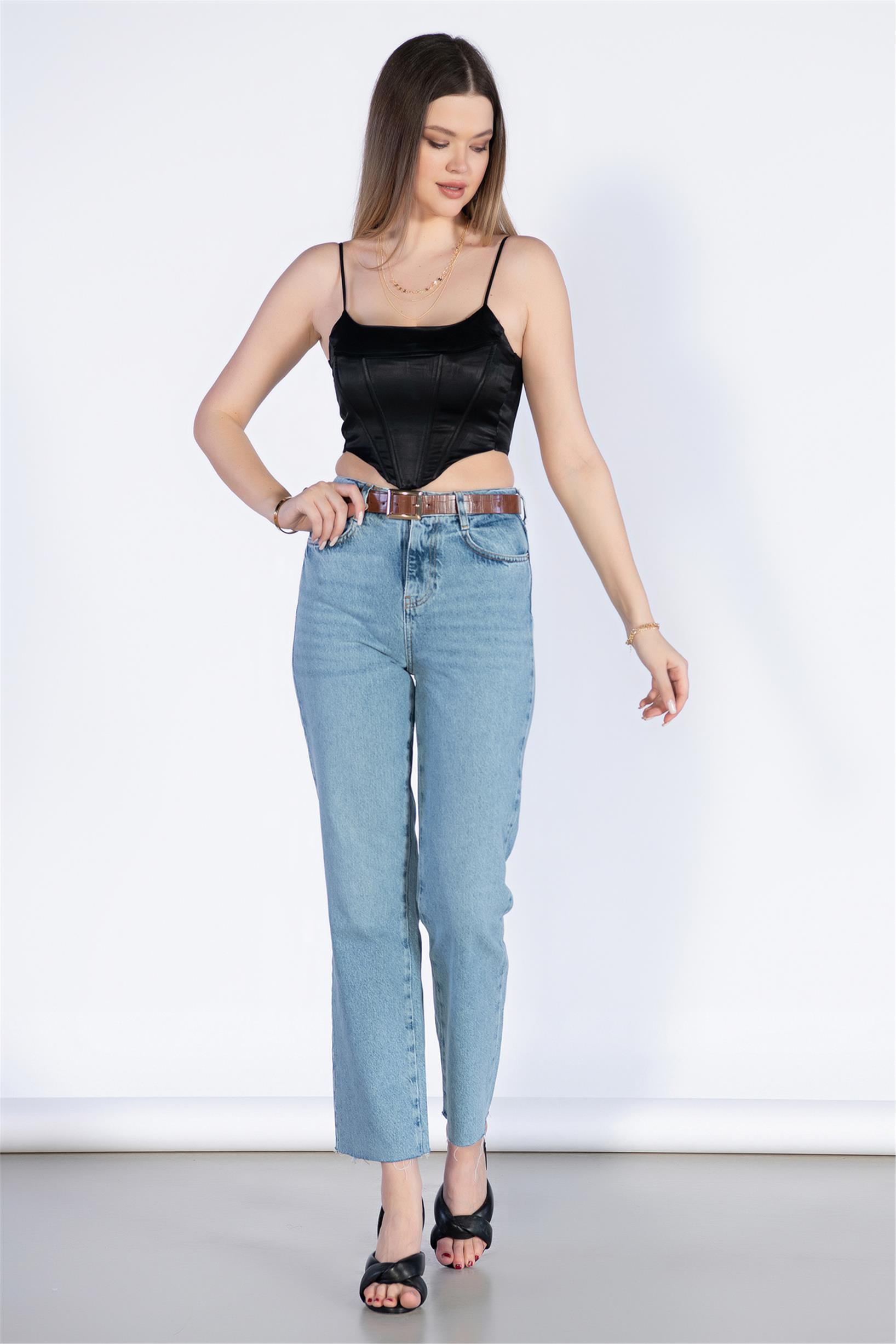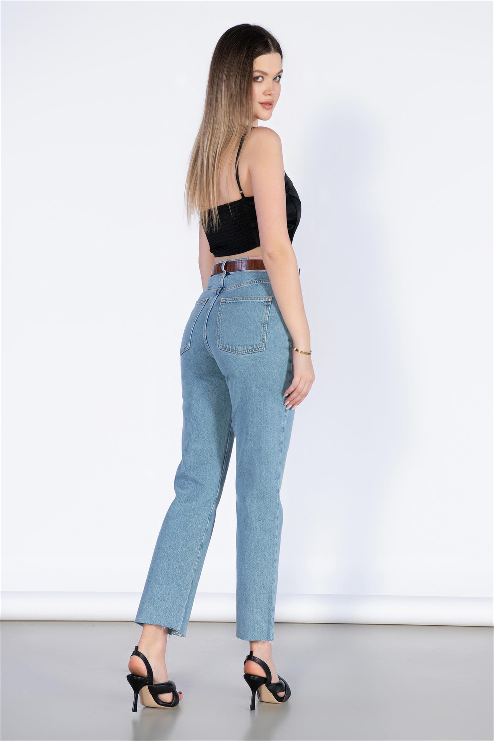 Mavi Yüksek Bel Mom Jeans