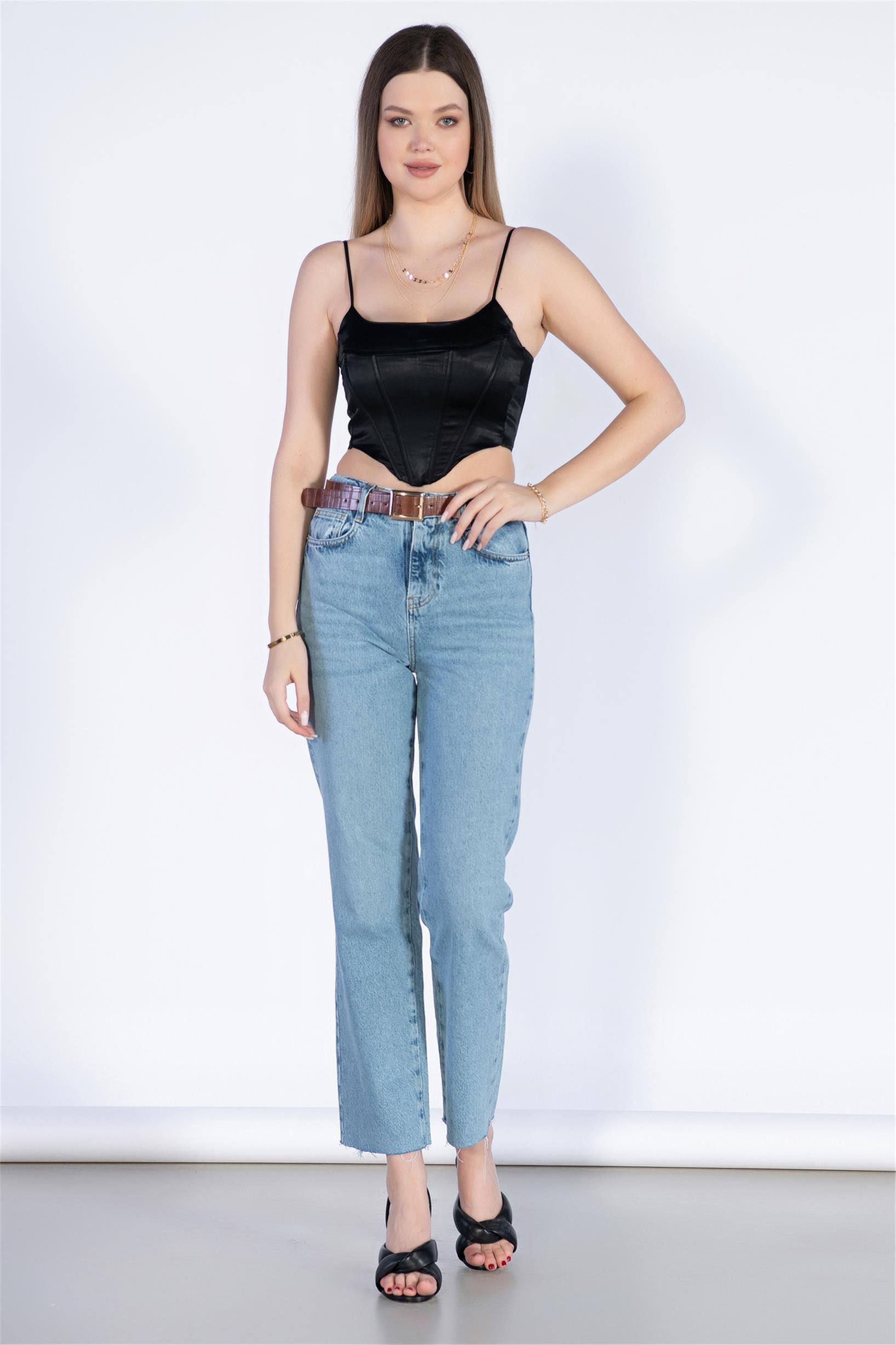 Manken Üstündeki Beden XS/34 Bedendir Manken Ölçüler;Boy:179 - Göğüs:94 - Bel:64 - Kalça:9734 Beden Ürün Ölçüleri: Bel:32 Basen:43 İç Bacak Boy:72 Tam Boy:100