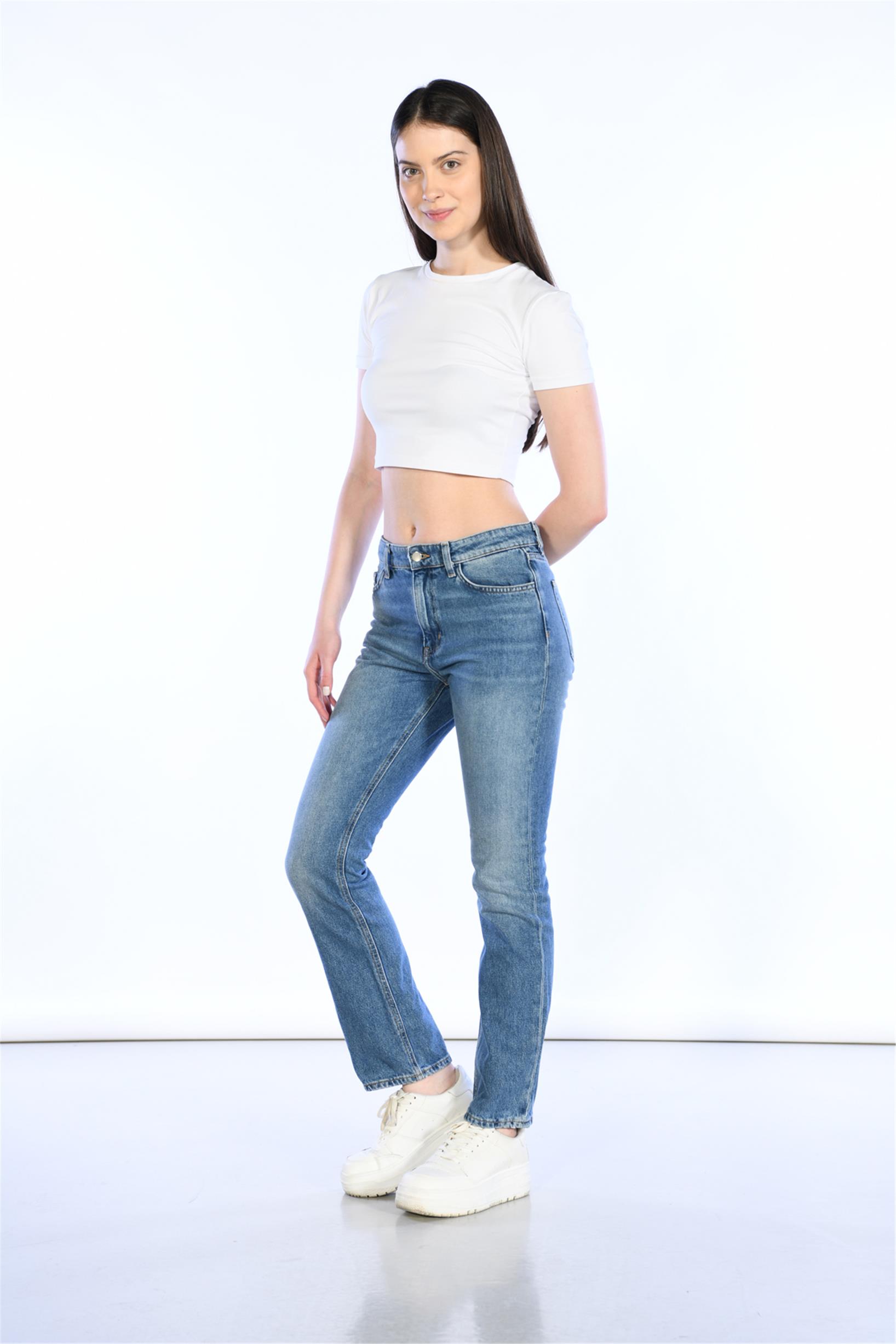 Mavi Yüksek Bel Mom Jeans