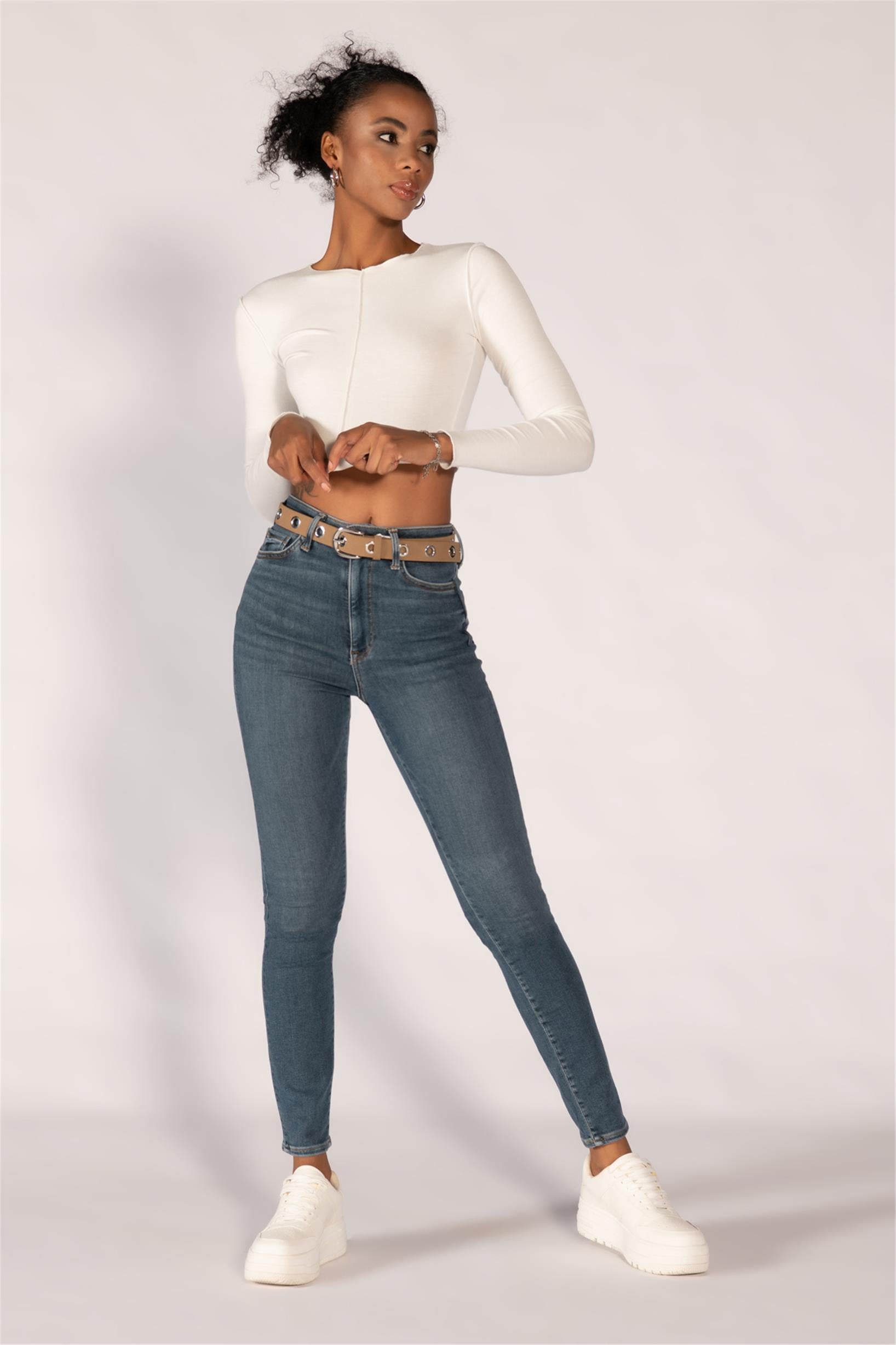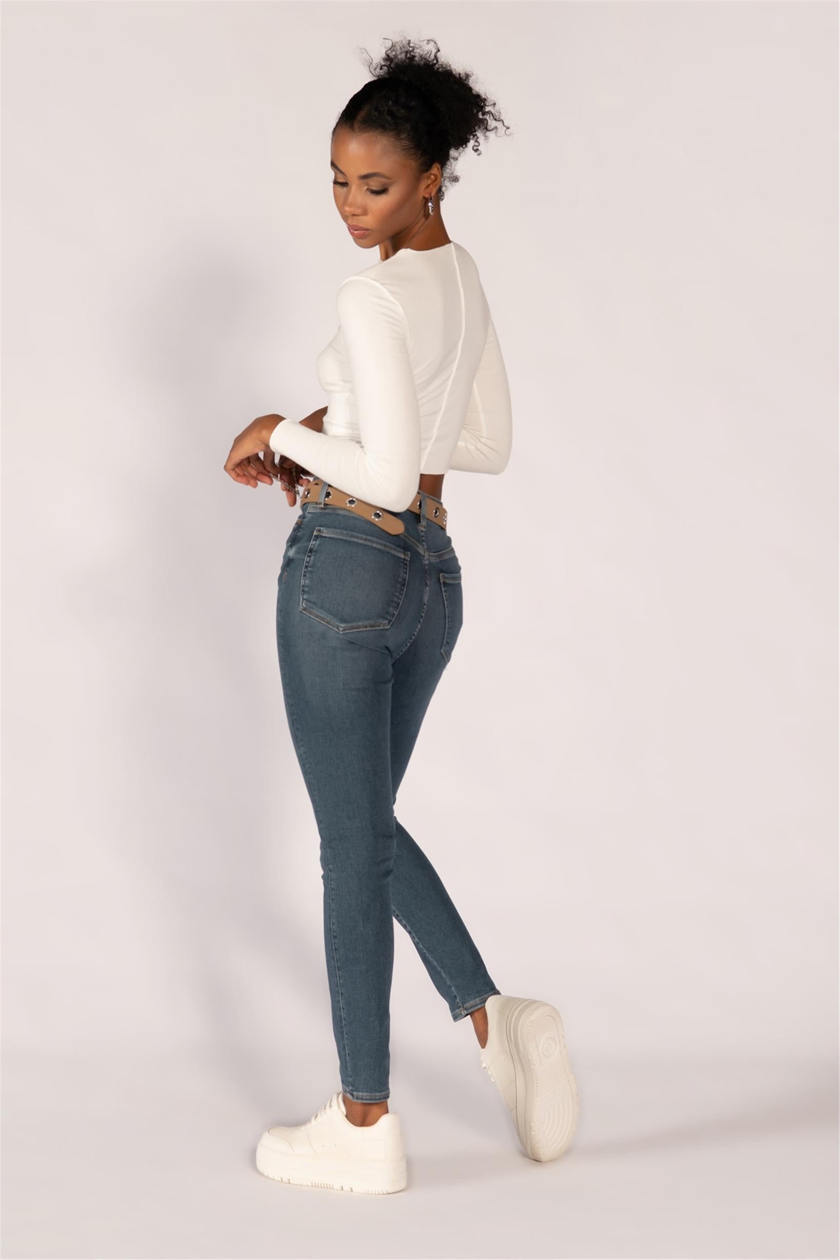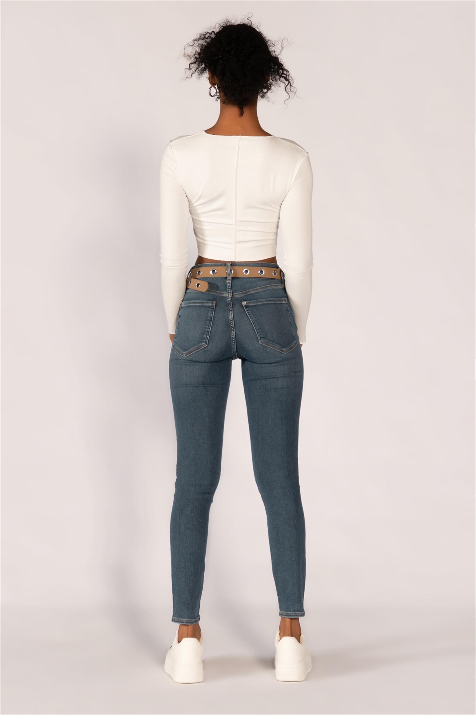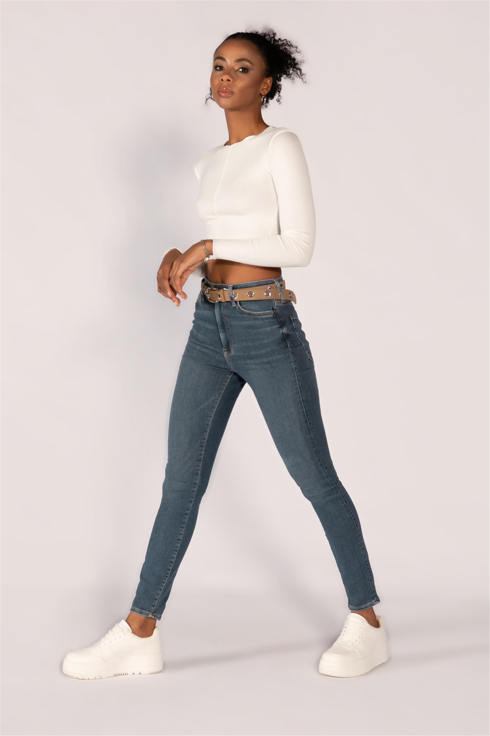 Mavi Yüksek Bel Skinny Jeans