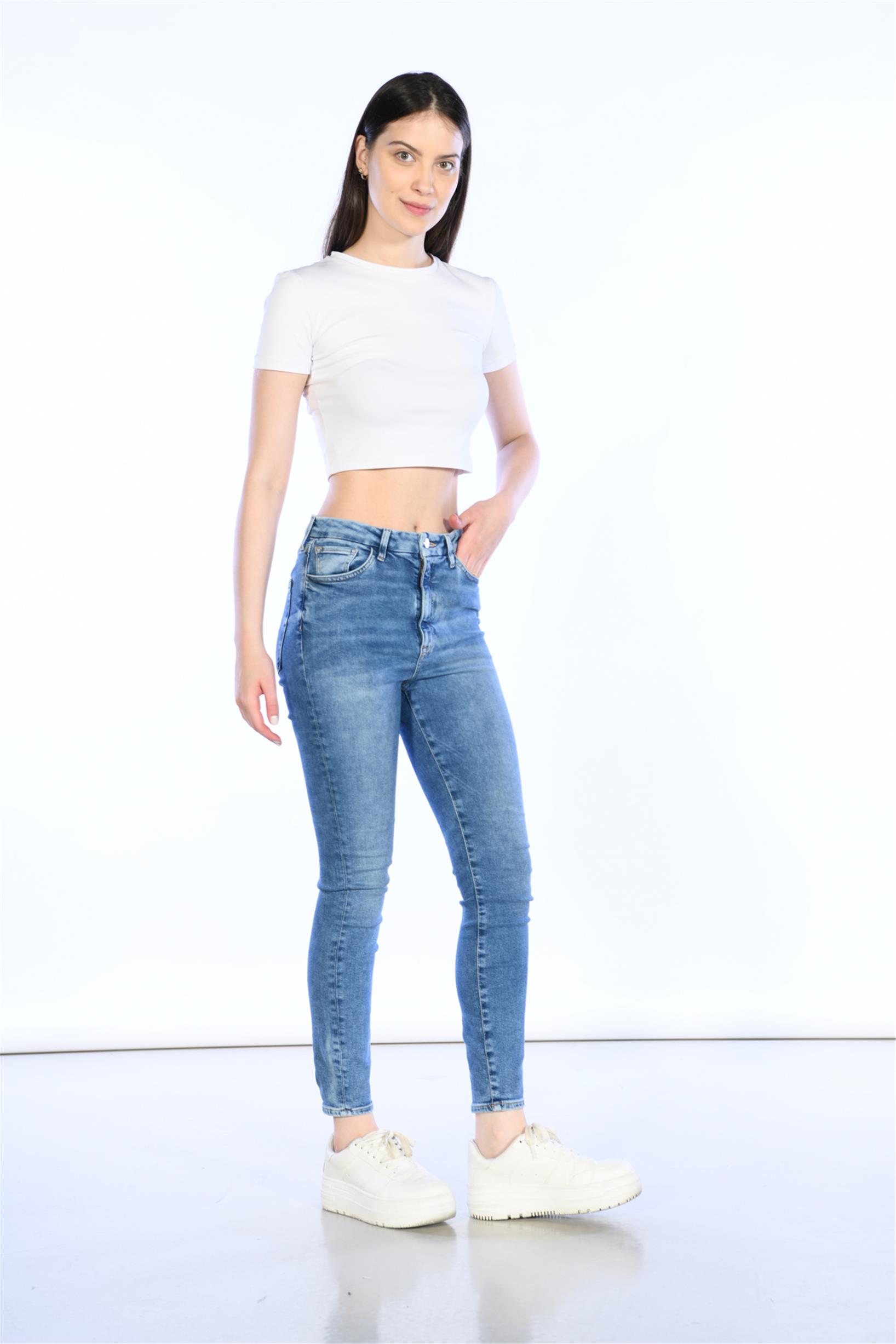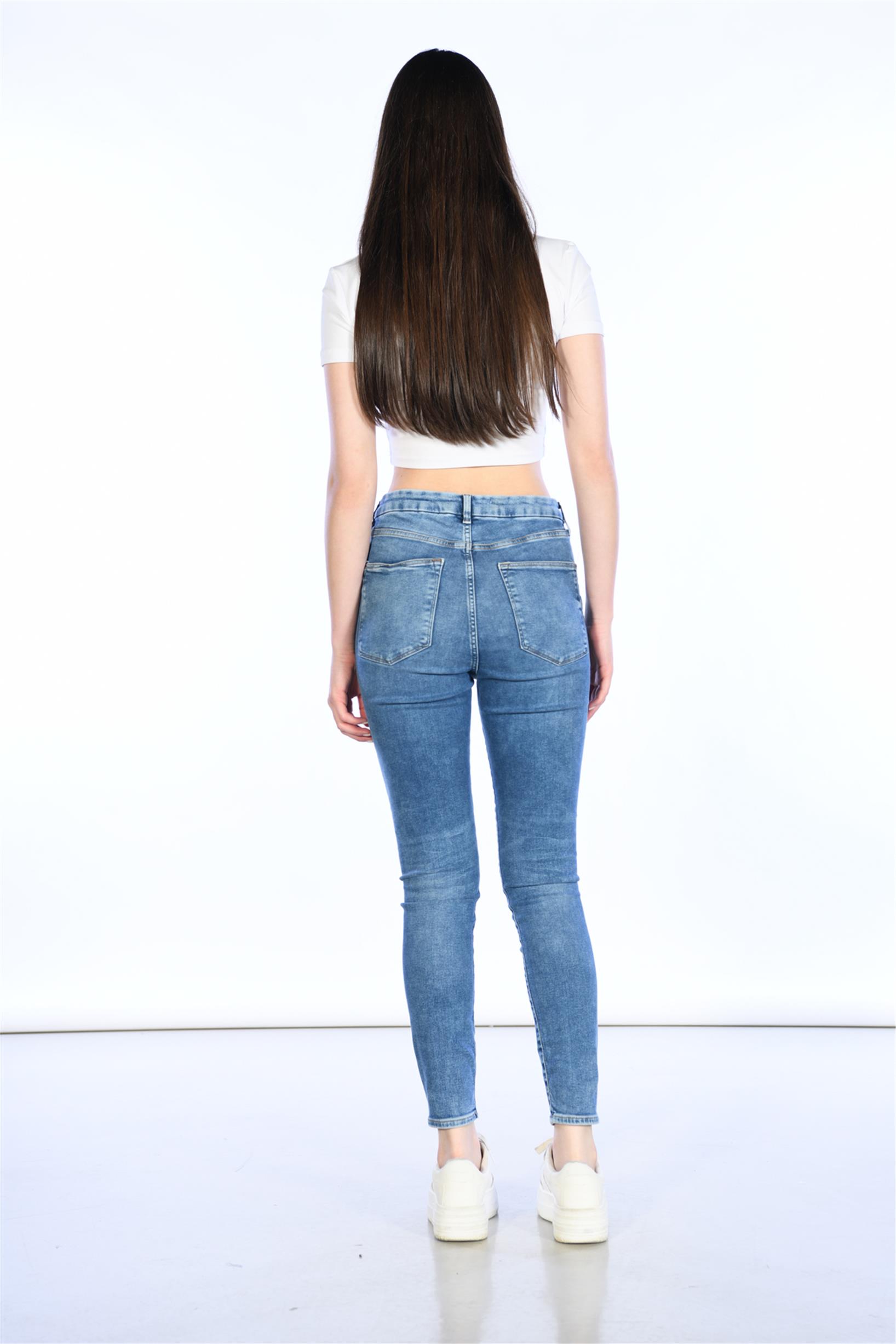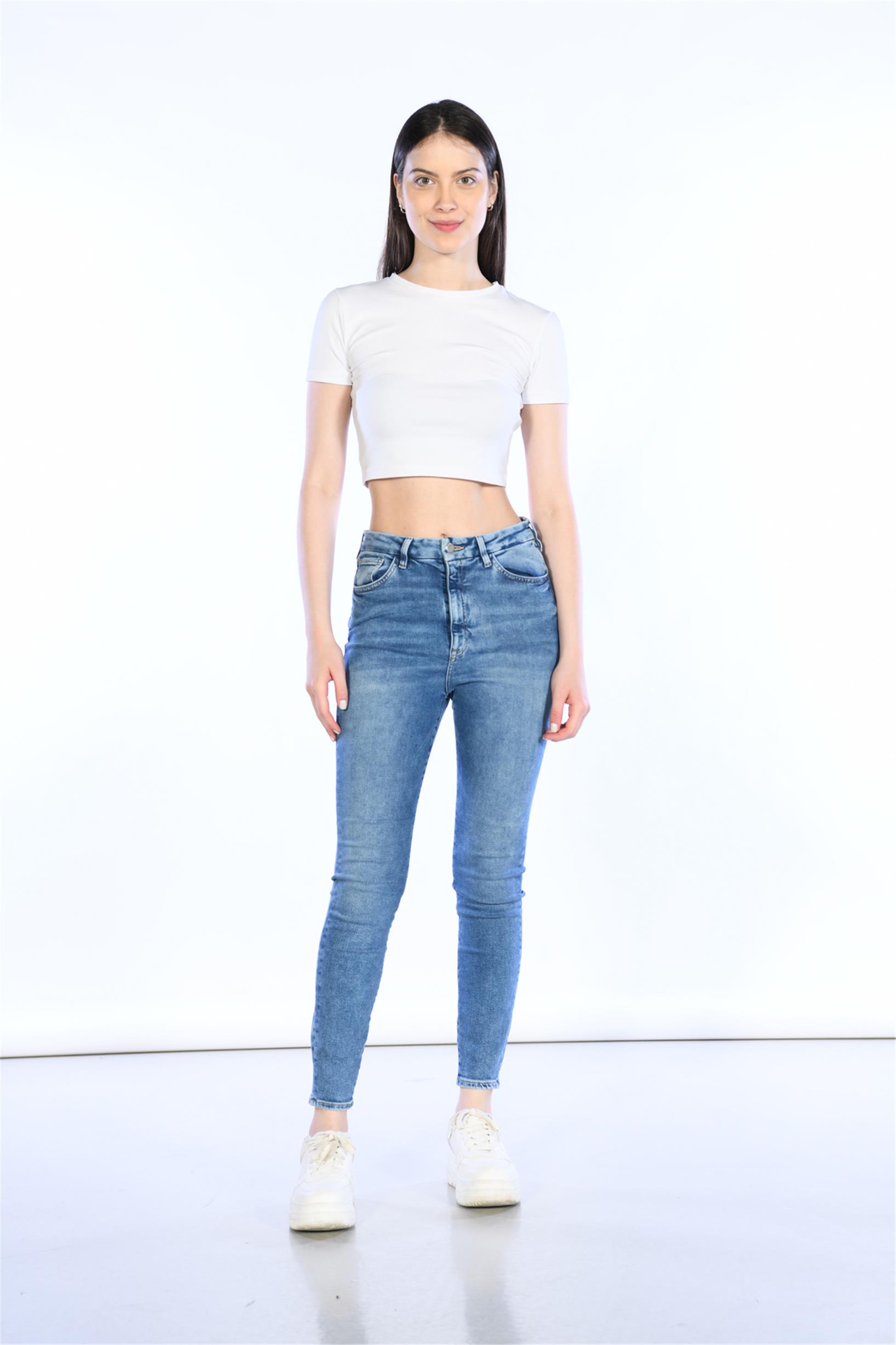 Mavi Yüksek Bel Skinny Jeans
