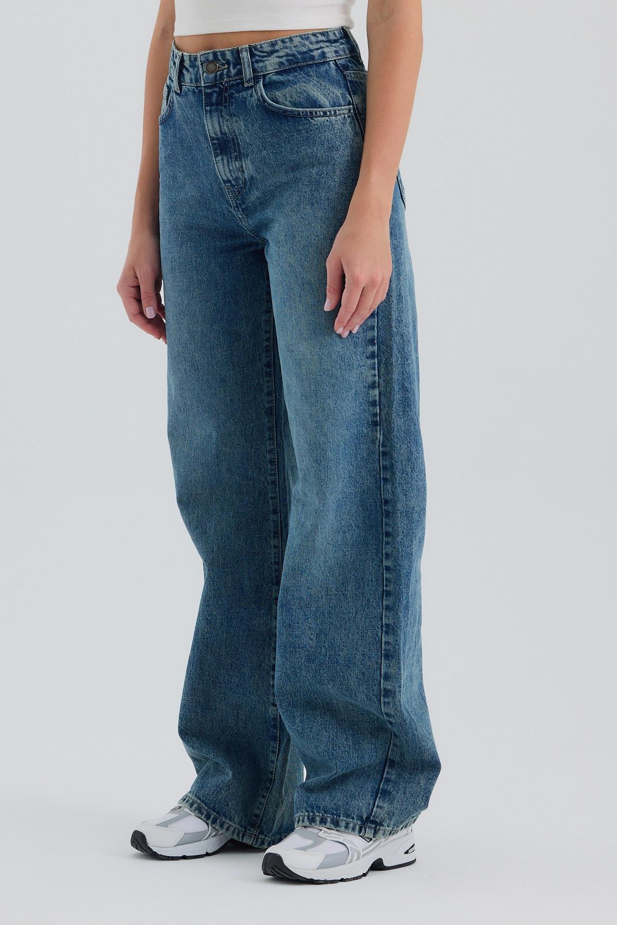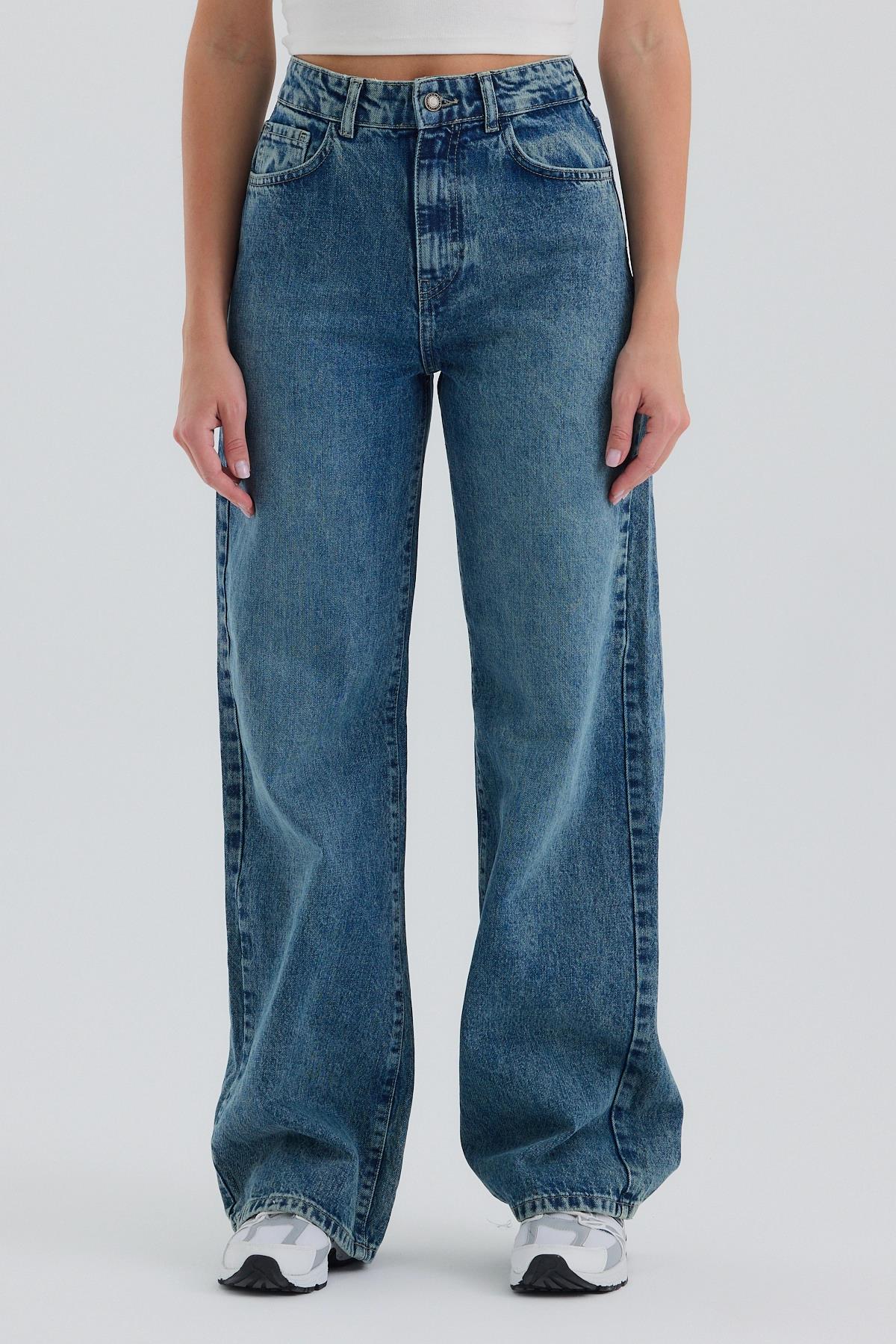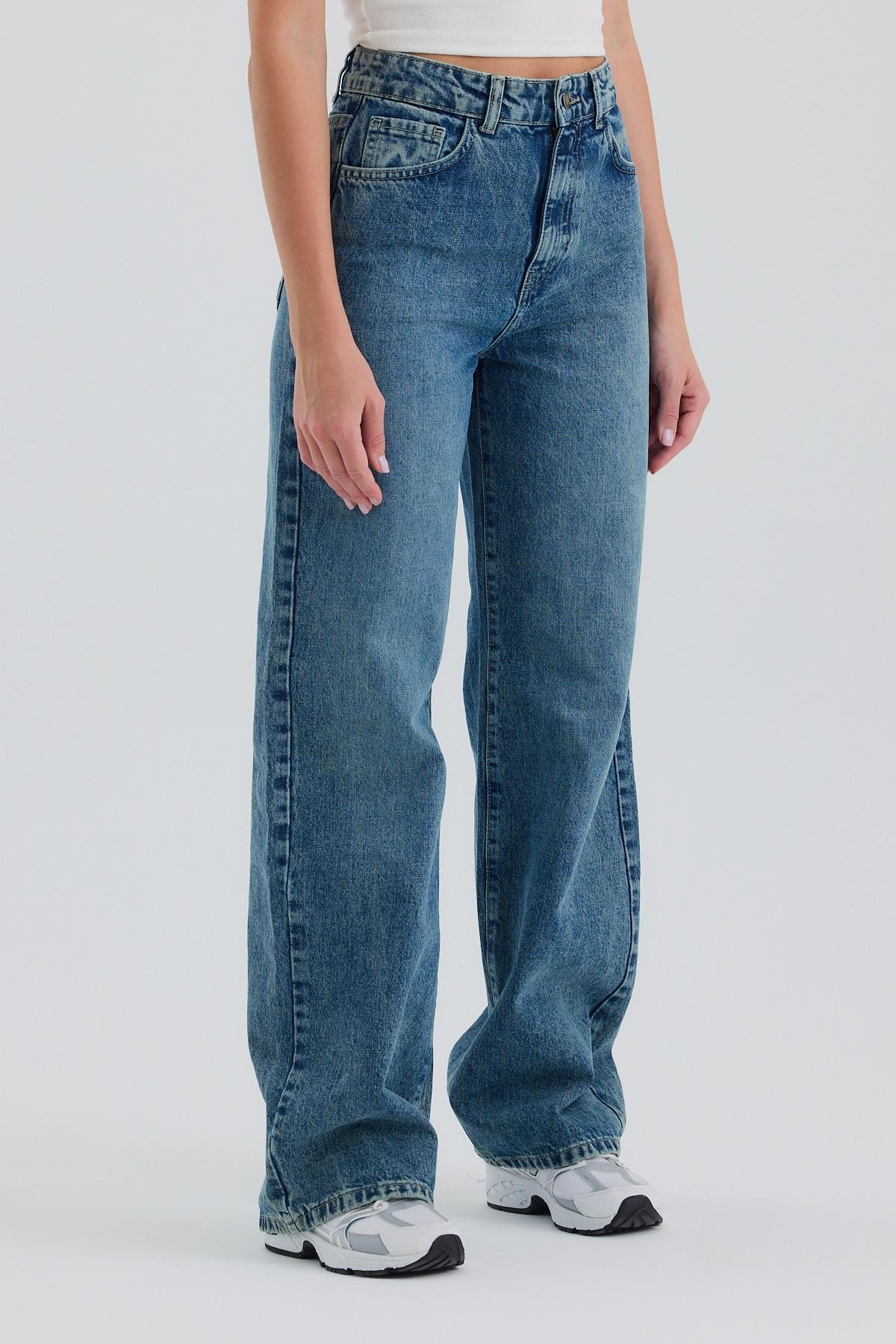 Mavi Yüksek Bel Wide Leg Jean