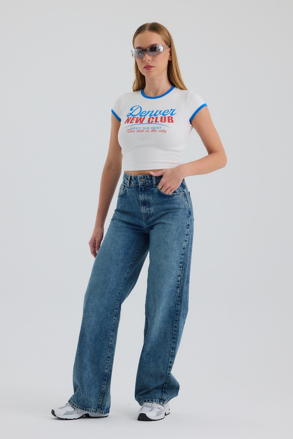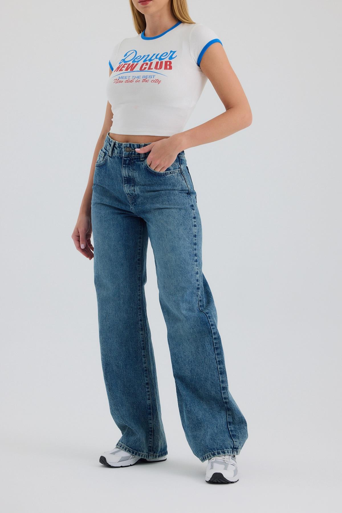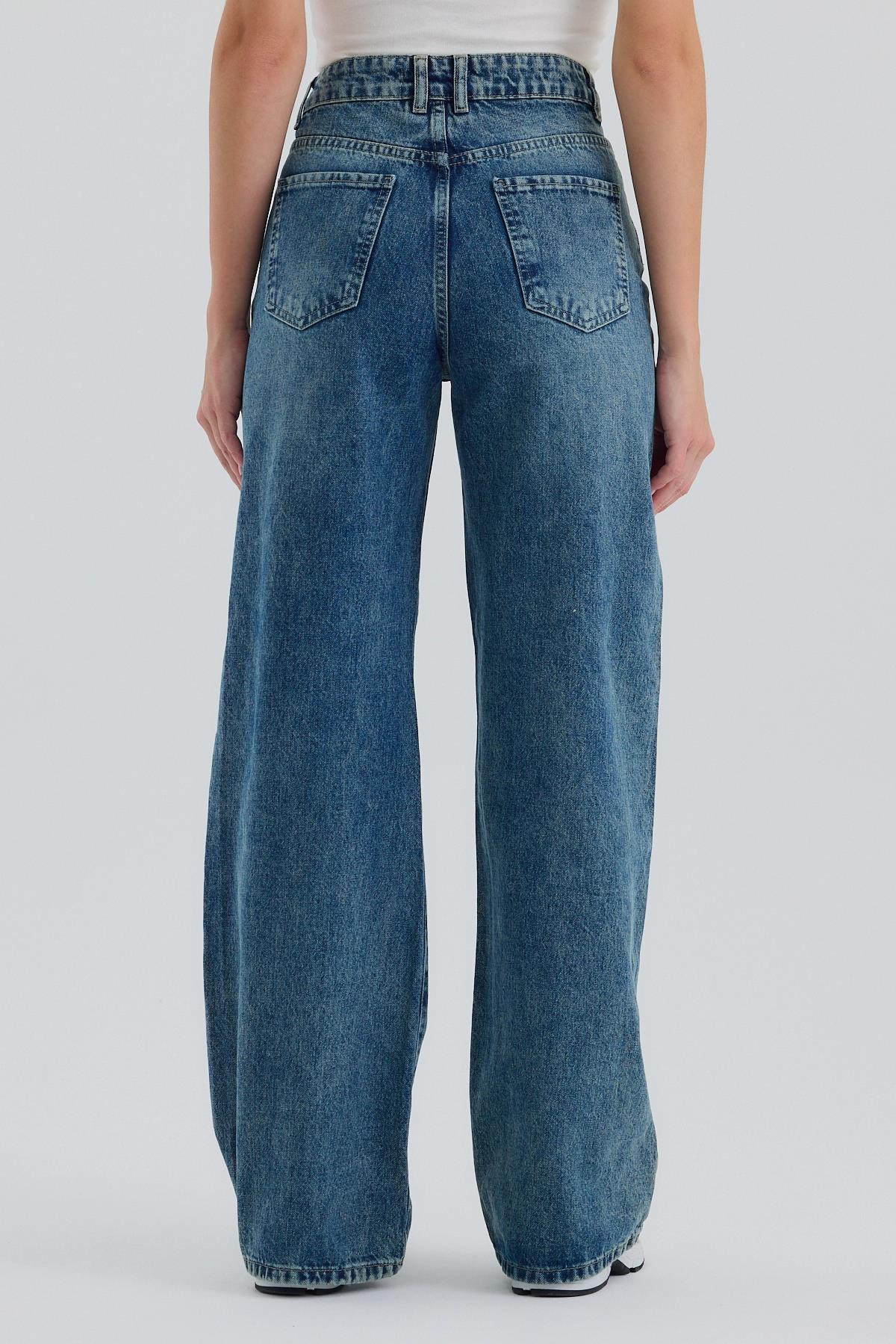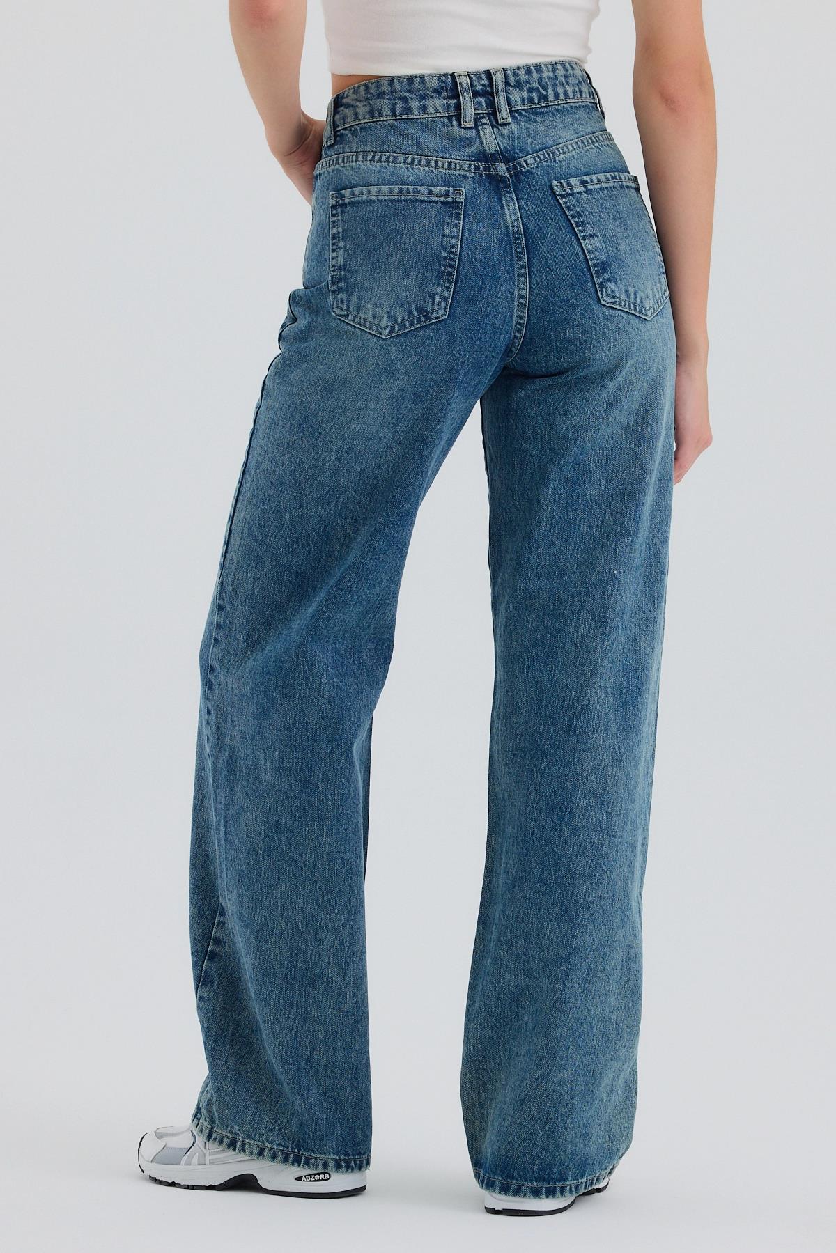 Mavi Yüksek Bel Wide Leg Jean