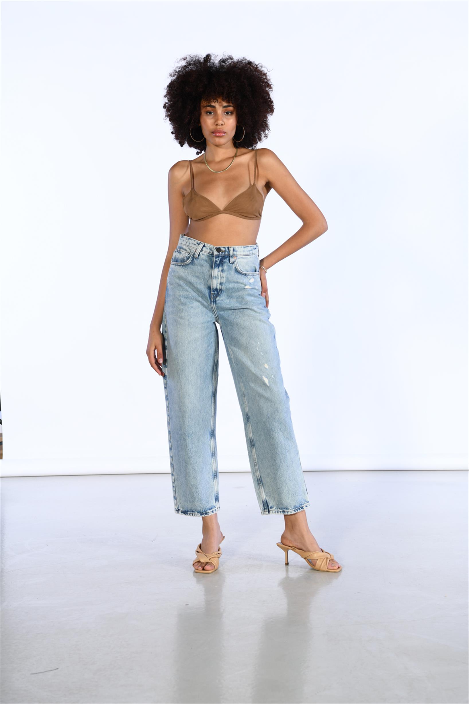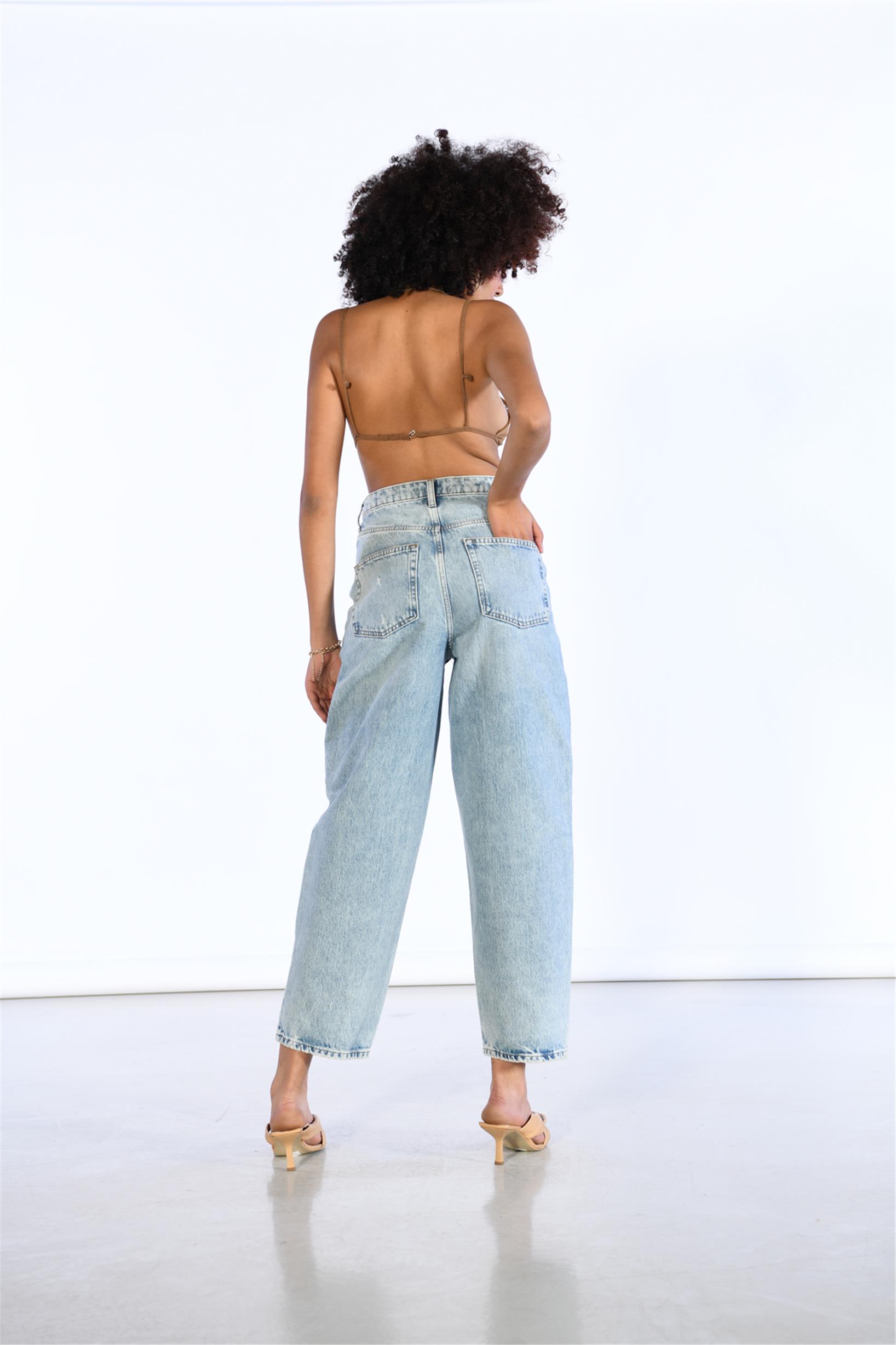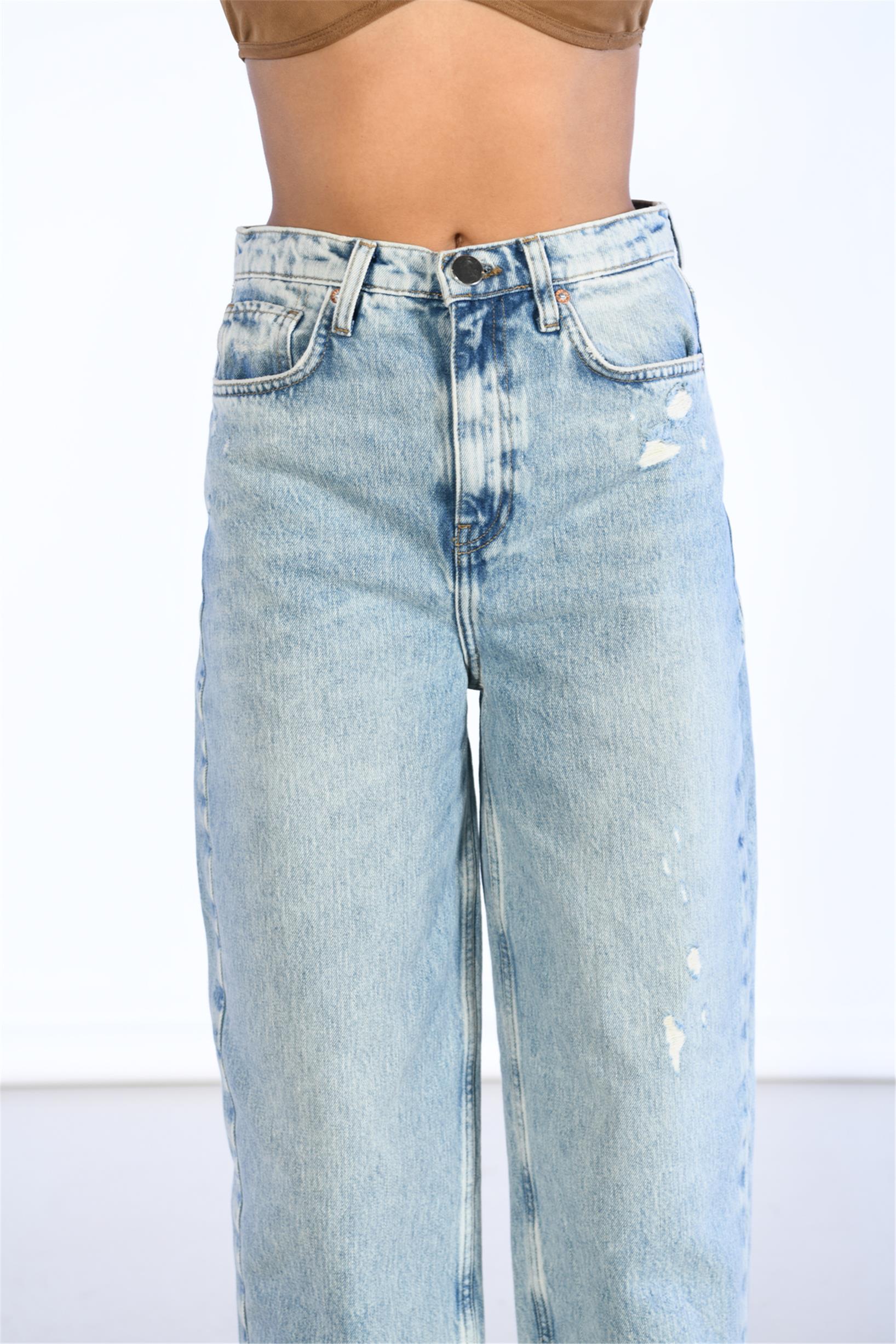 Mavi Yüksek Bel Wide Leg Jeans
