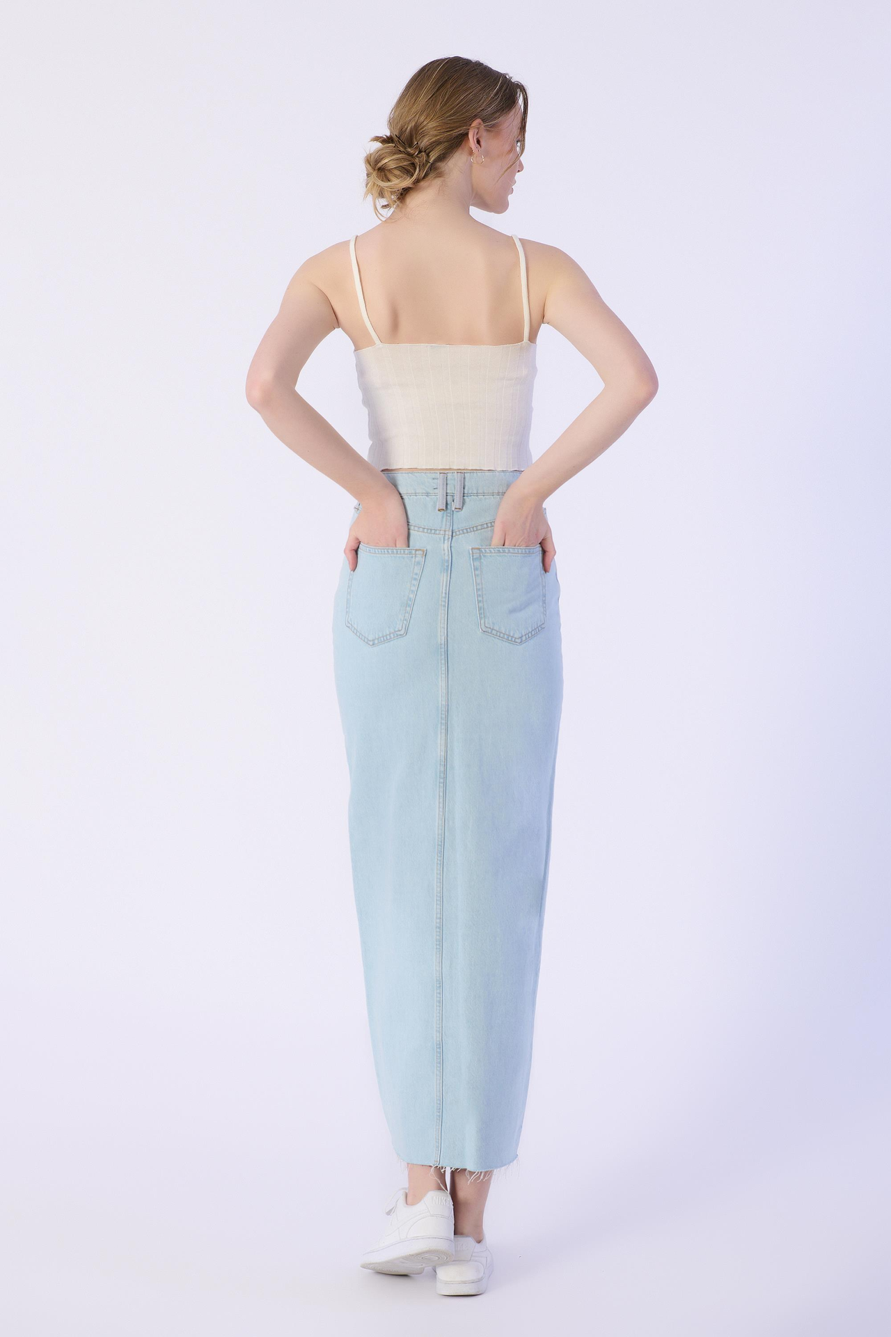 Midi Boy Ön Yırtmaçlı Denim Etek