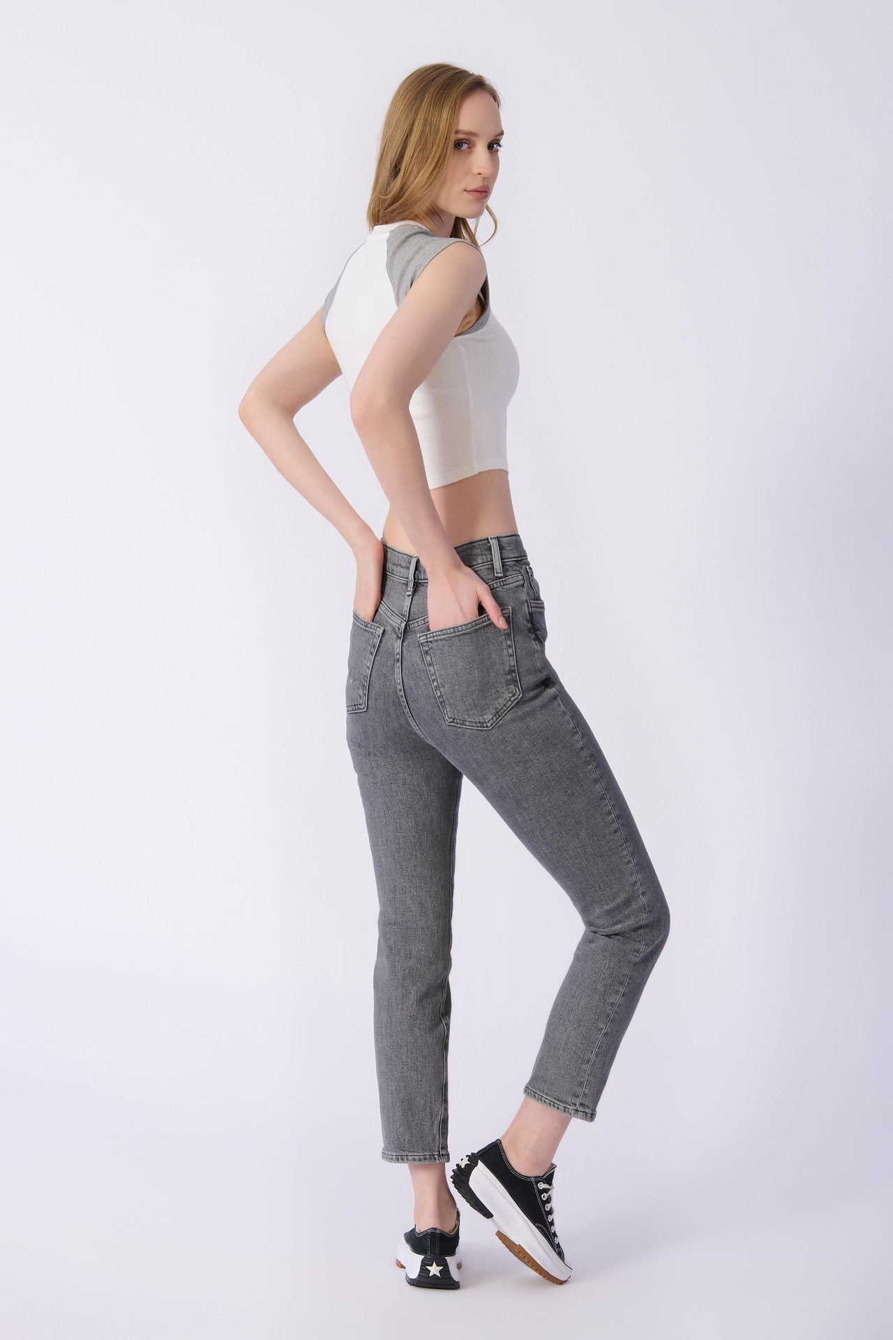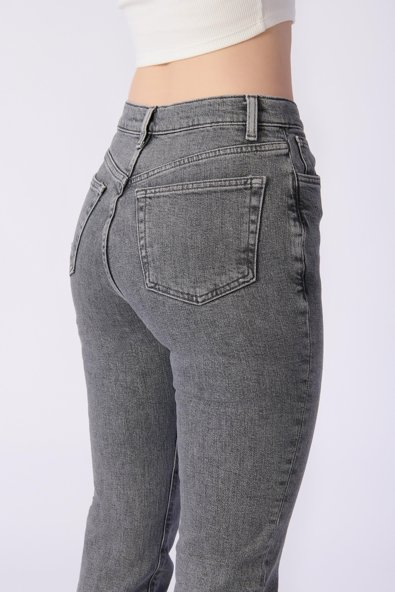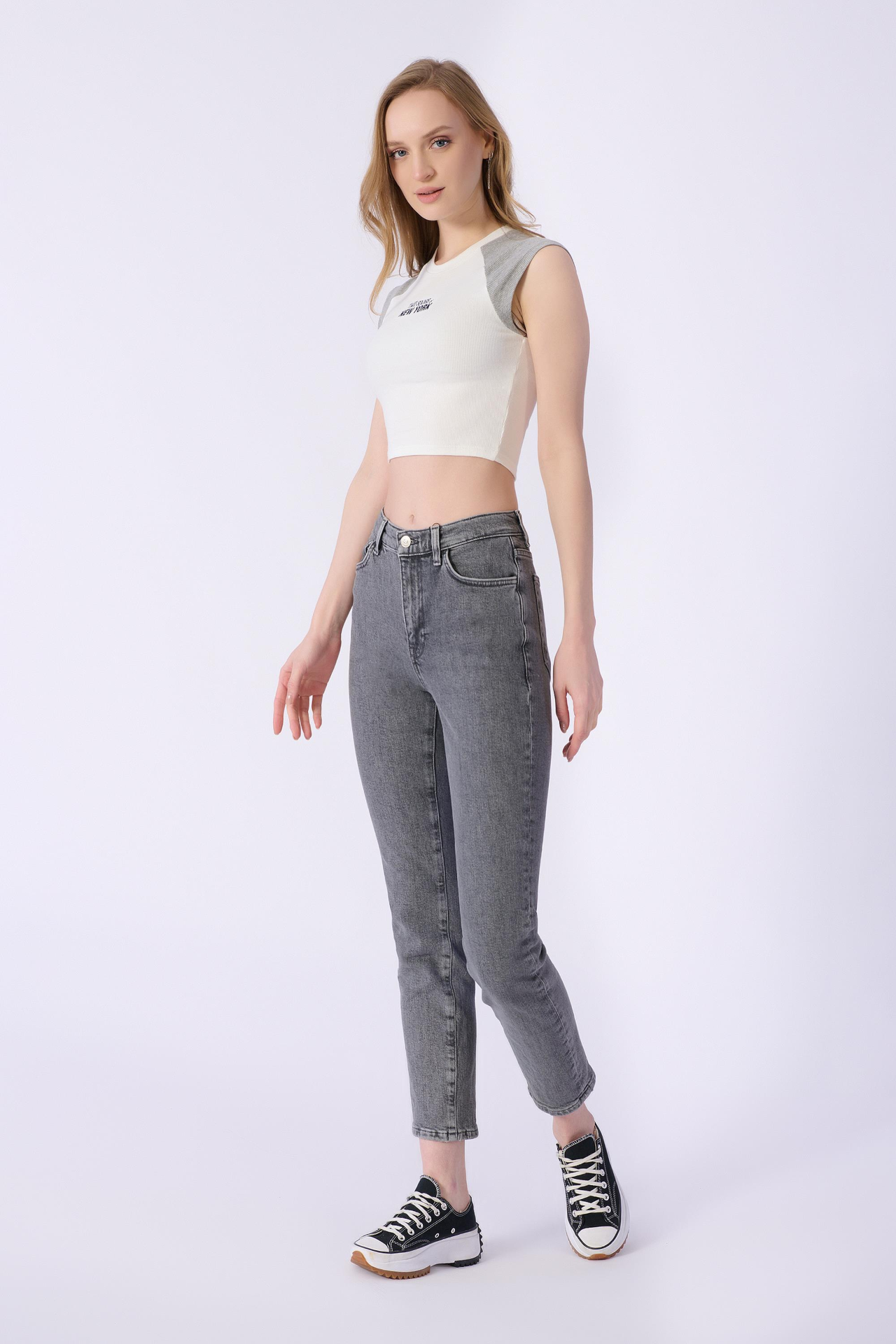 Mom Kalıp Düz Denim Pantolon