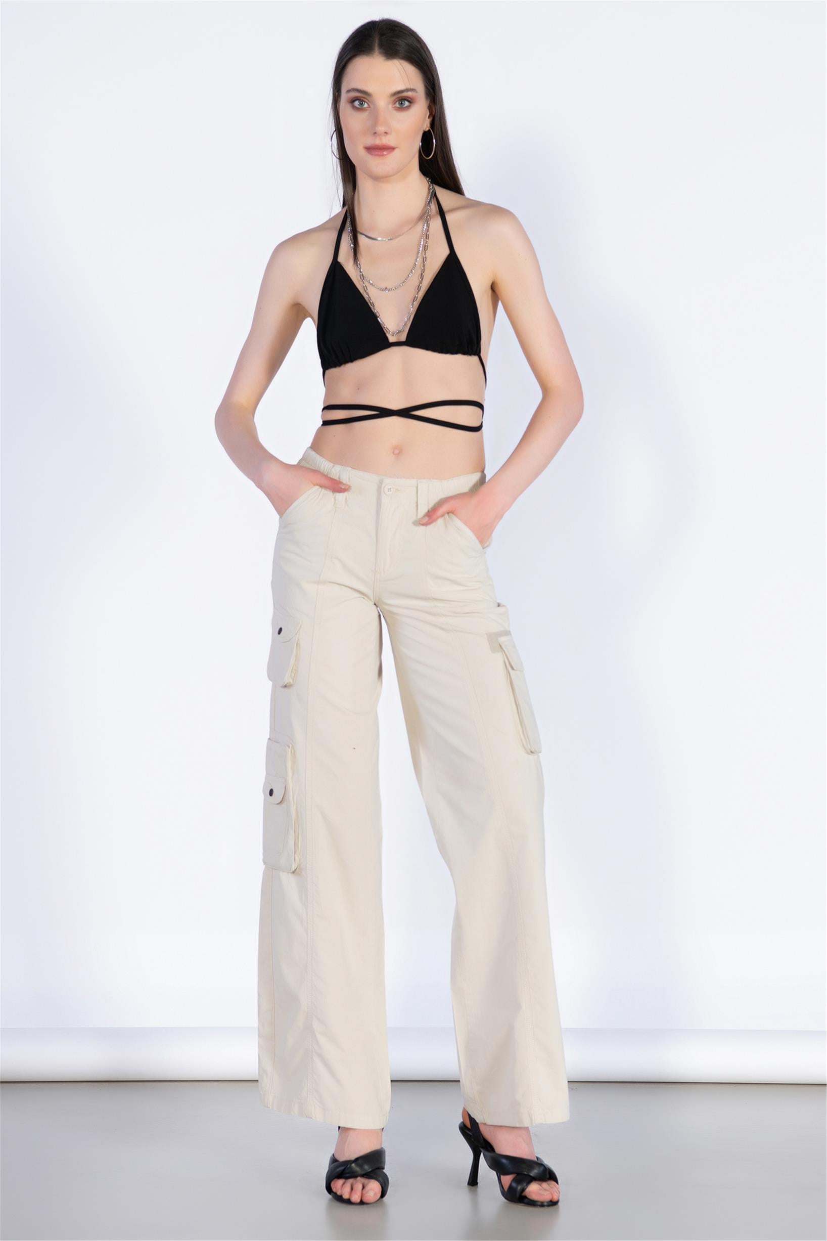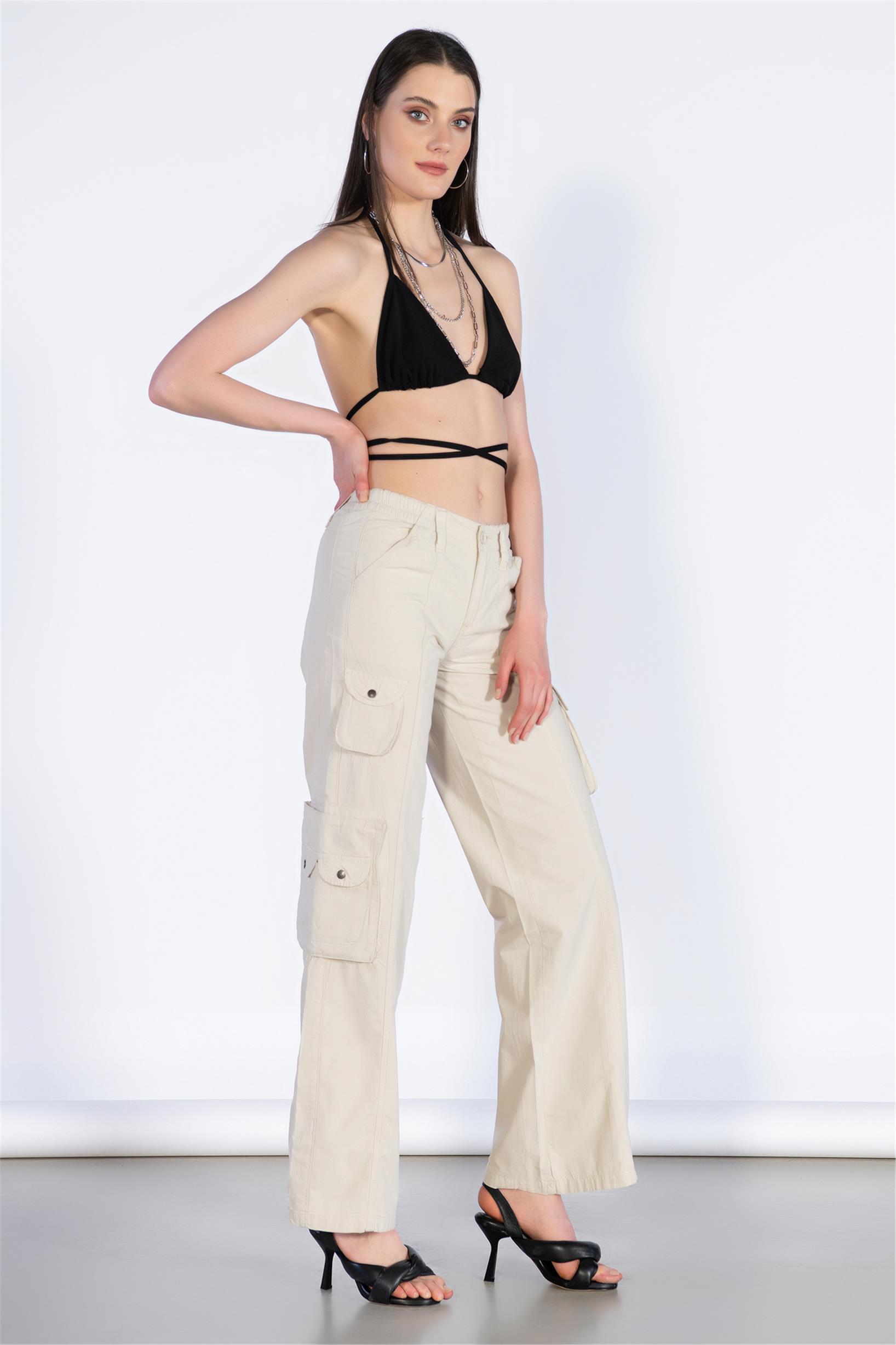 Normal Bel Wide Leg Kargo Pantolon
