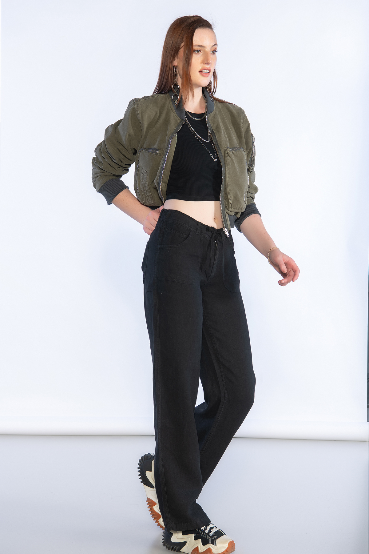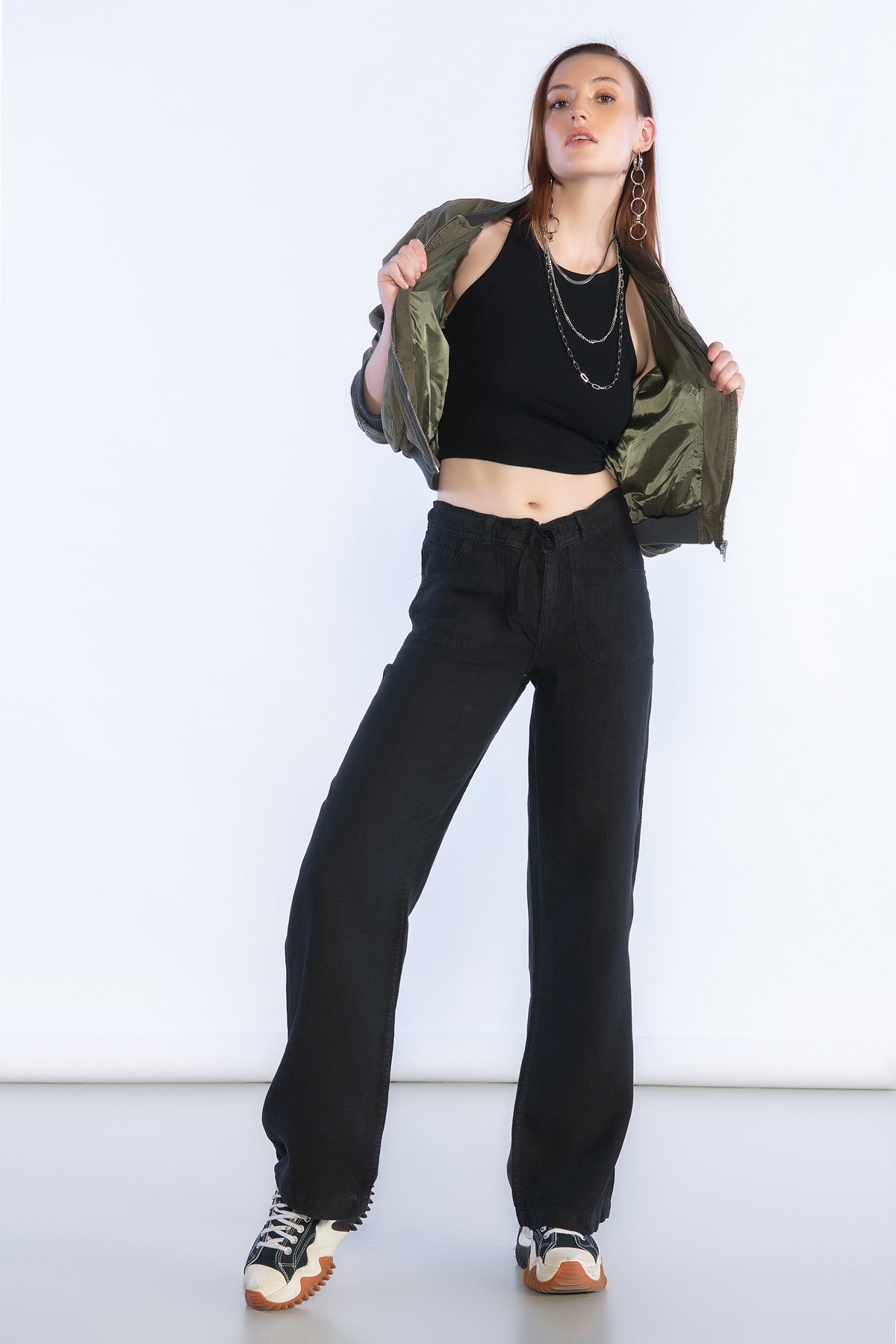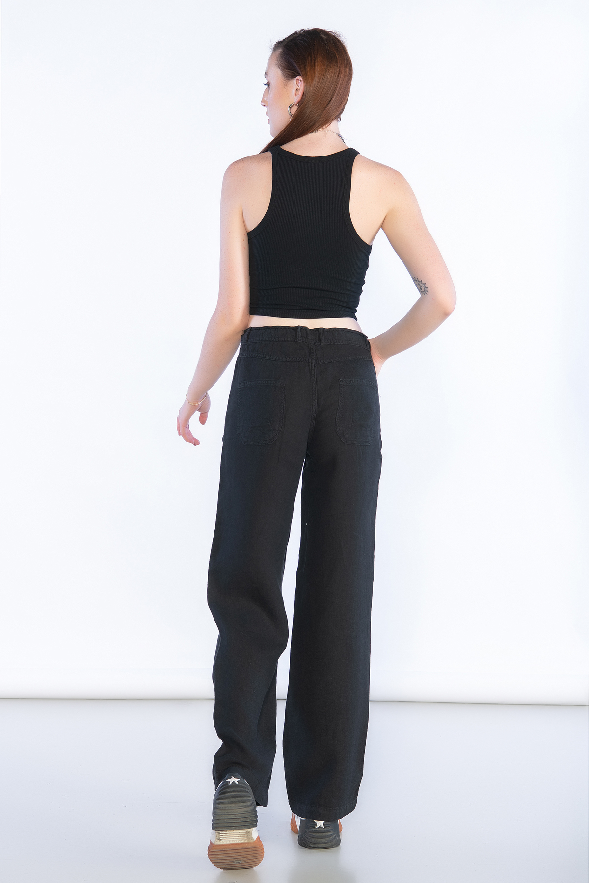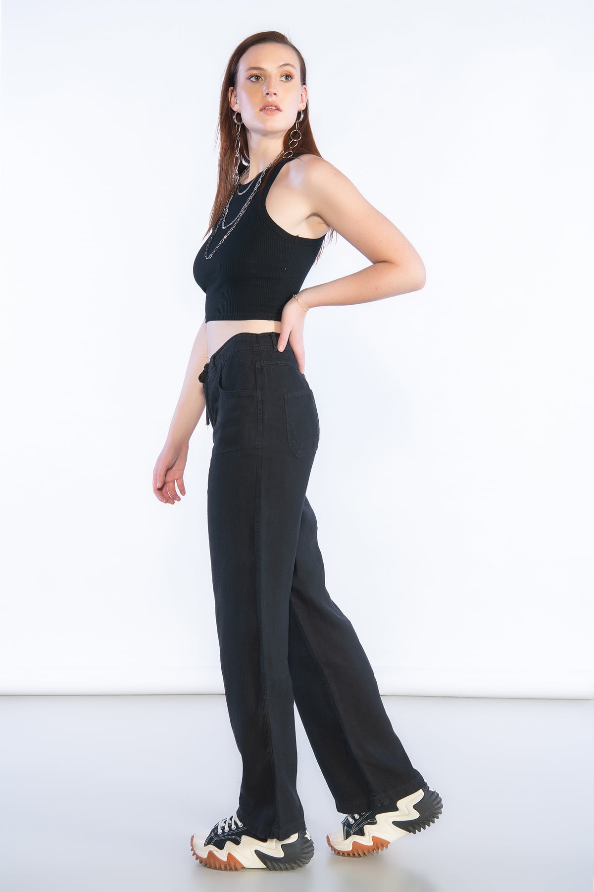 Normal Bel Wide Leg Keten Pantolon