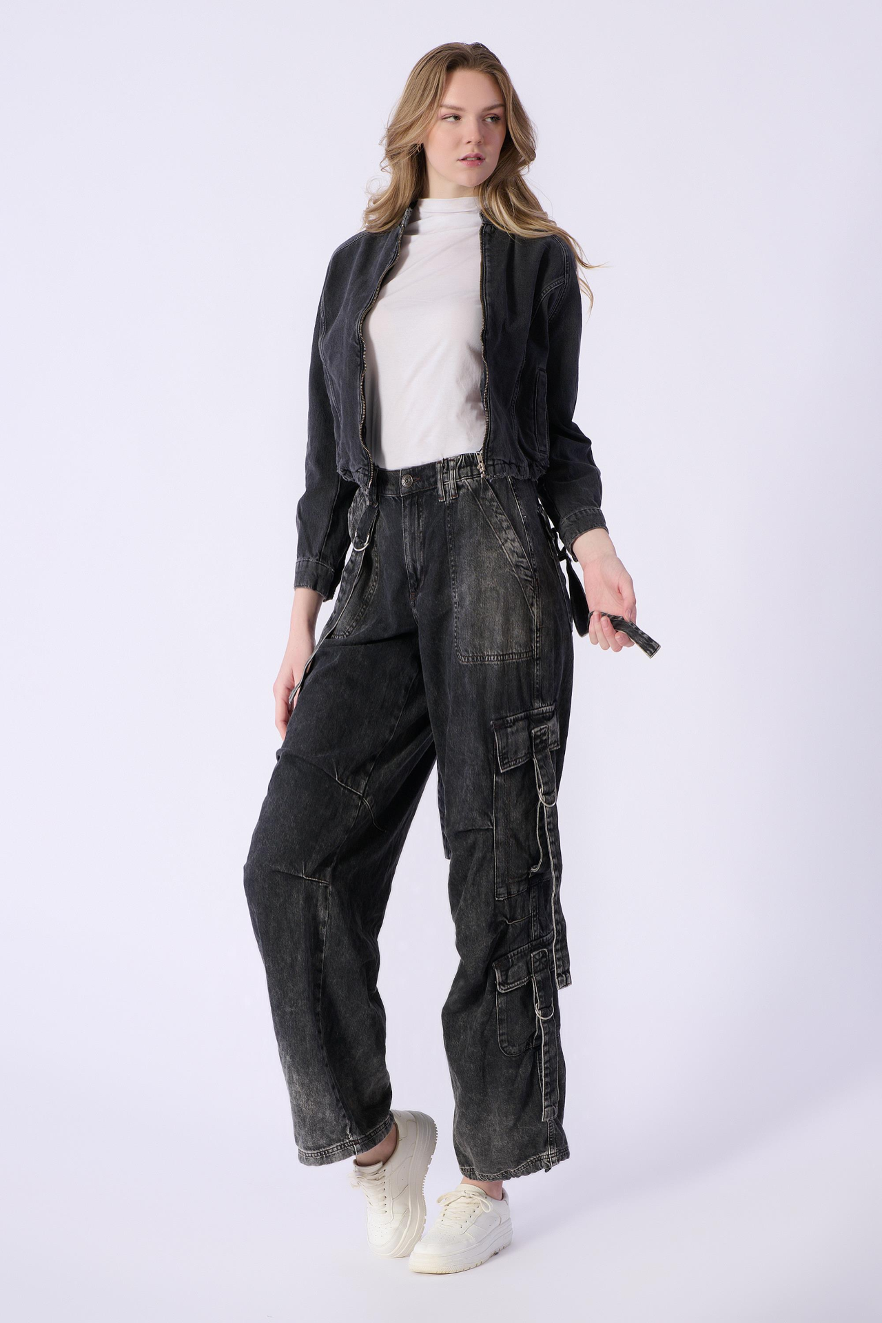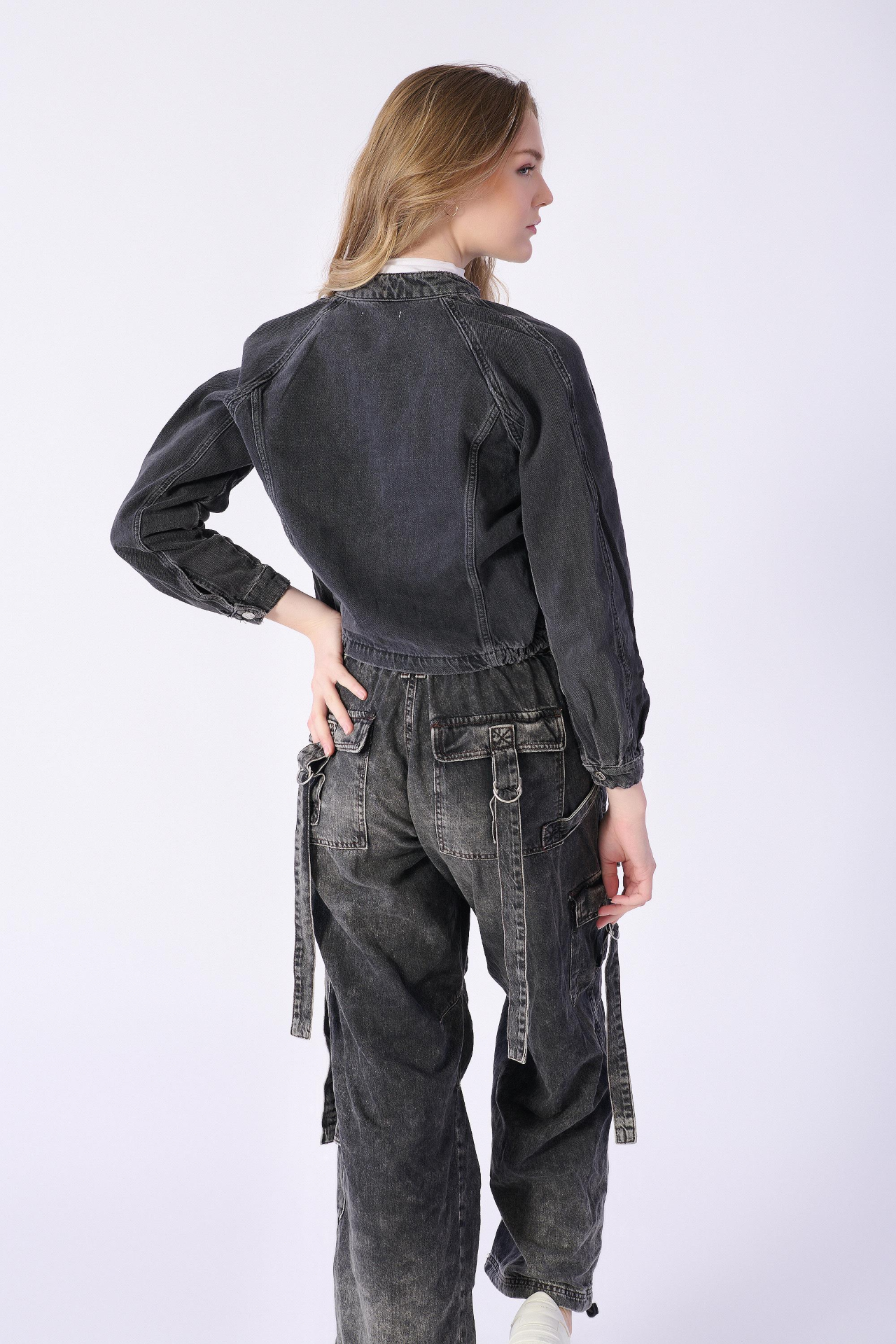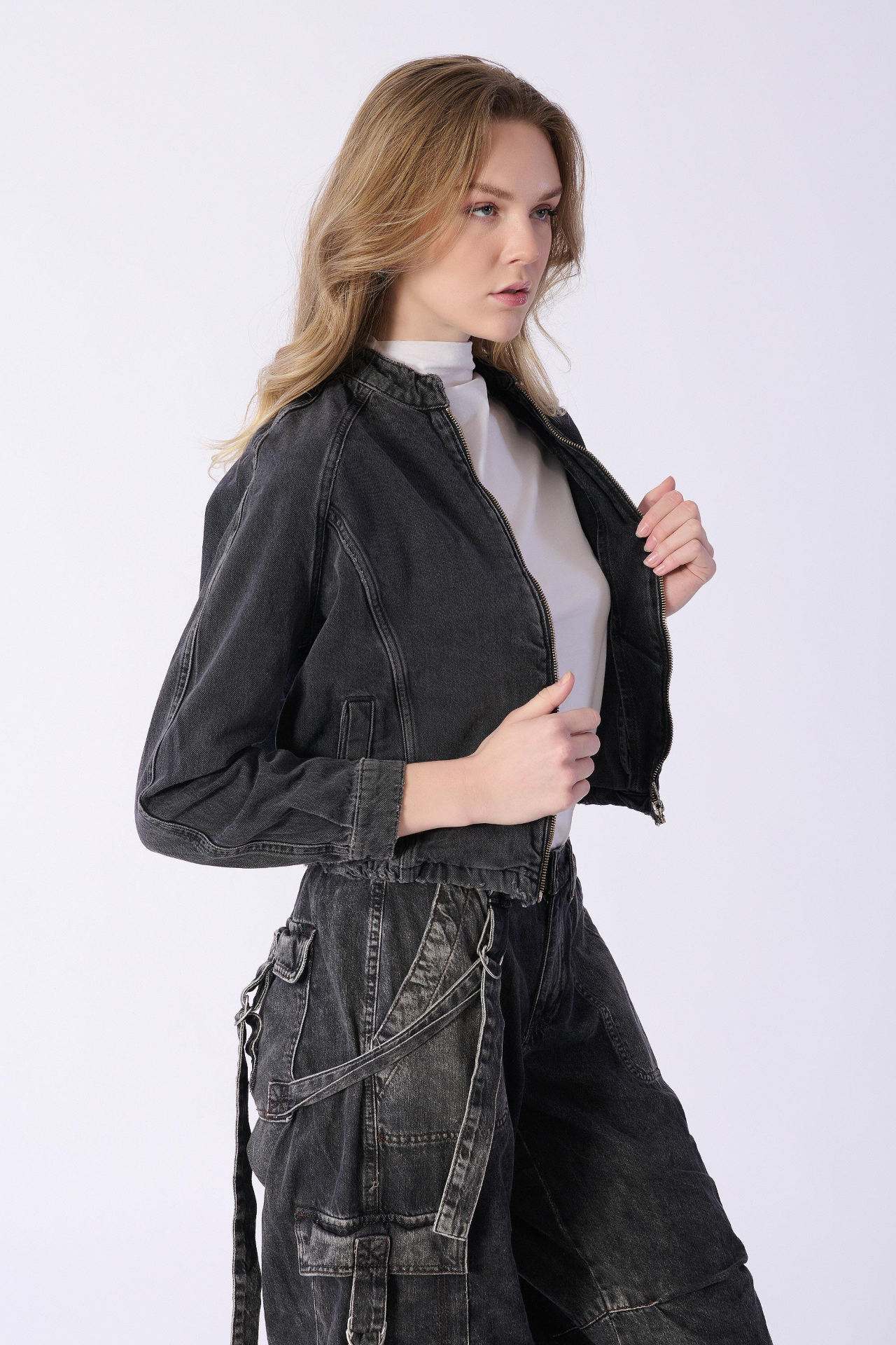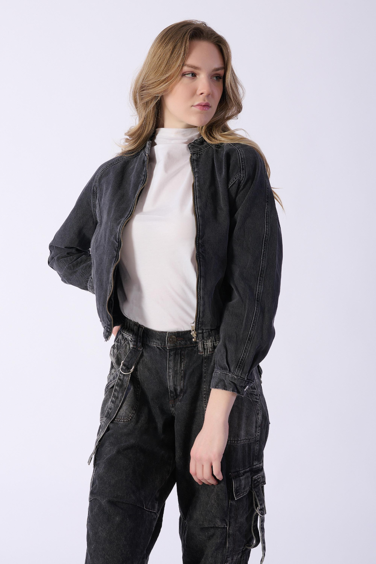 Önden Fermuarlı Hakim Yaka Denim Ceket