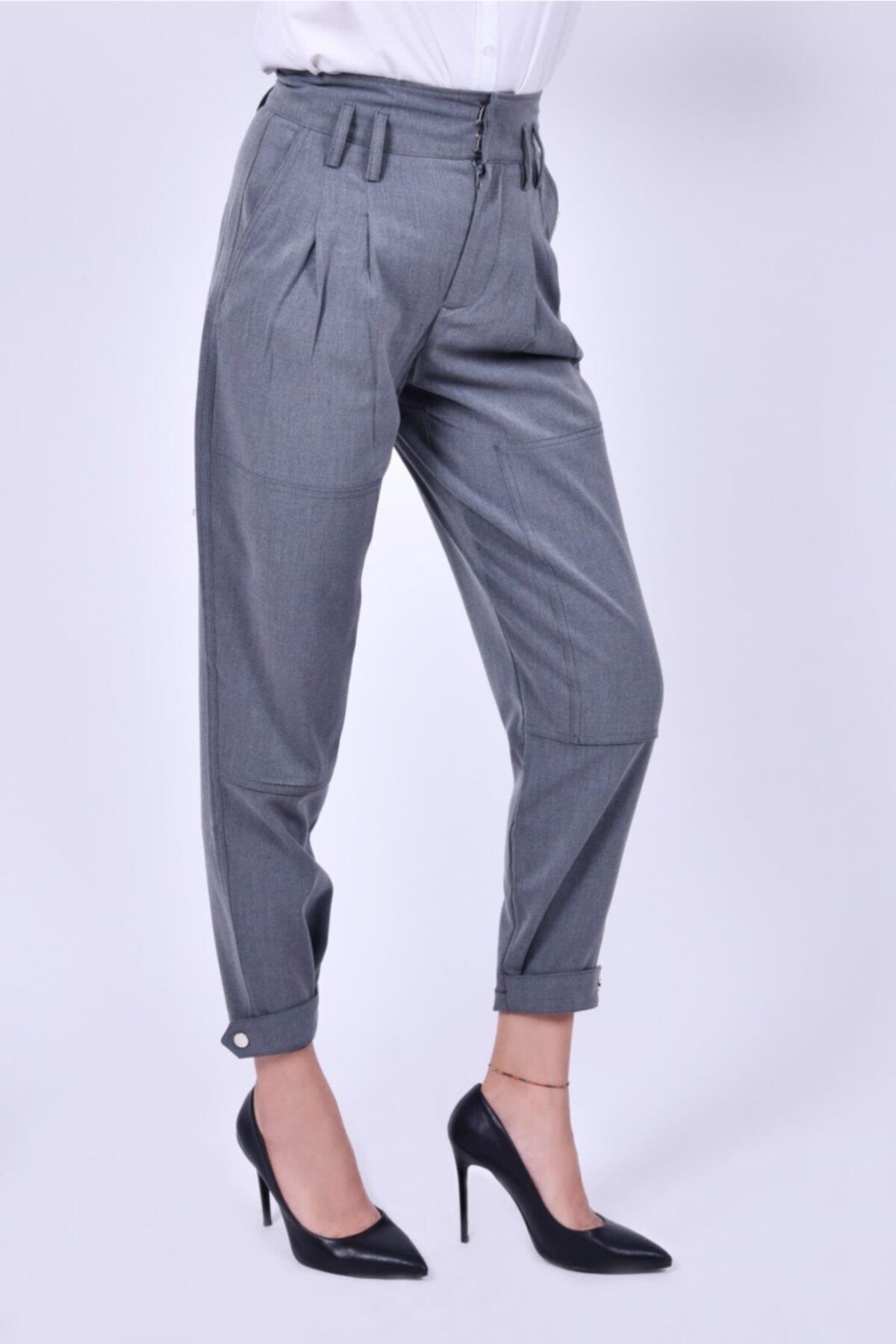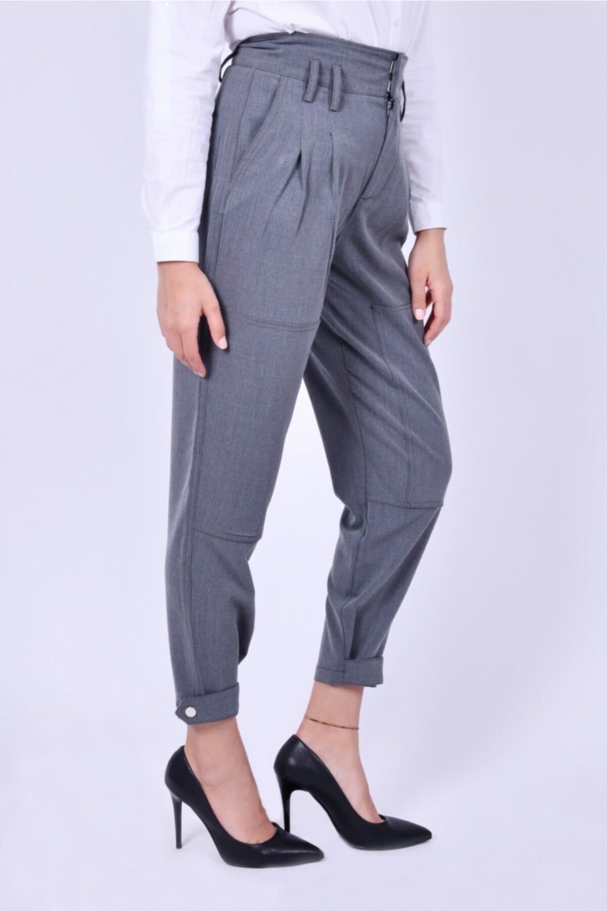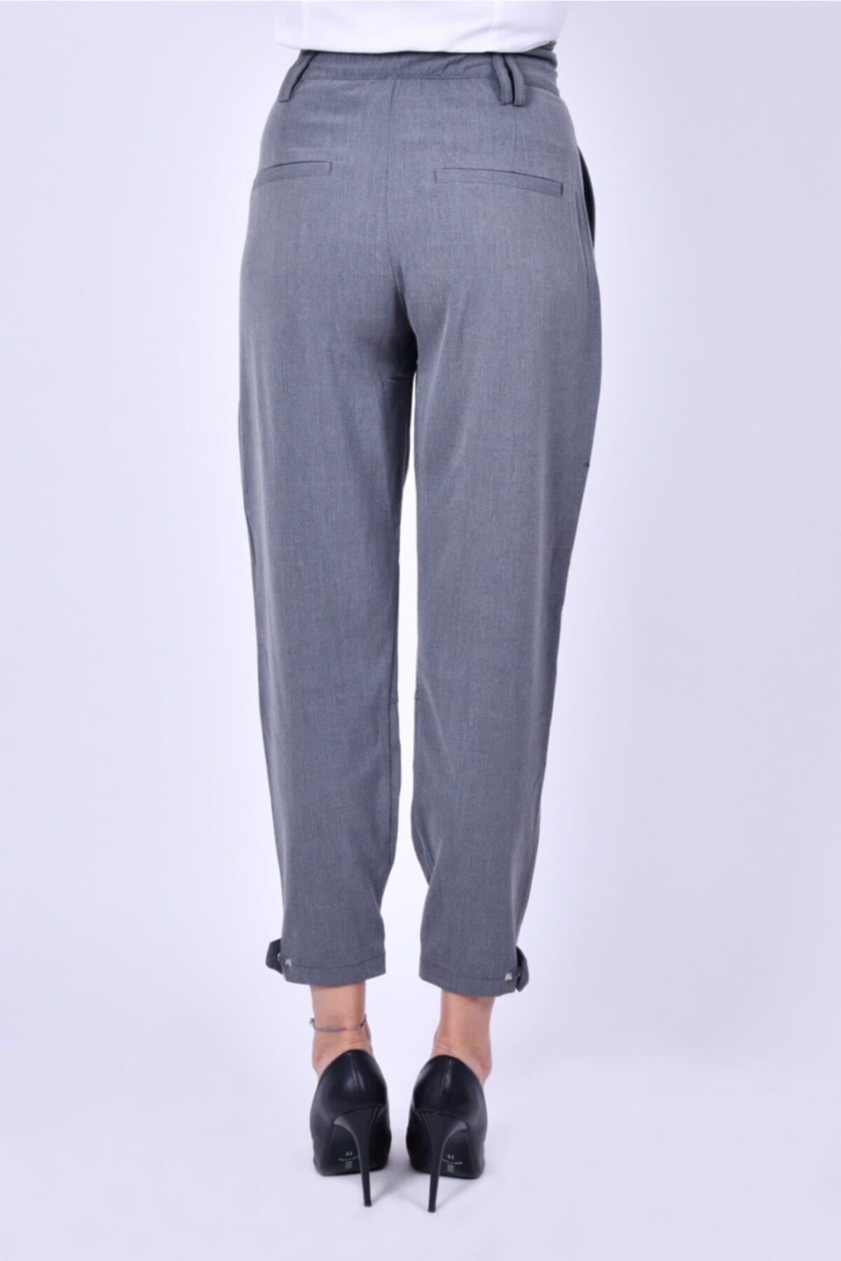 PAÇA ÇITÇIT KEMERLİ BEL LASTİKLİ KOYU GRİ PANTOLON