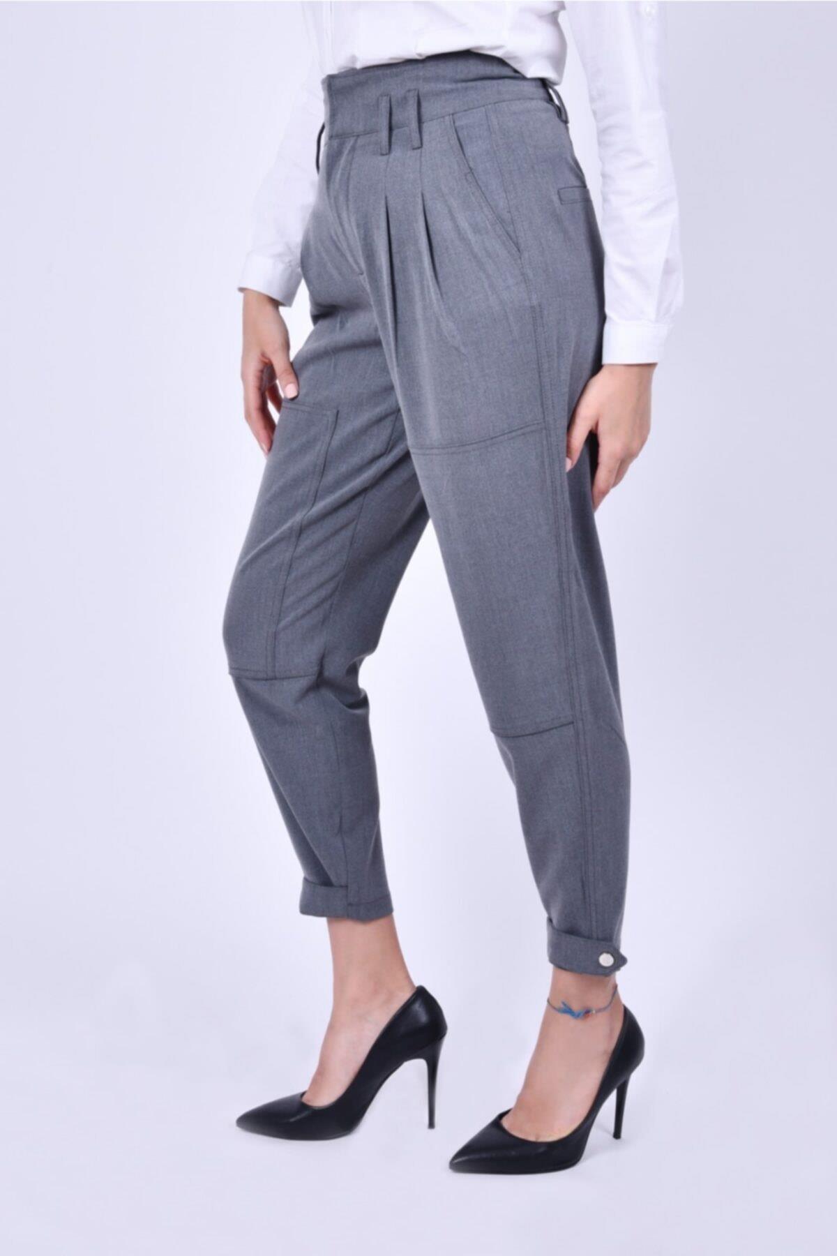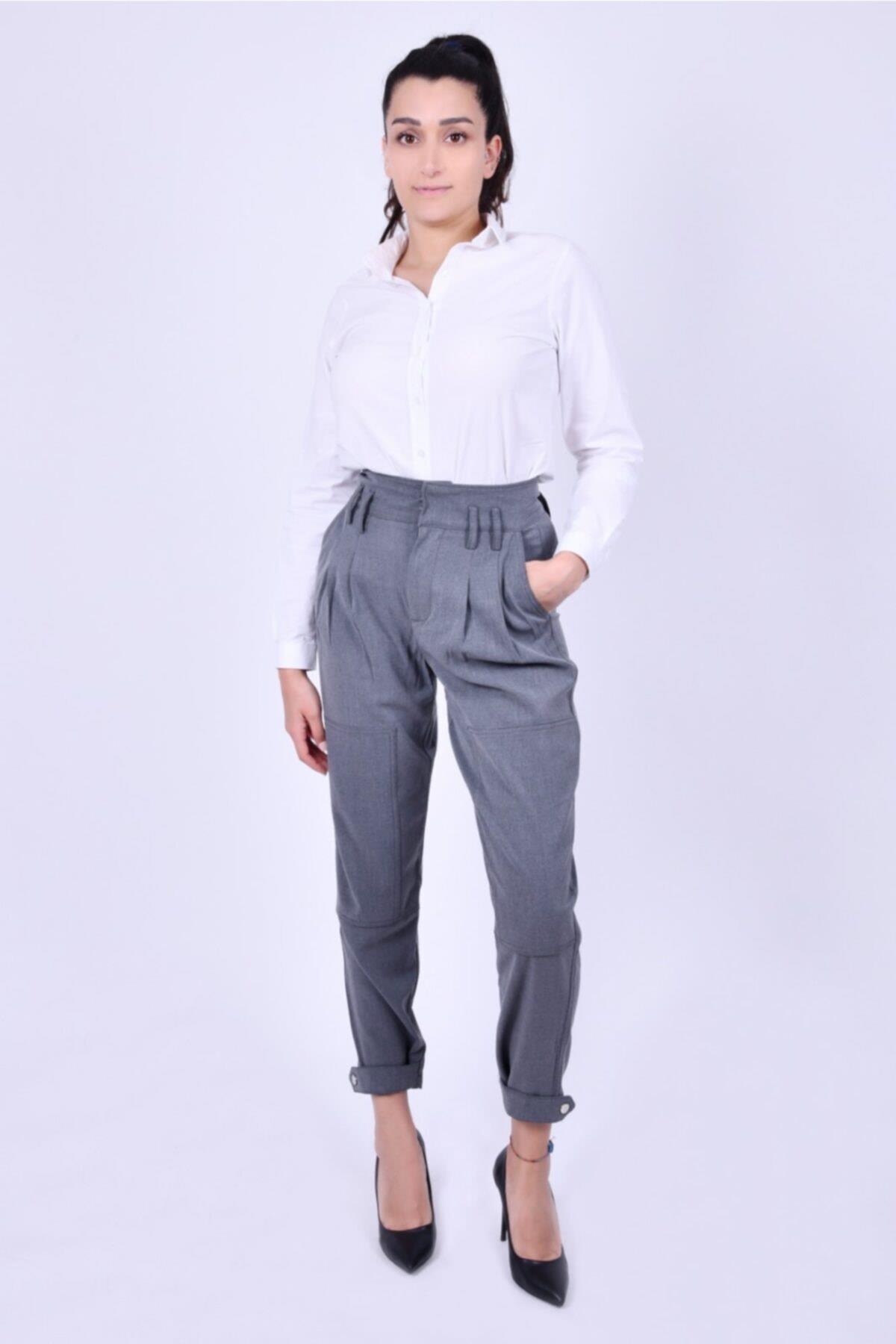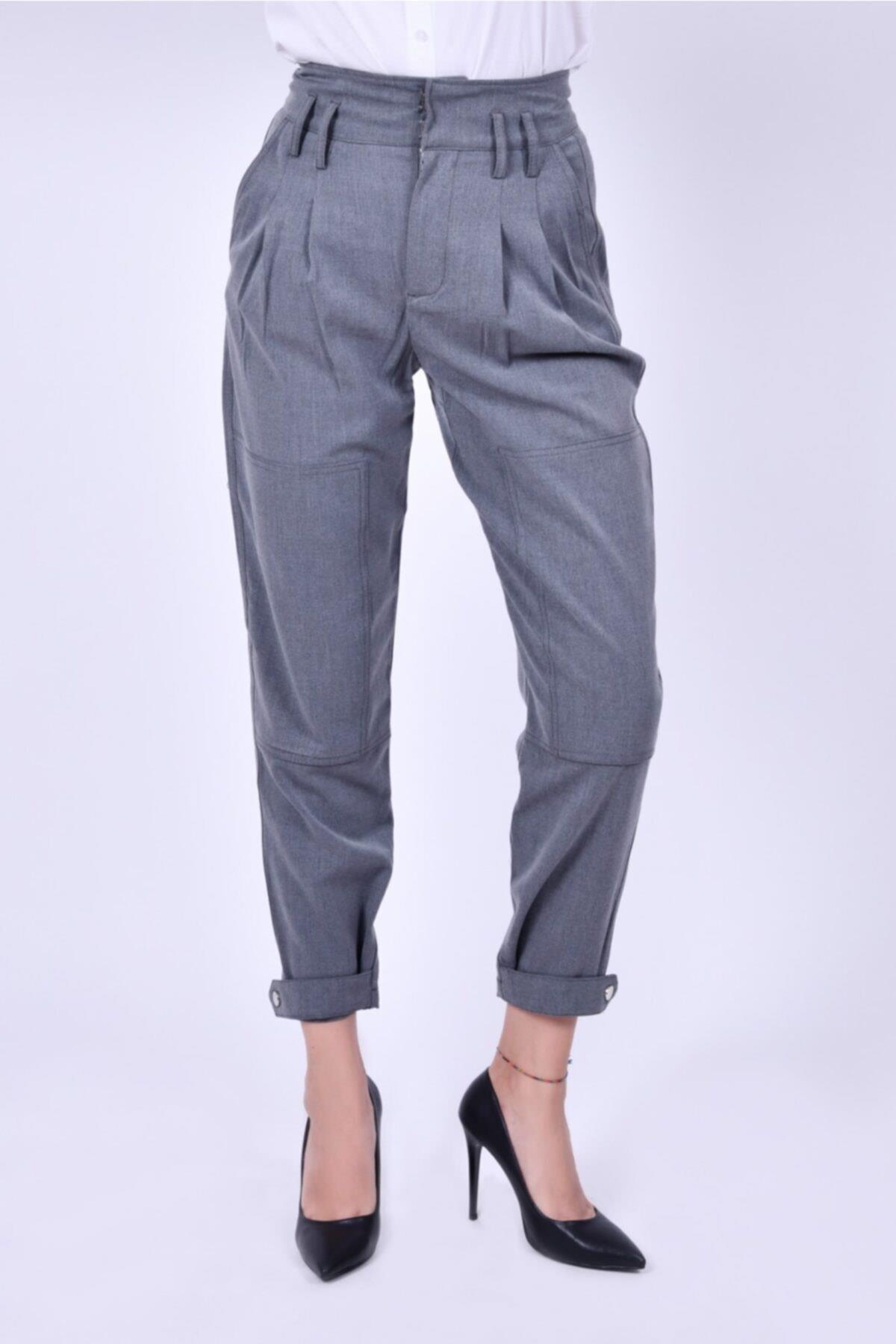 PAÇA ÇITÇIT KEMERLİ BEL LASTİKLİ KOYU GRİ PANTOLON