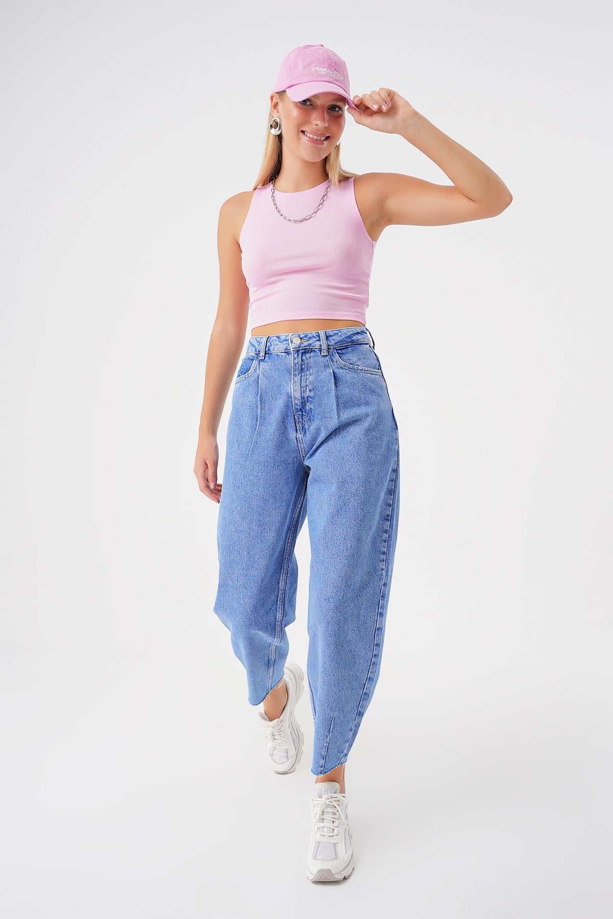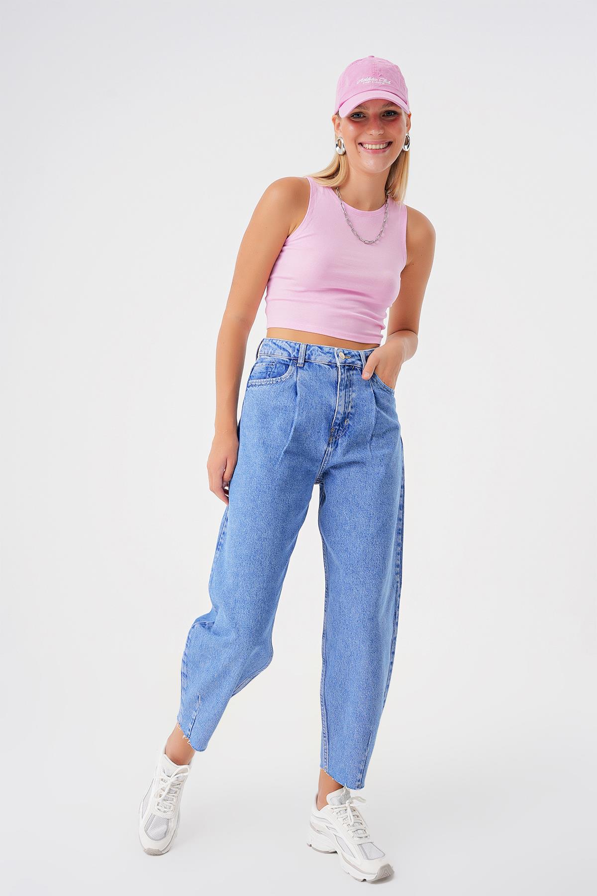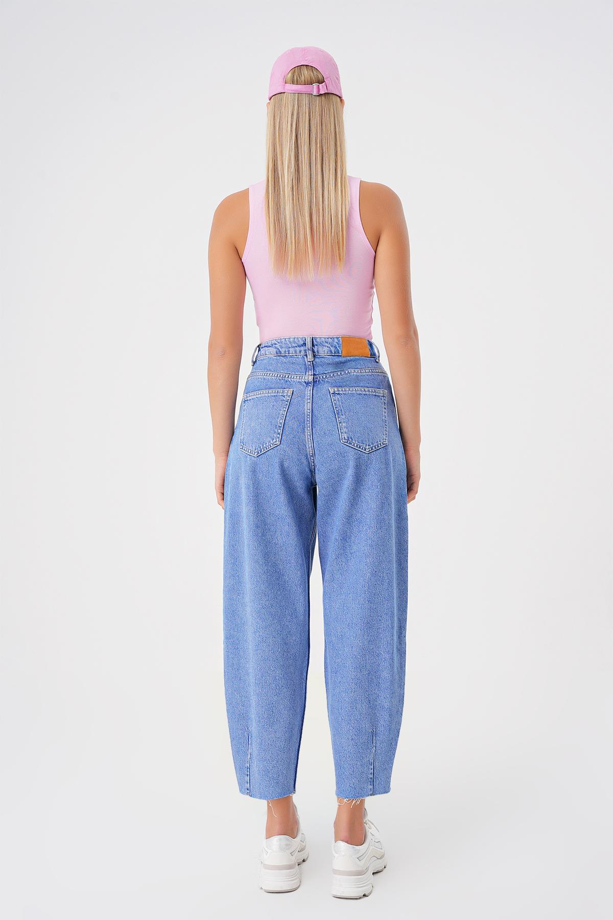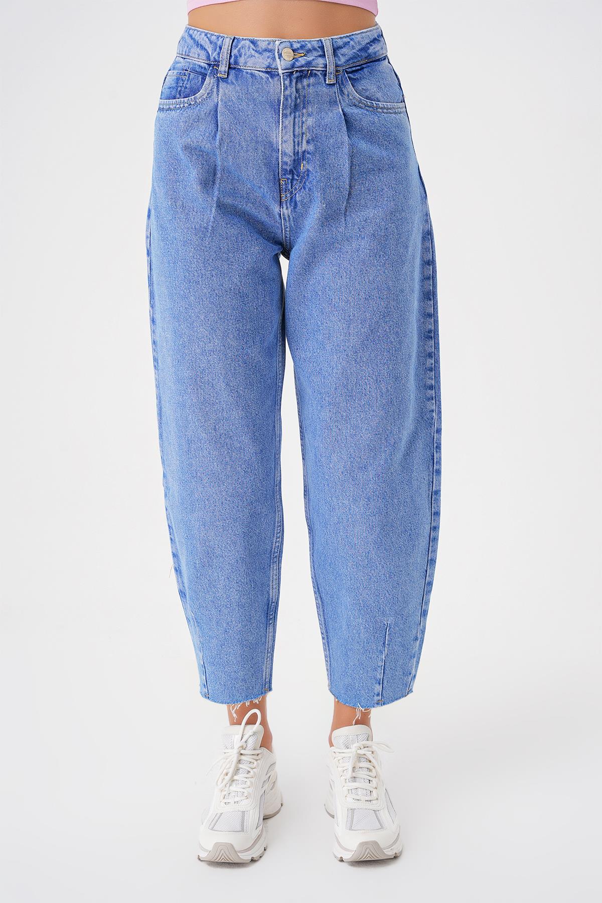 Pileli Yuksek Bel Balloon Skater Jean
