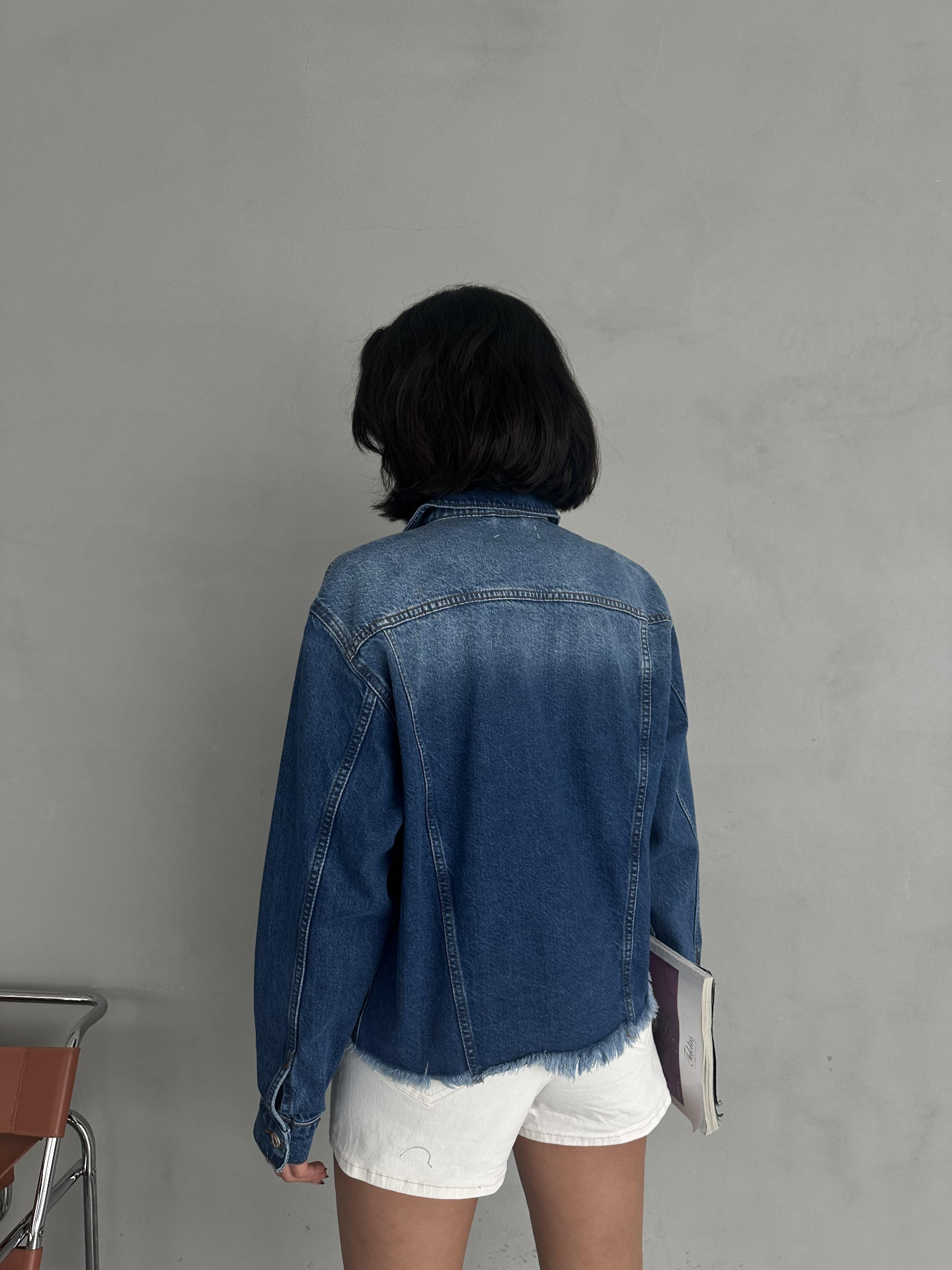 Püsgüllü Cep Detaylı Kadın Jean Ceket