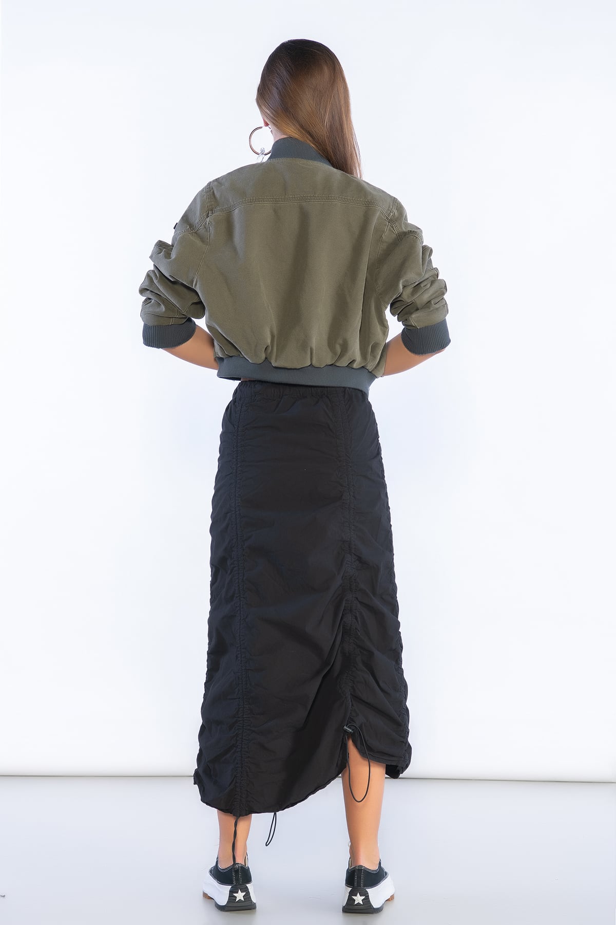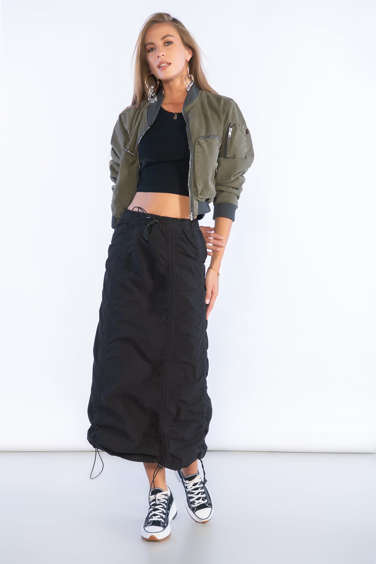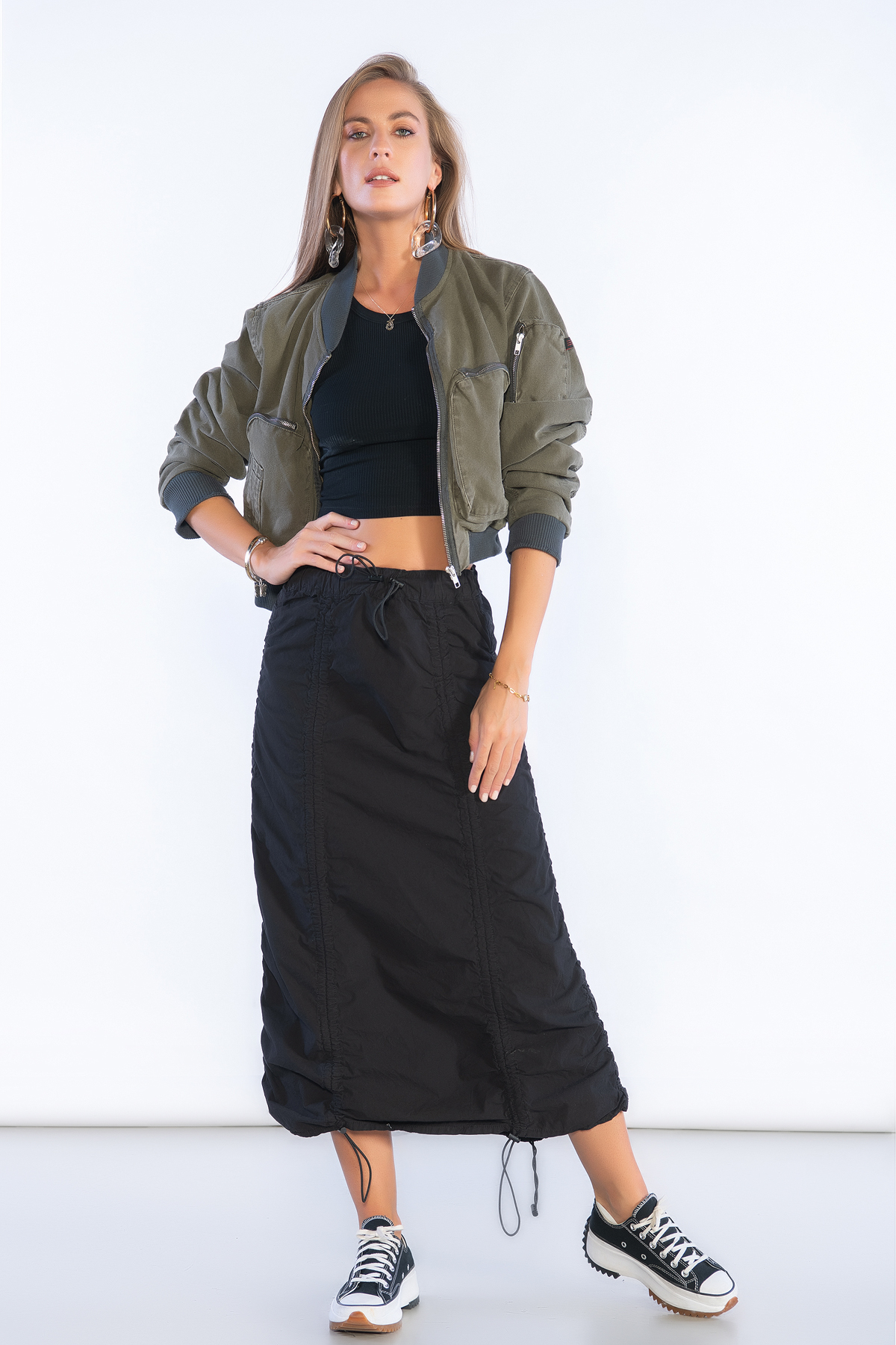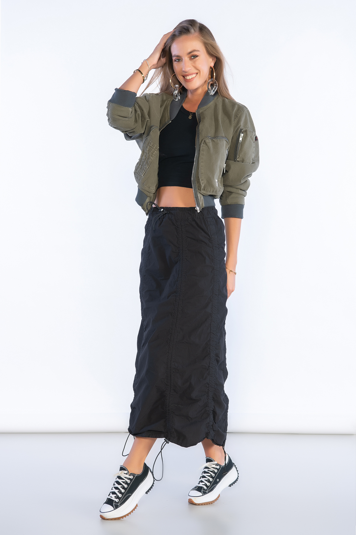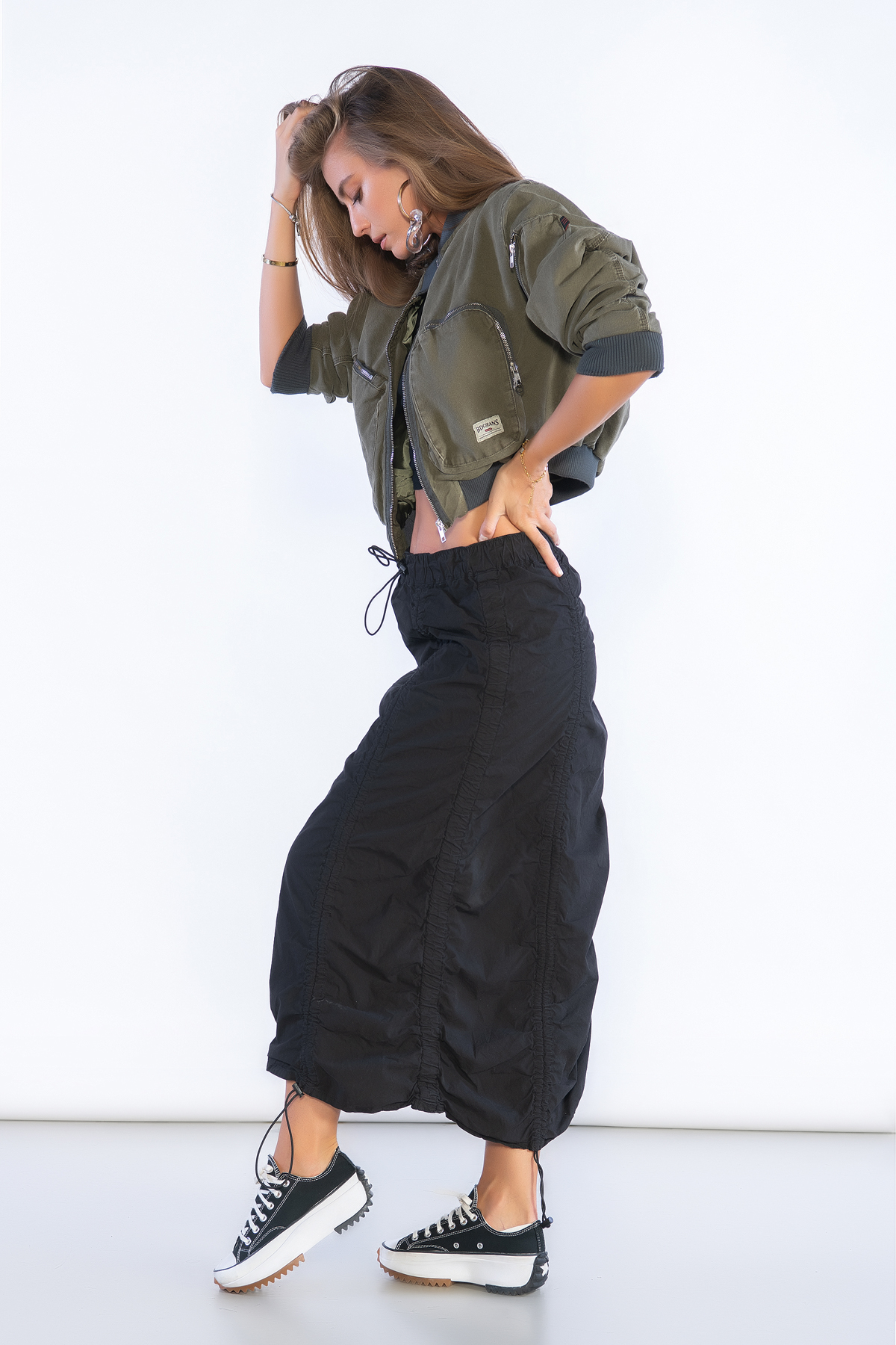 Siyah Belden Ayarlanabilir Yandan Büzgülü Kargo Paraşüt Etek