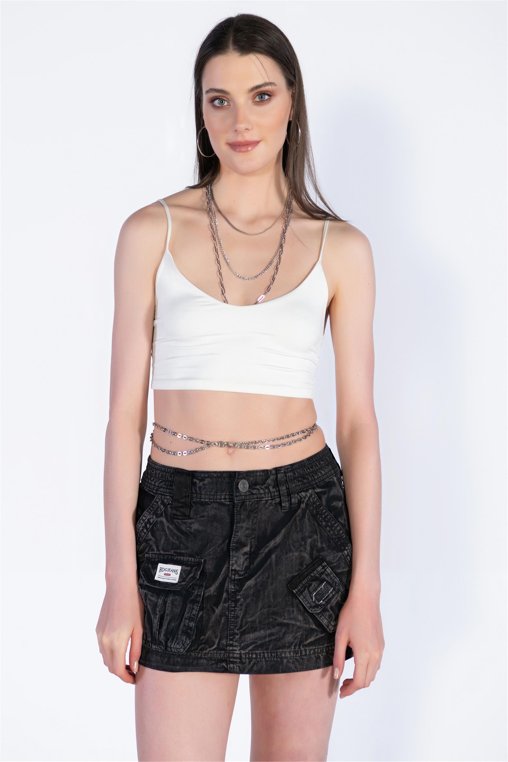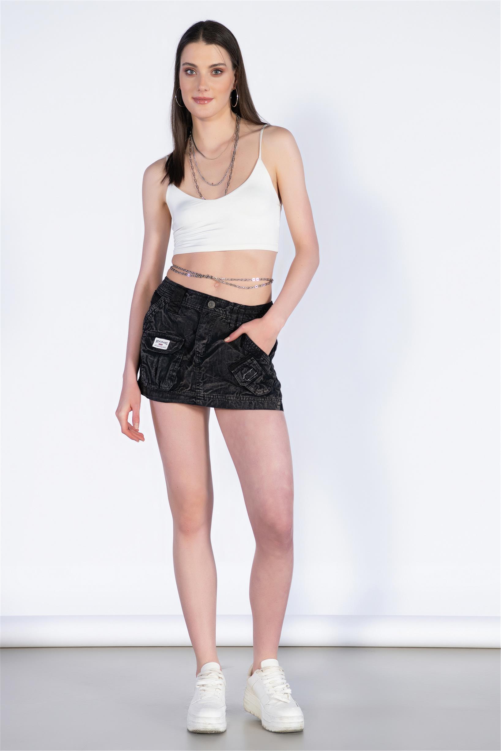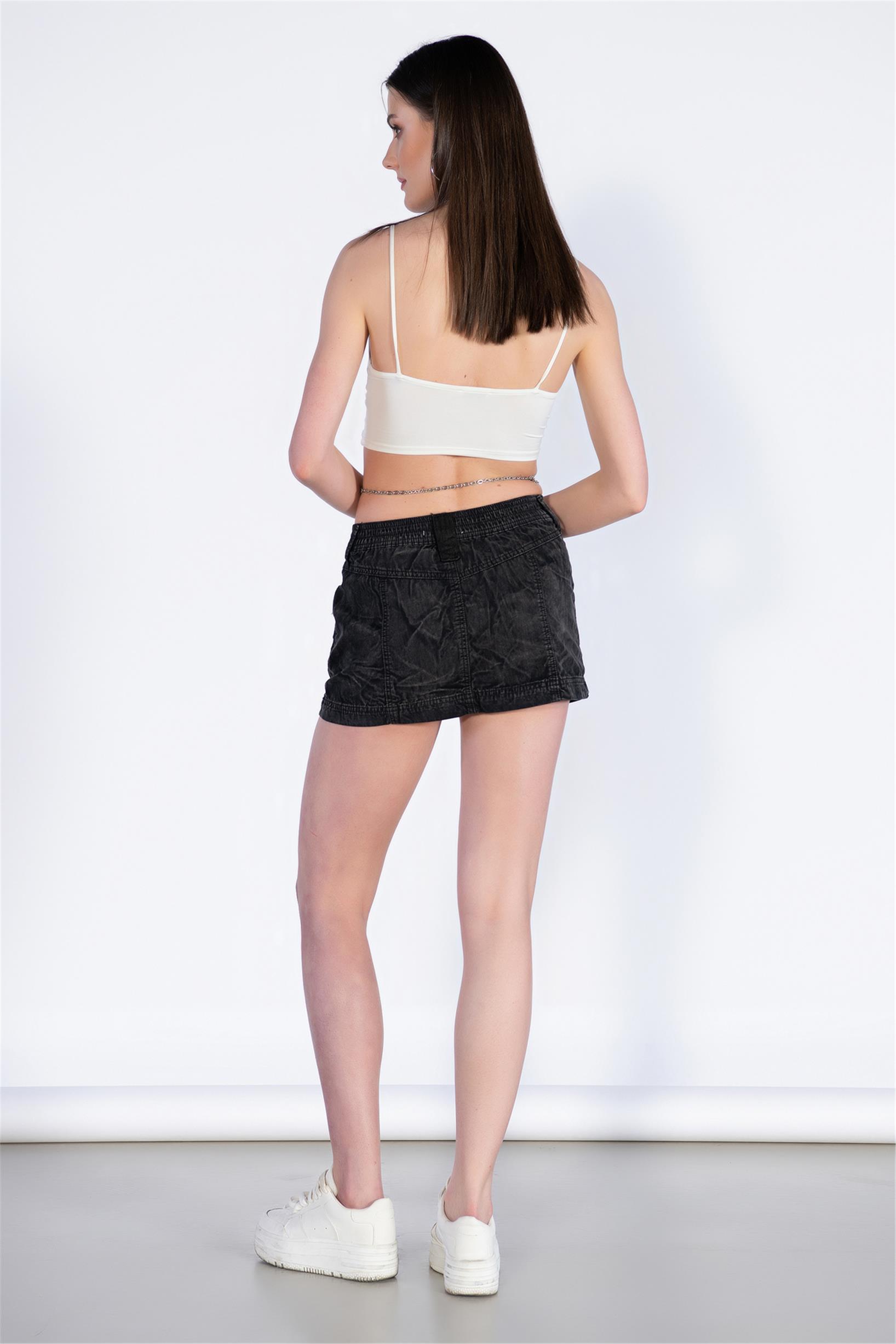 Siyah Boyalı Mini Kargo Etek