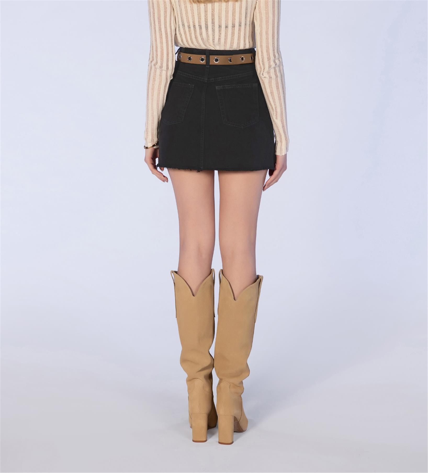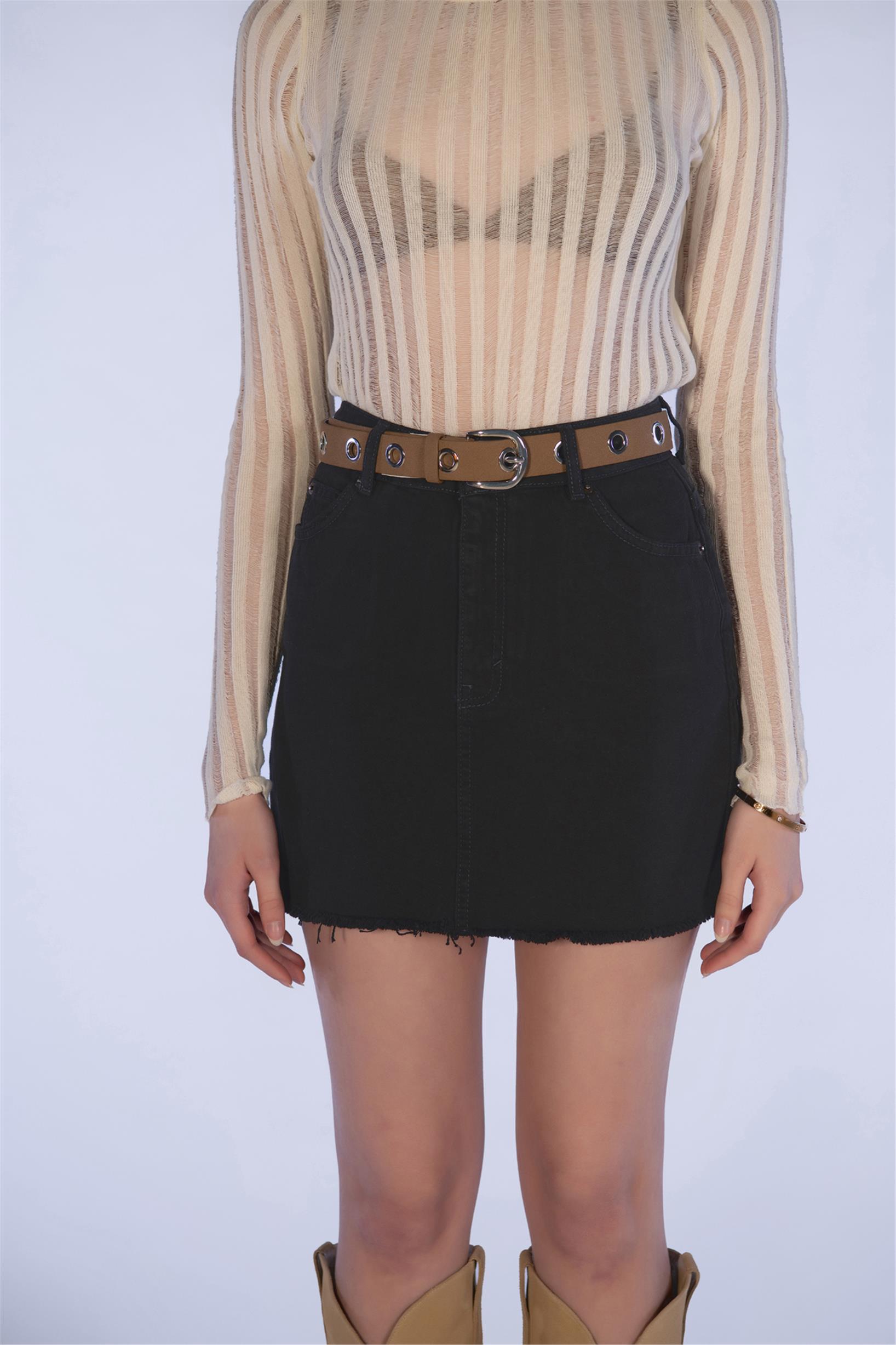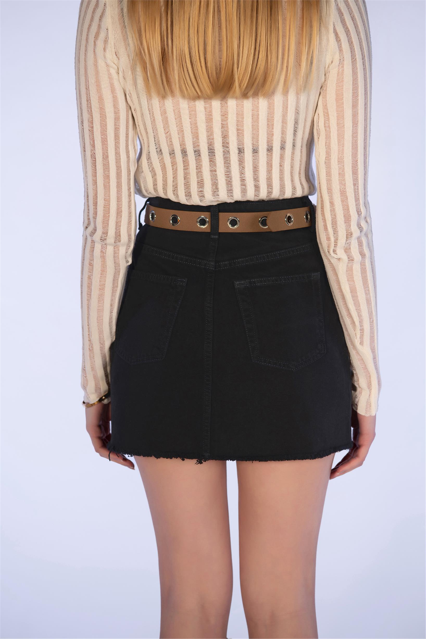 Siyah Denim Mini Kot Etek