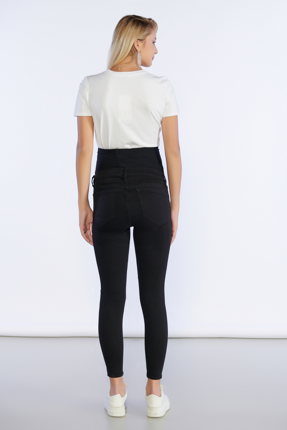 Siyah Diz Lazer Detaylı Slim Fit Hamile Pantolon