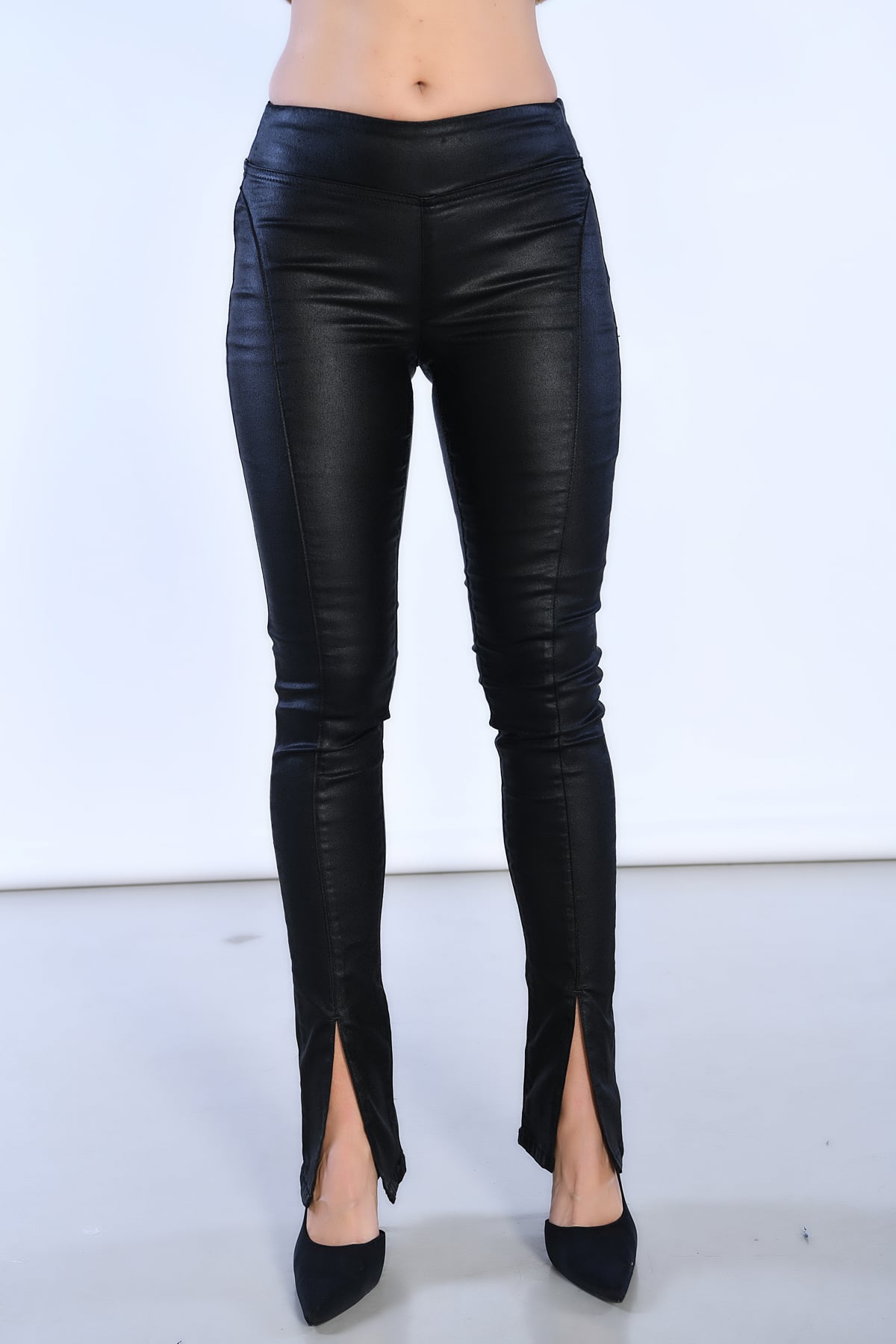 Siyah Düşük Bel Yırtık Paça Detaylı Mumlu Skinny