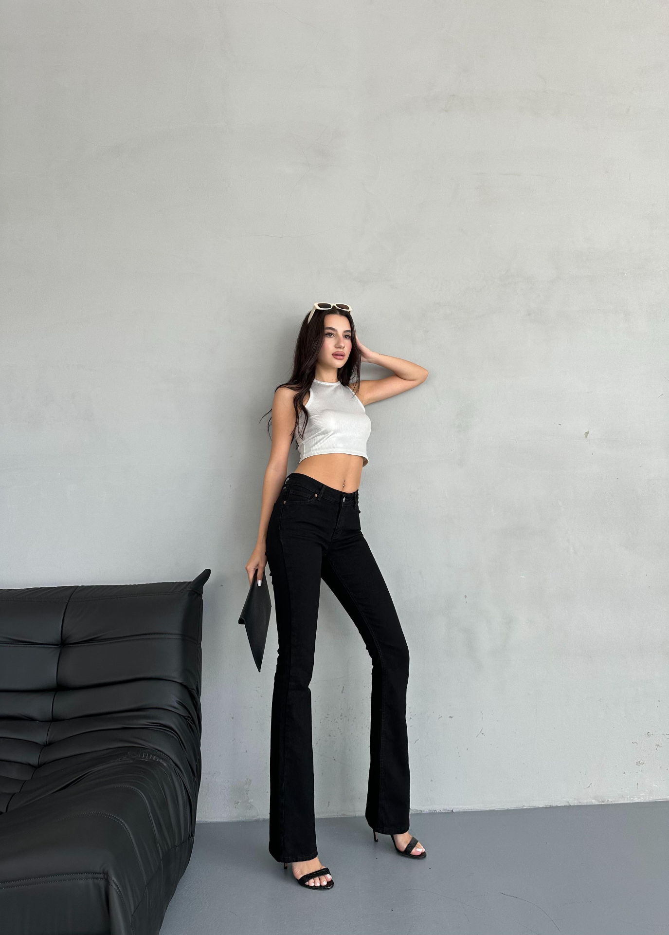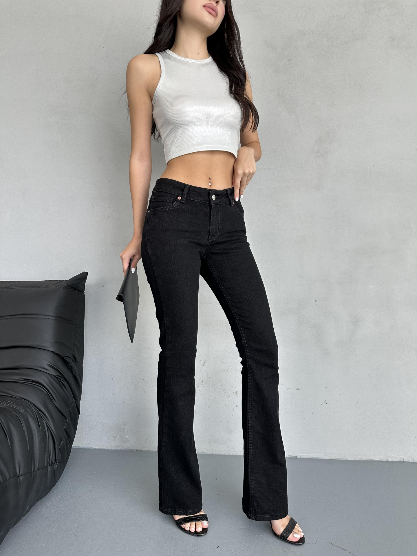 Siyah Flare Denim Jeans