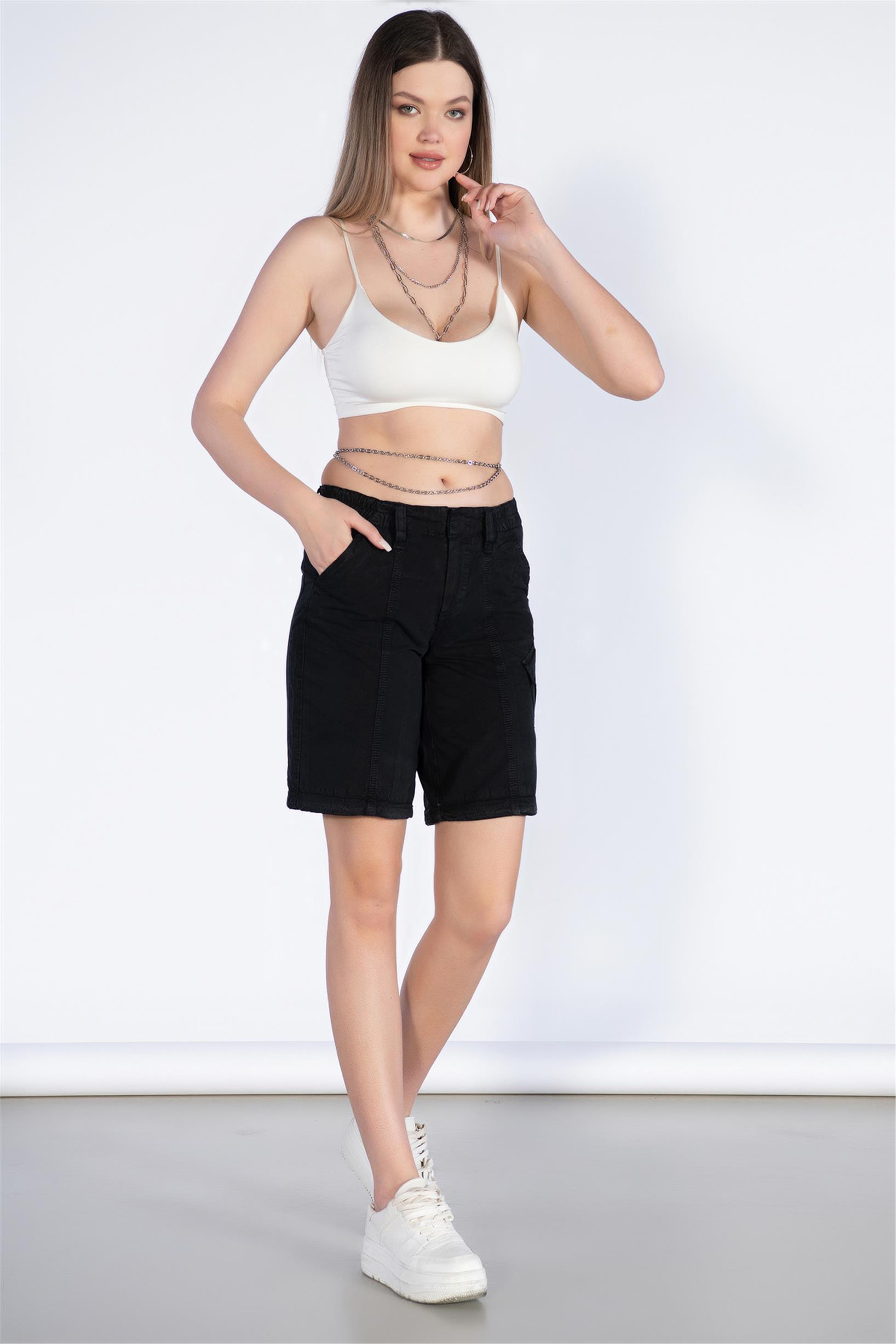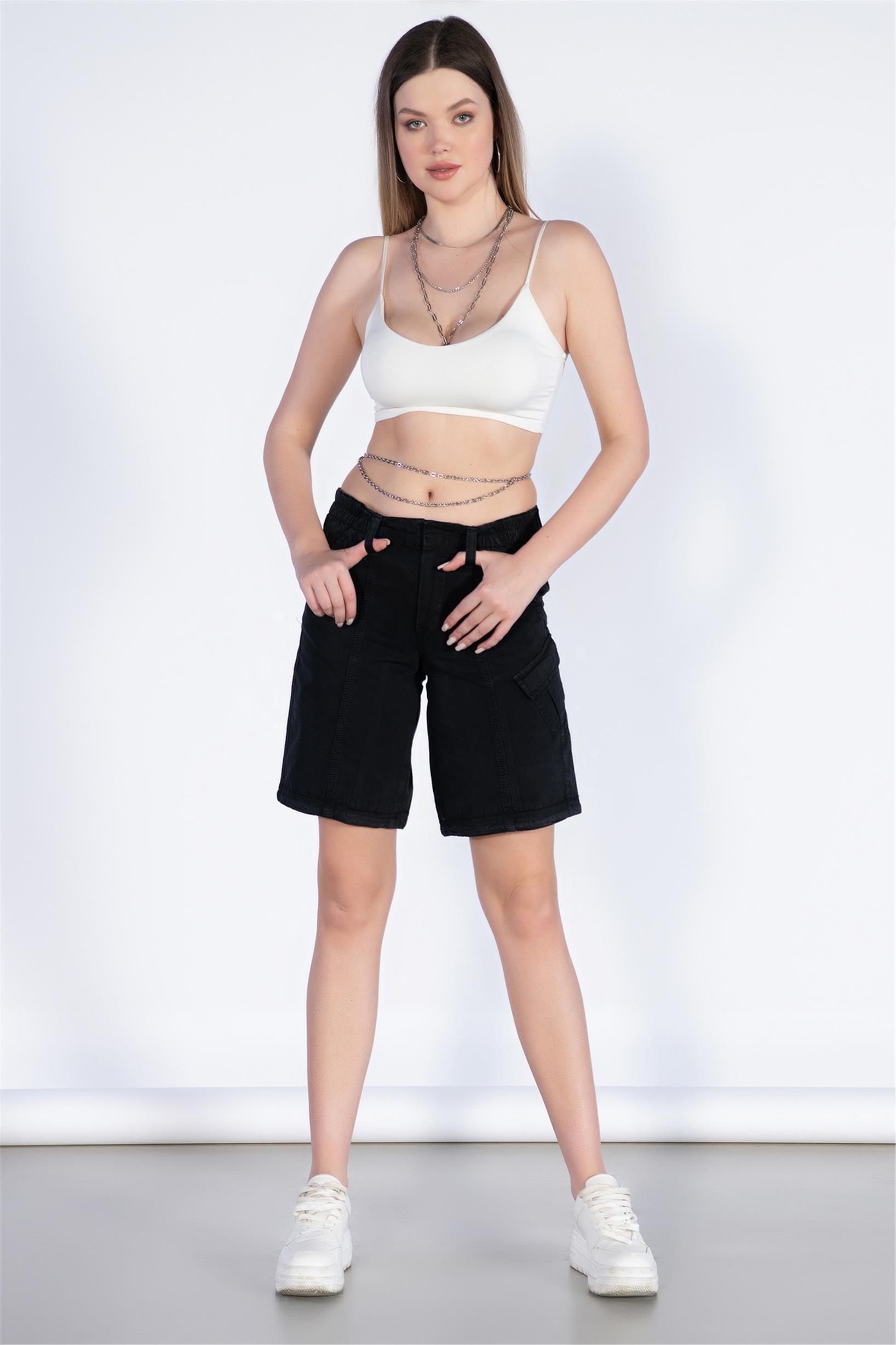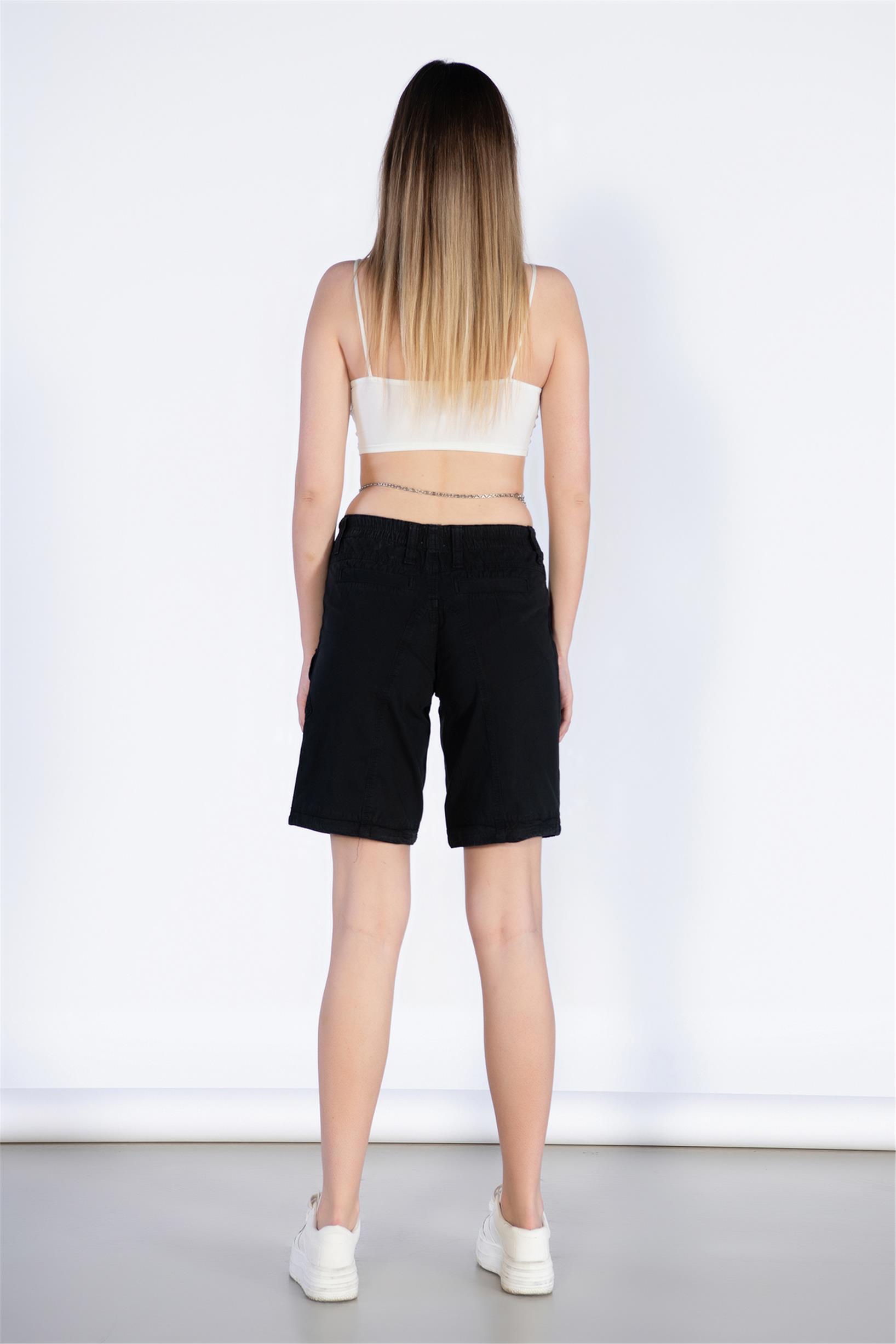 Siyah Normal Bel Kargo Bermuda Şort