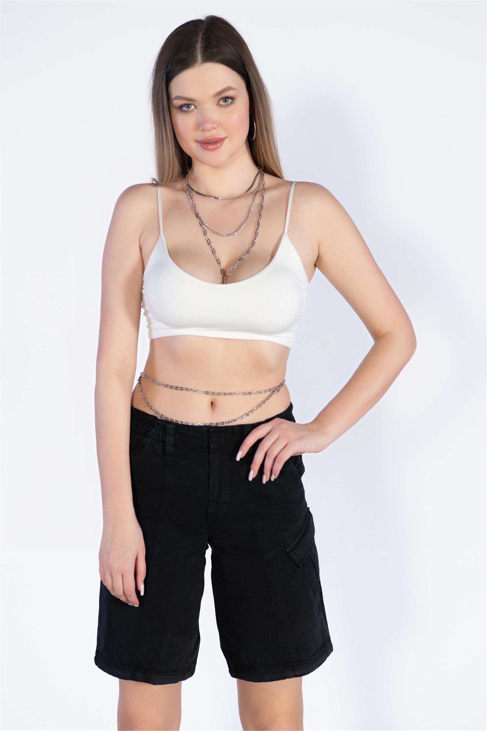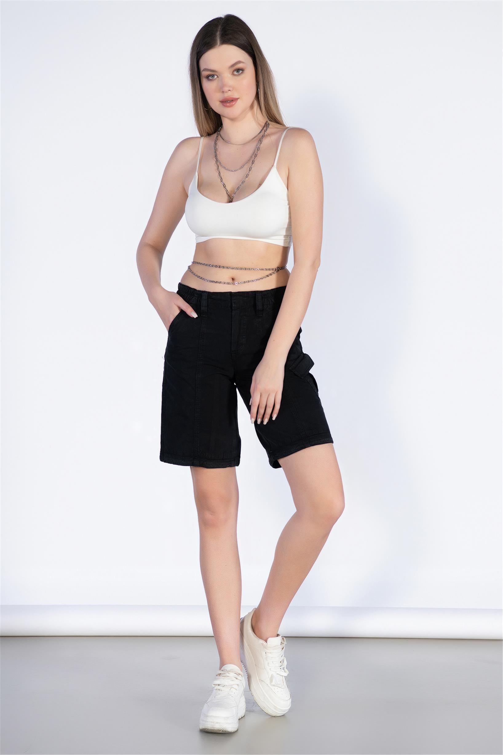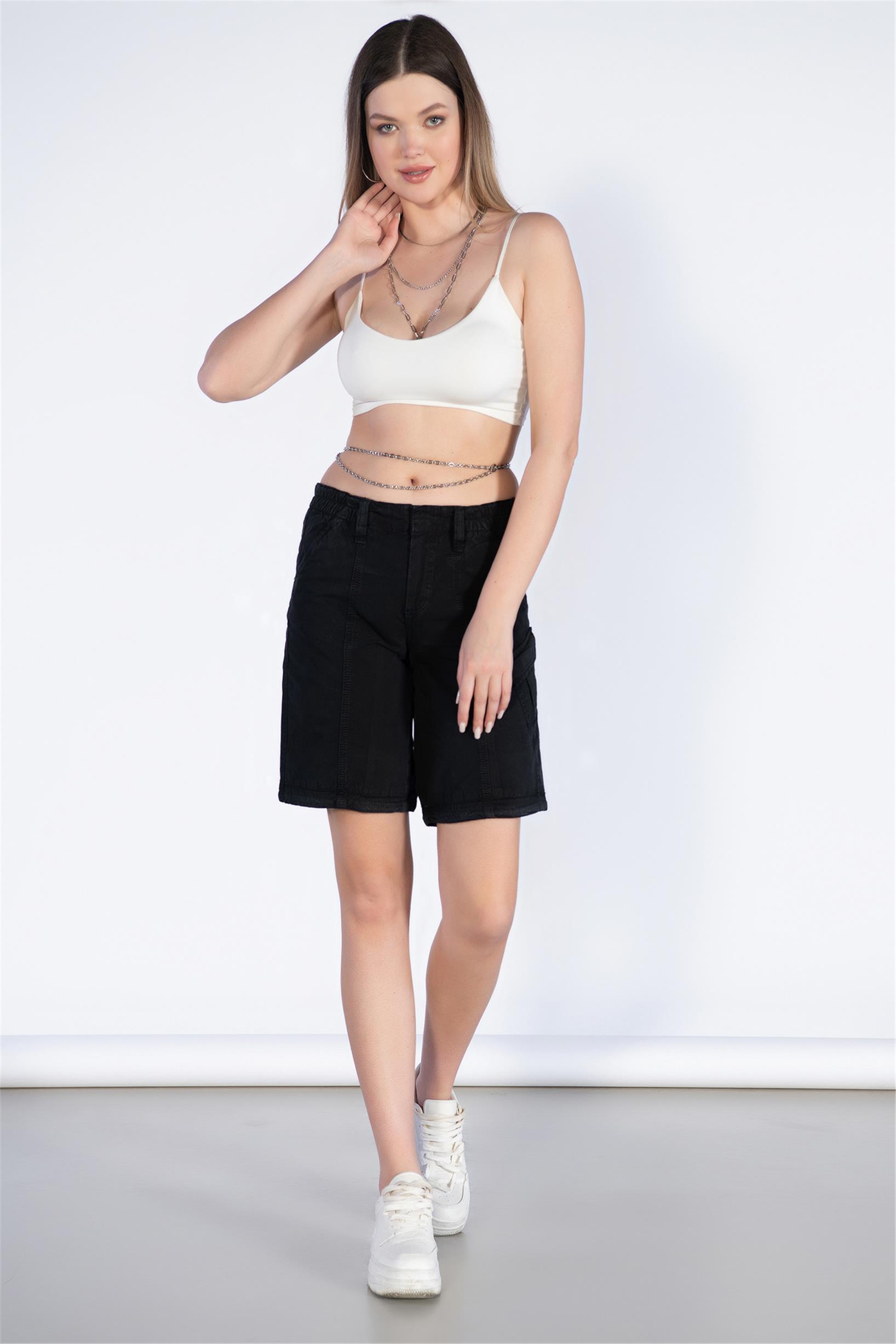 Siyah Normal Bel Kargo Bermuda Şort