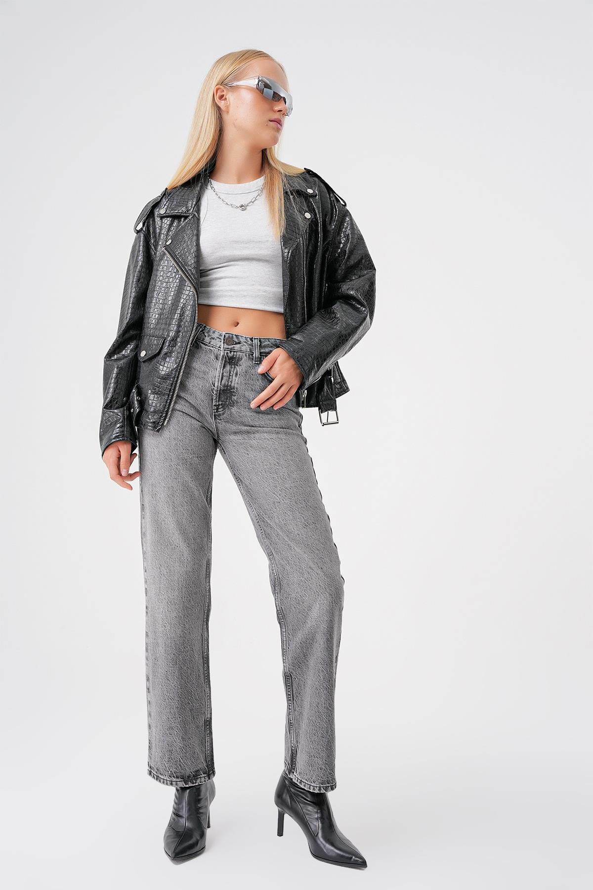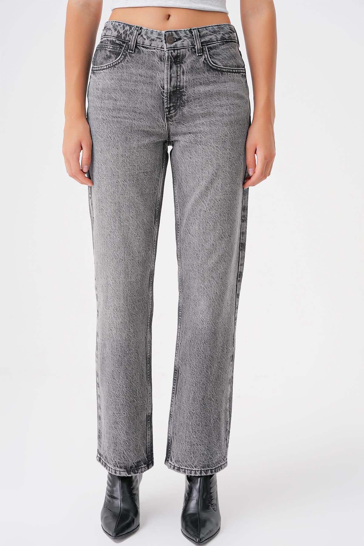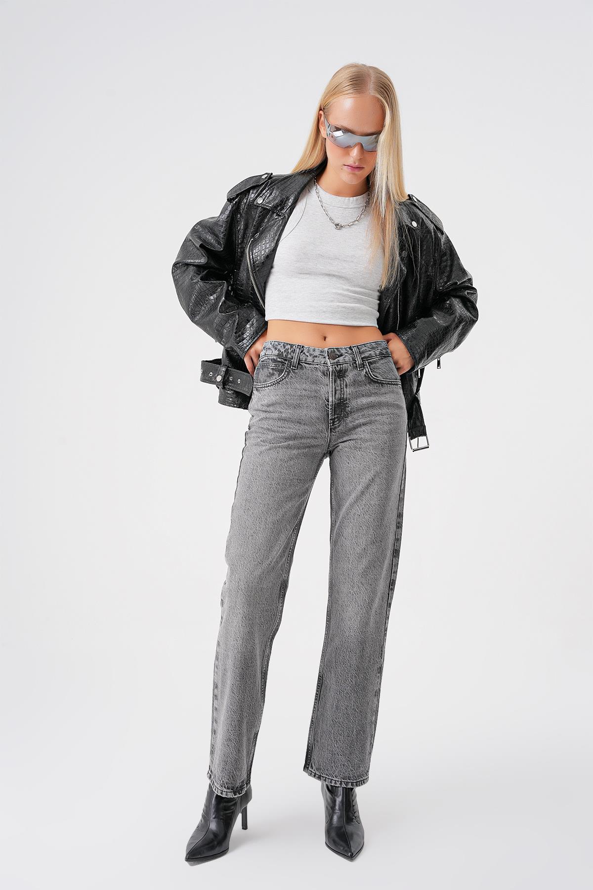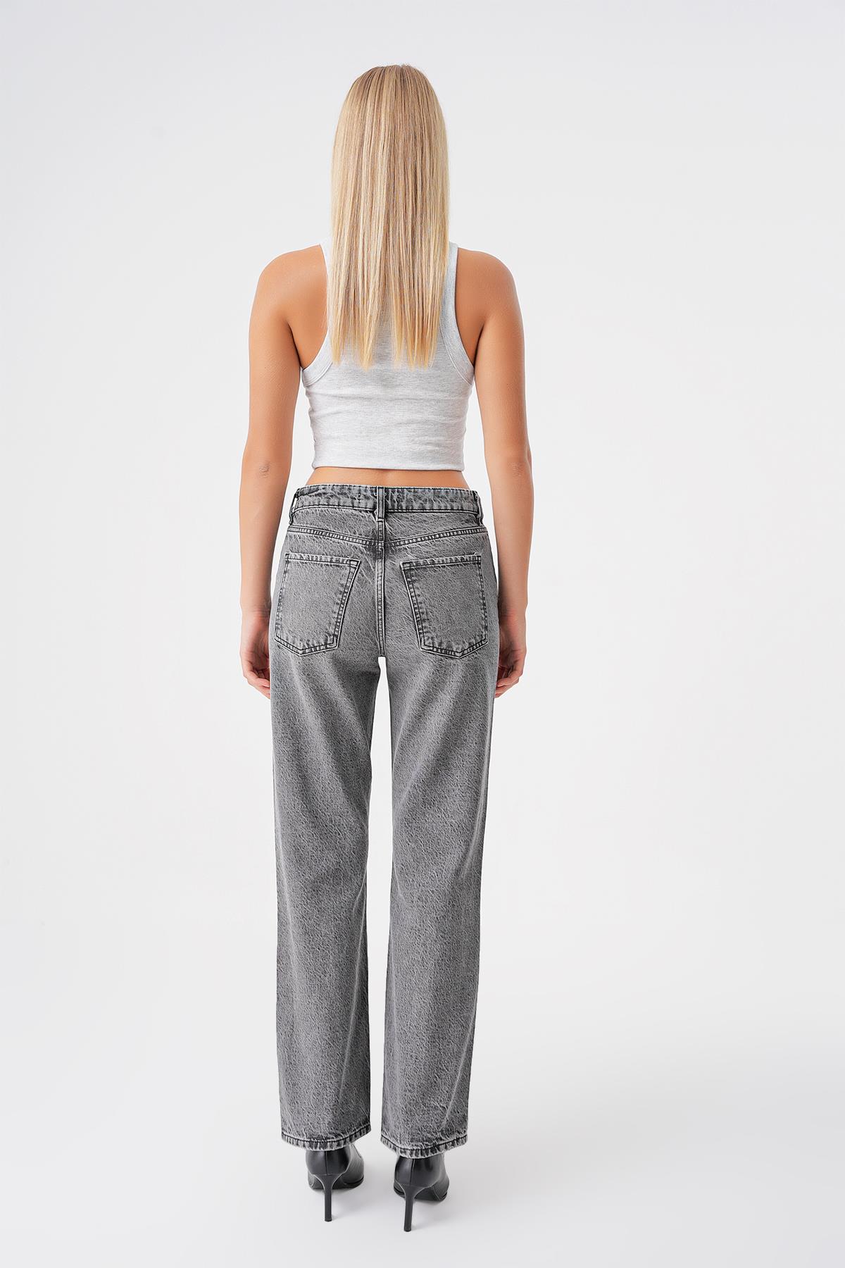 Siyah Vintage Yuksek Bel Straight Jean