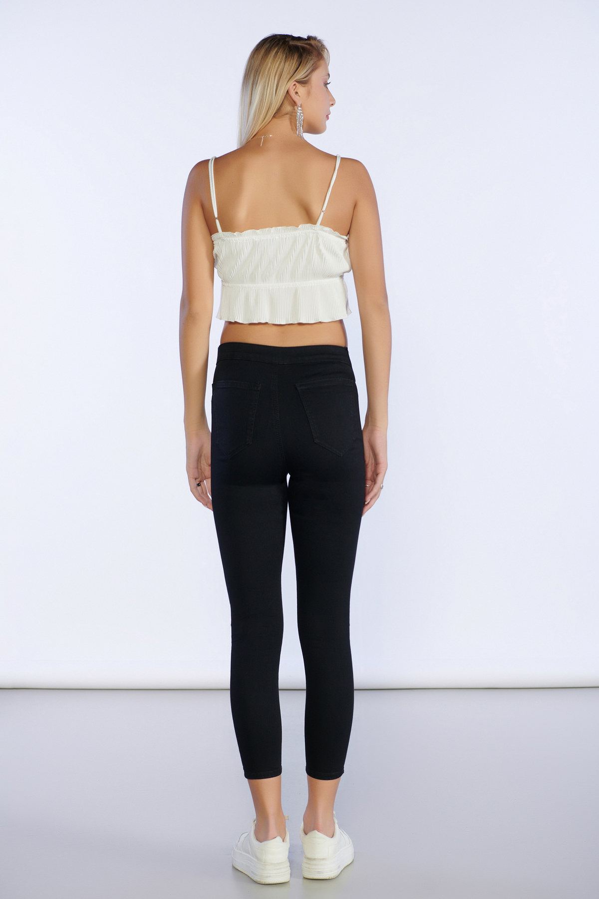 Siyah Yüksek Bel Beli Lastikli Skinny Pantolon