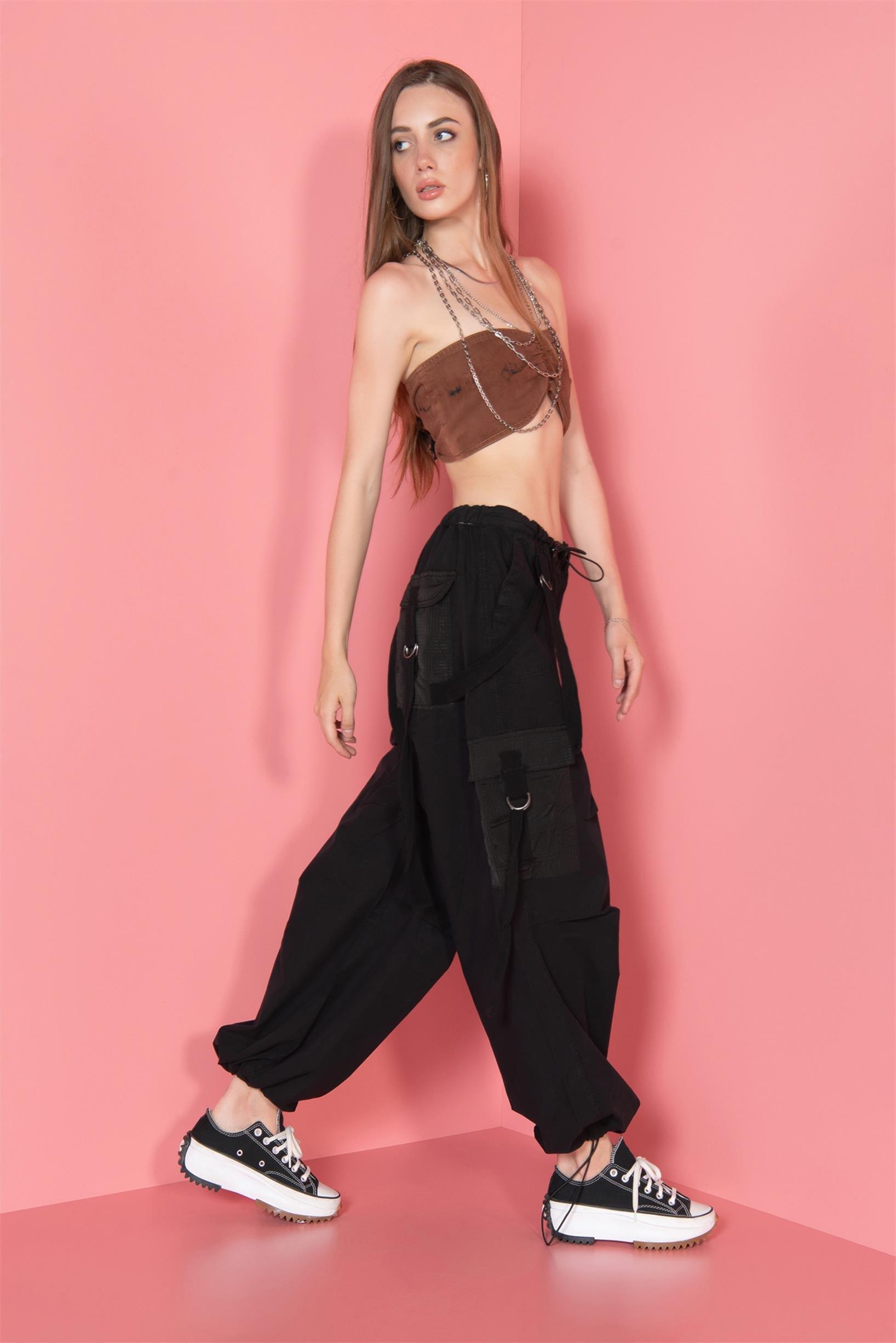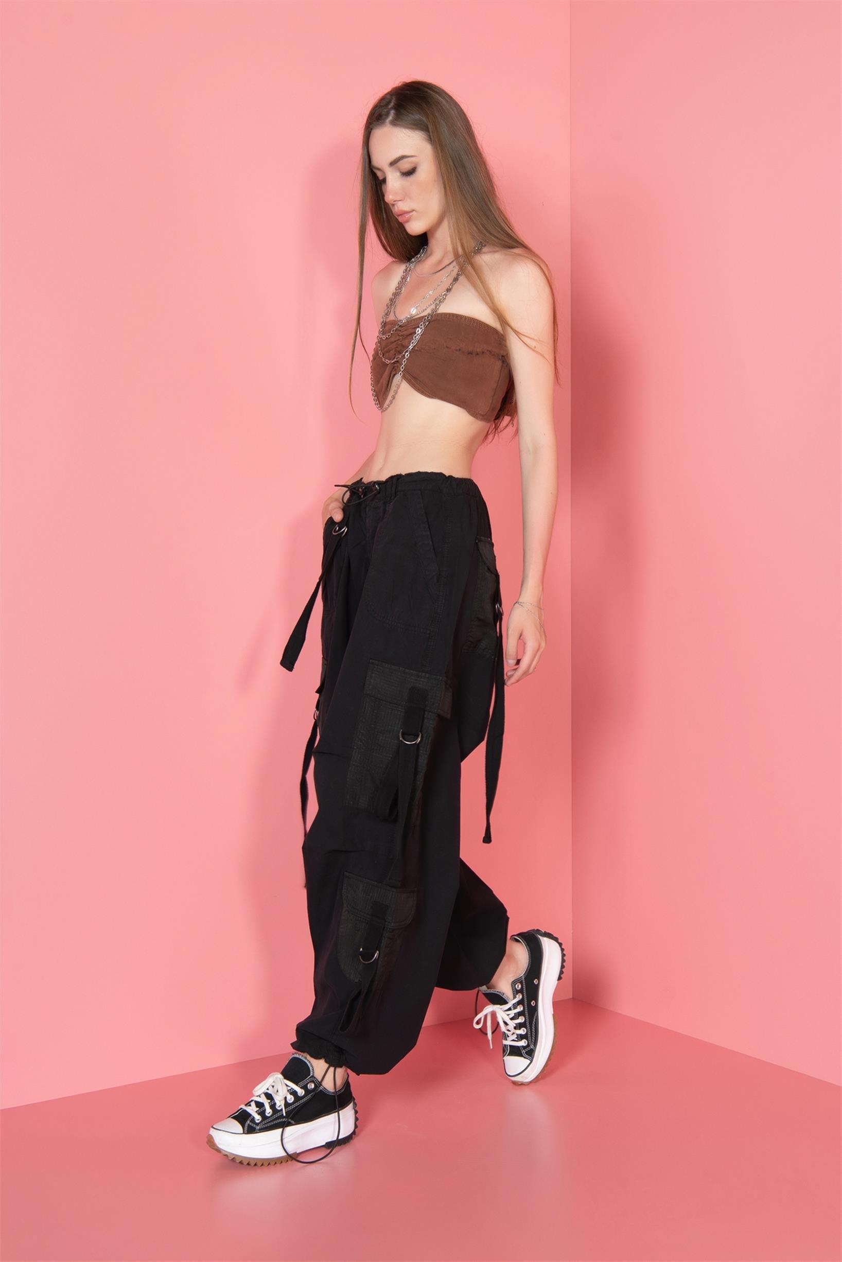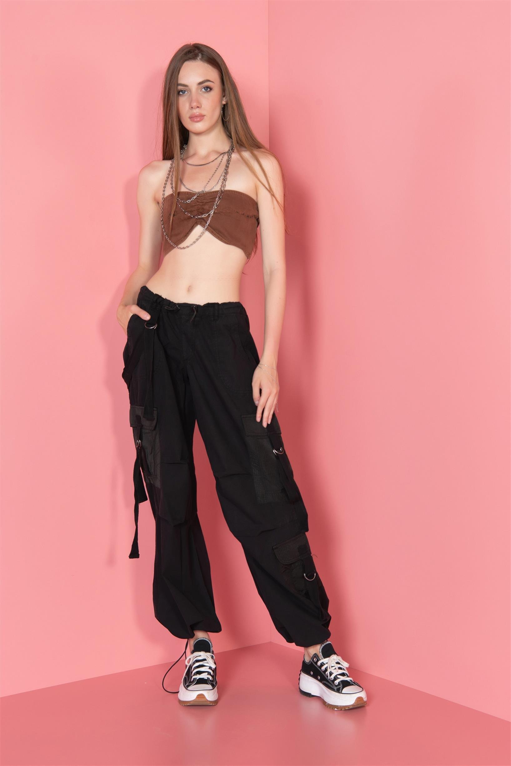 Stoperli ve Tokalı Cep Renk Detay Paraşüt Kargo Pantolon