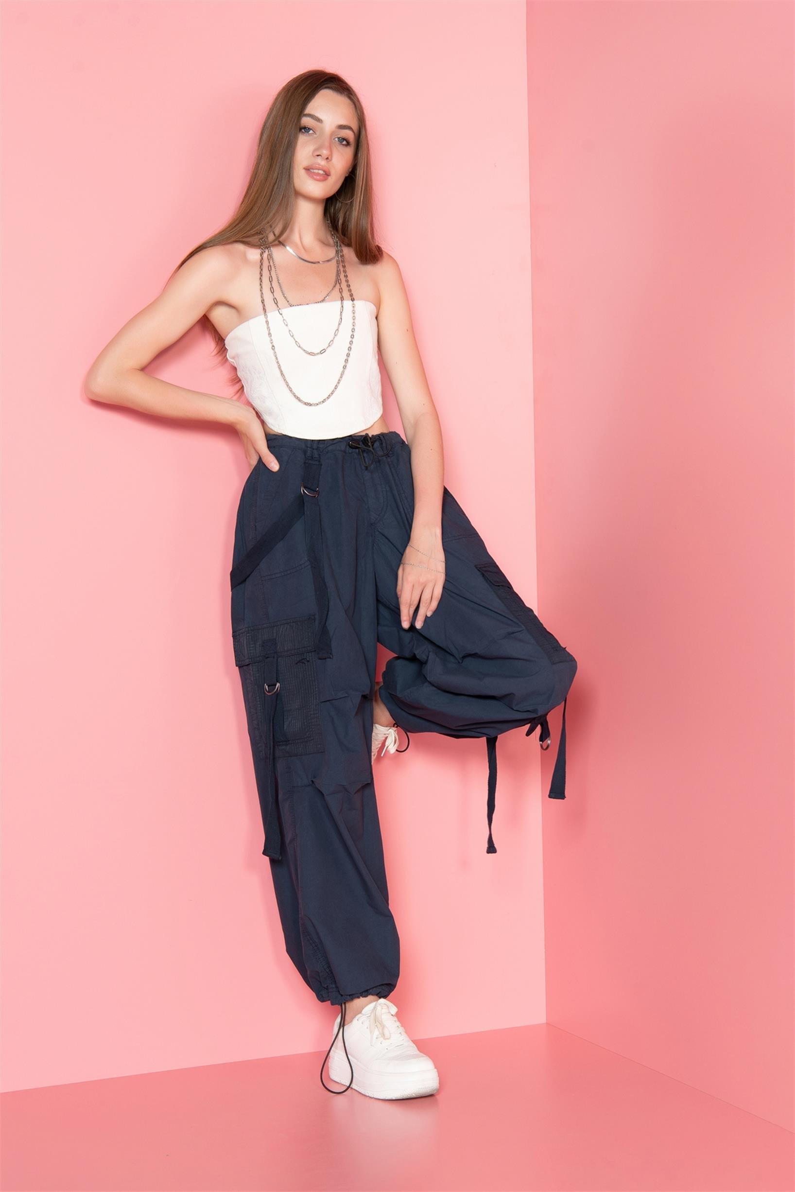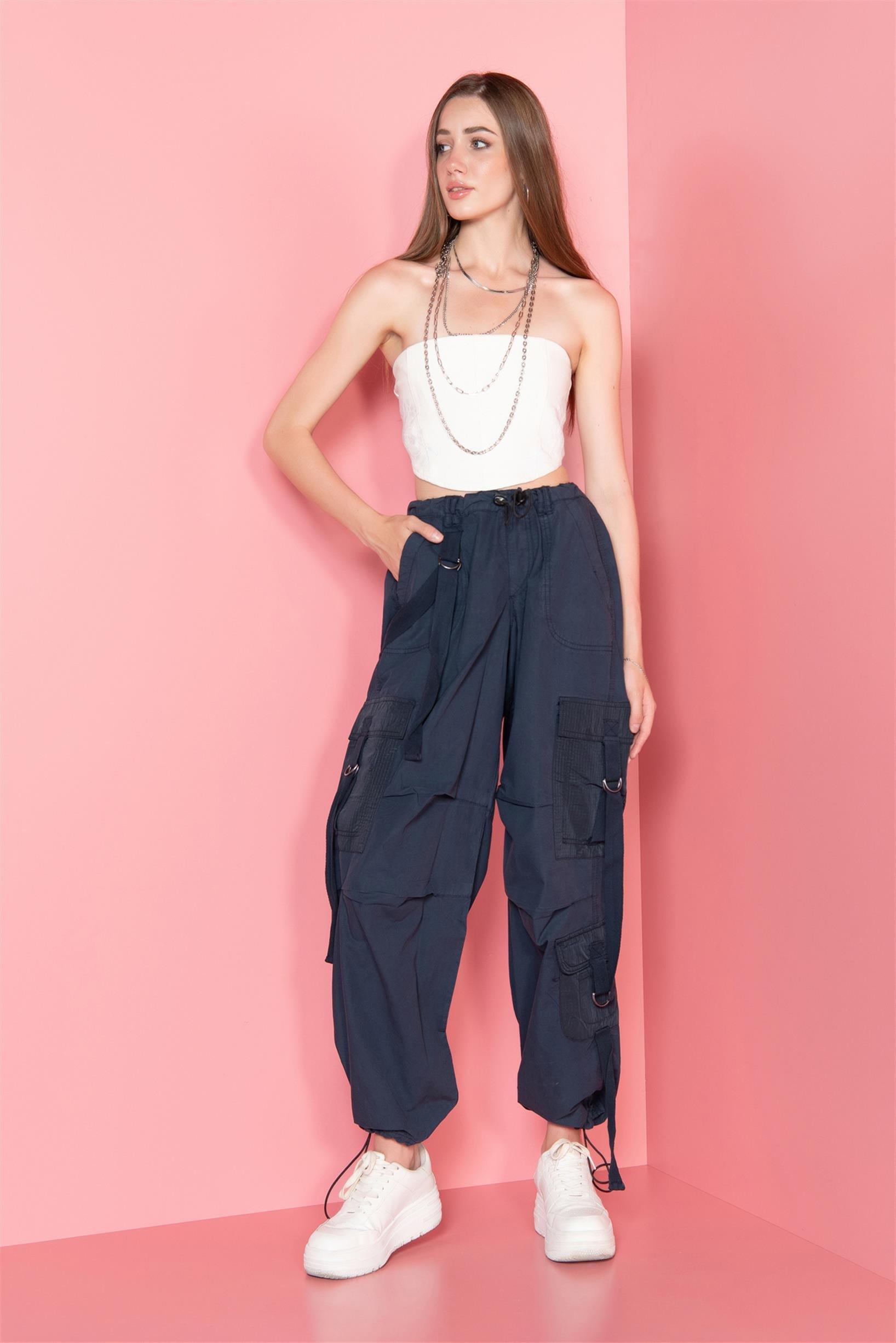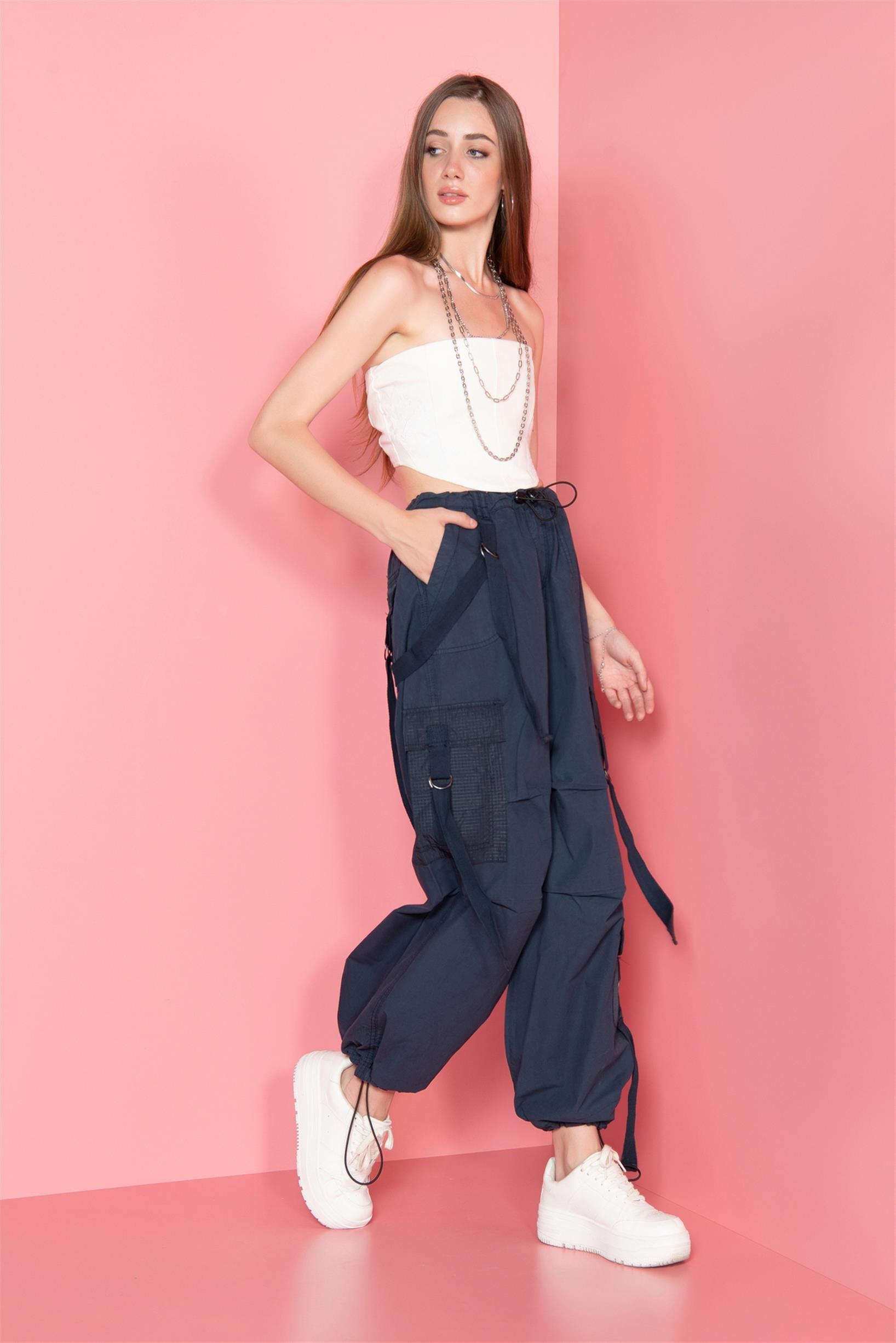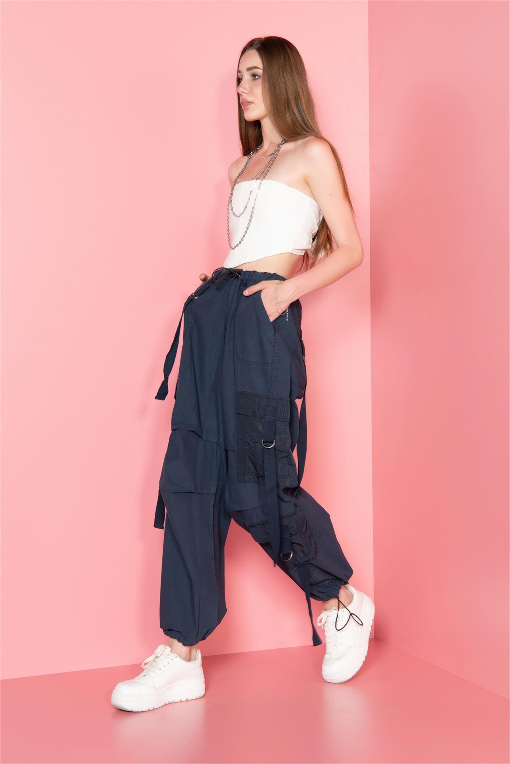 Stoperli ve Tokalı Cep Renk Detay Paraşüt Kargo Pantolon