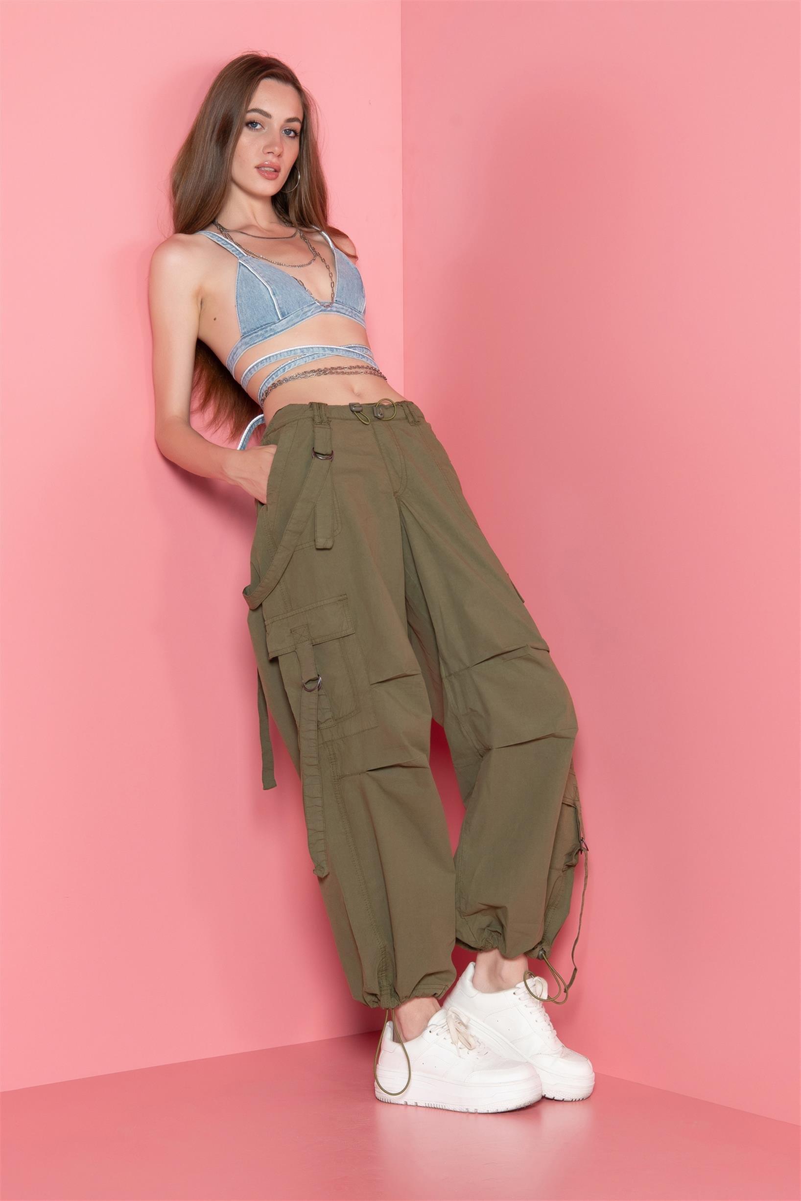 Stoperli ve Tokalı Paraşüt Kargo Pantolon