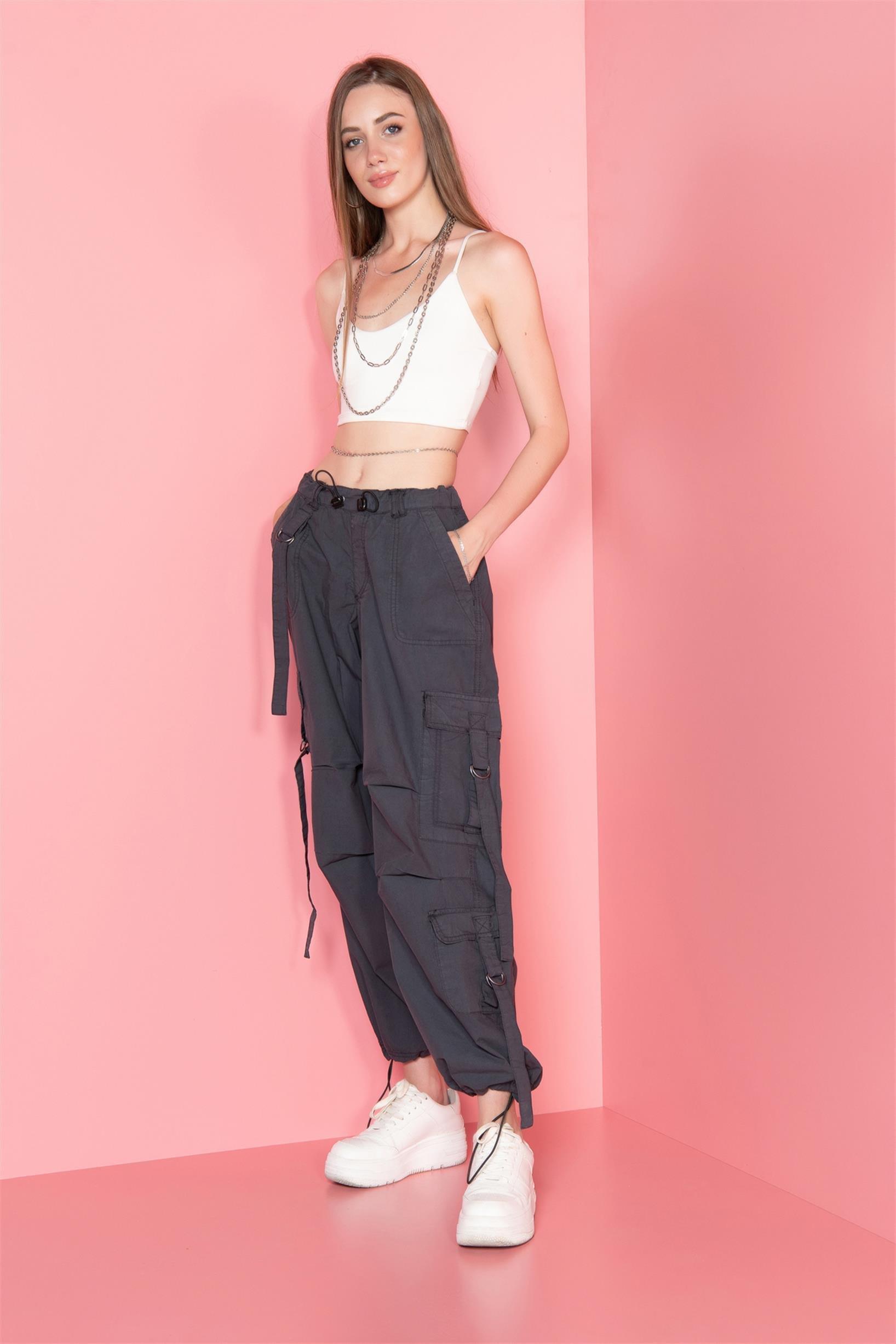 Stoperli ve Tokalı Paraşüt Kargo Pantolon