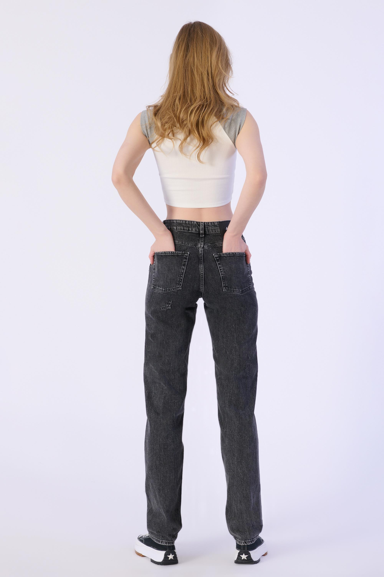 Straıght Mıd Waıst Düz Denim Pantolon