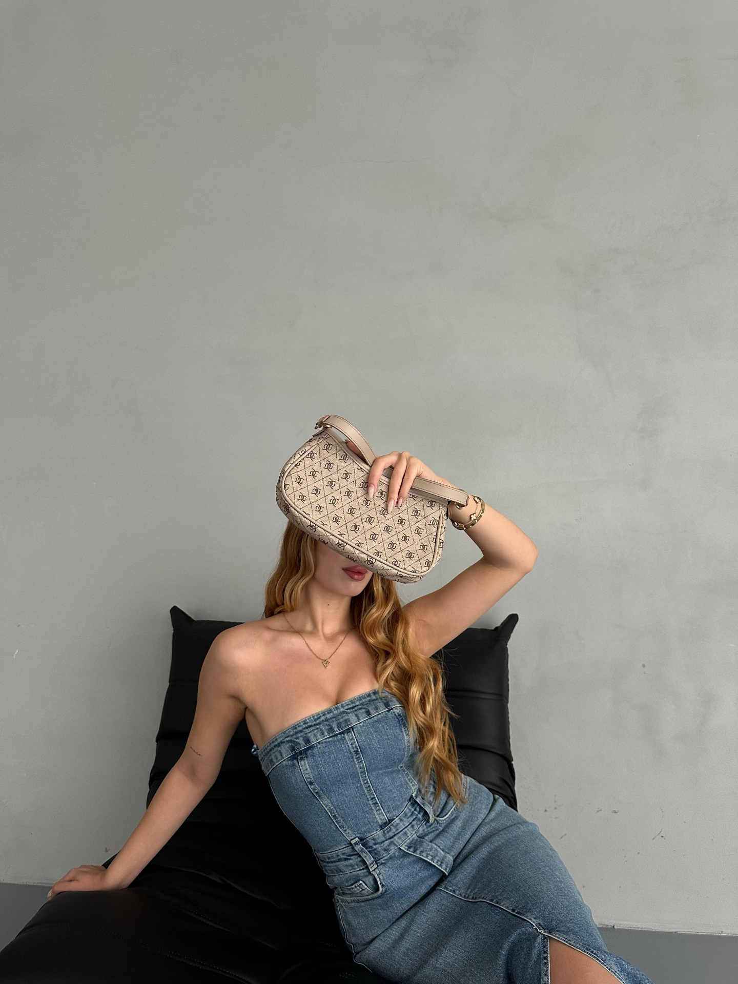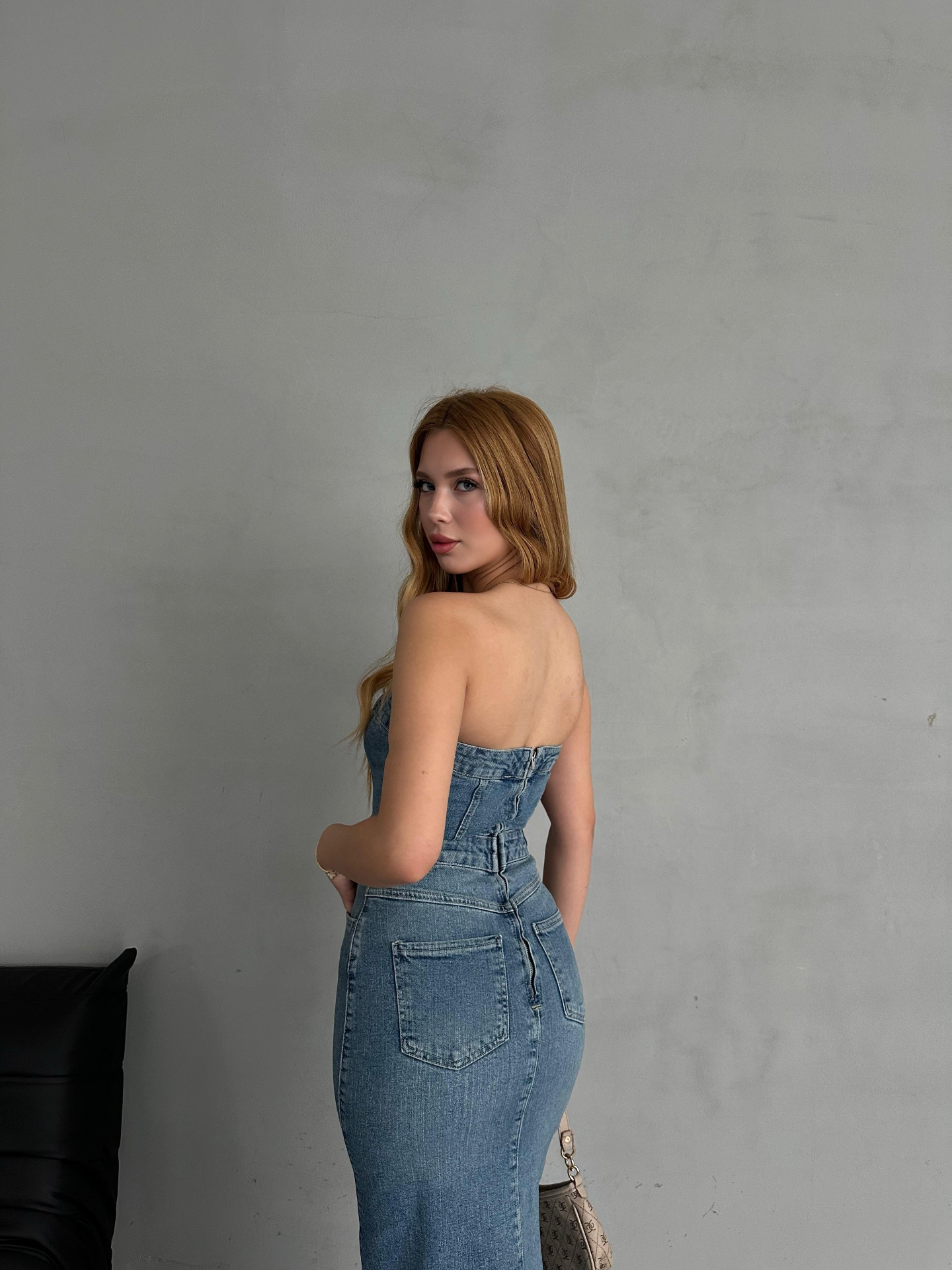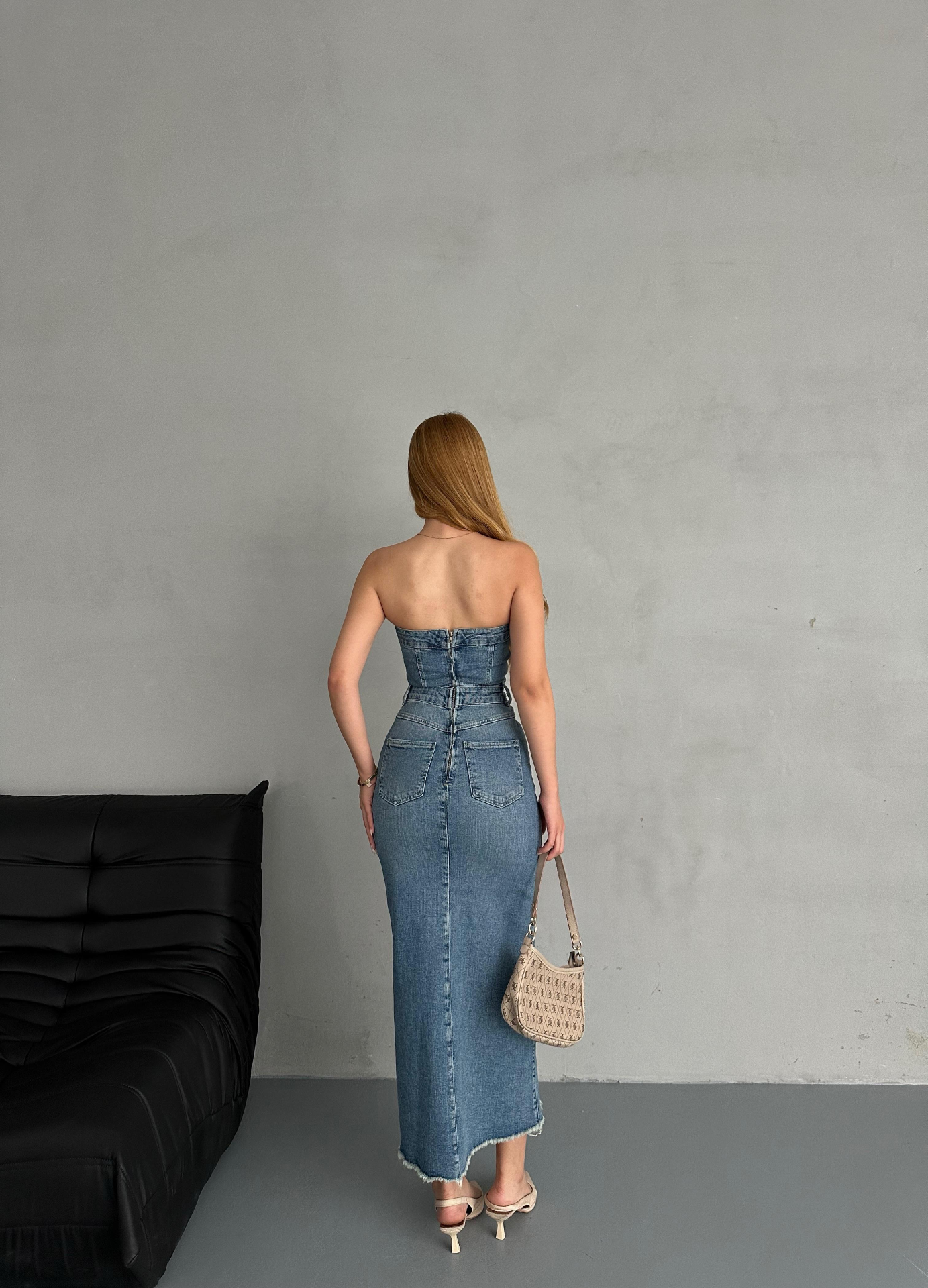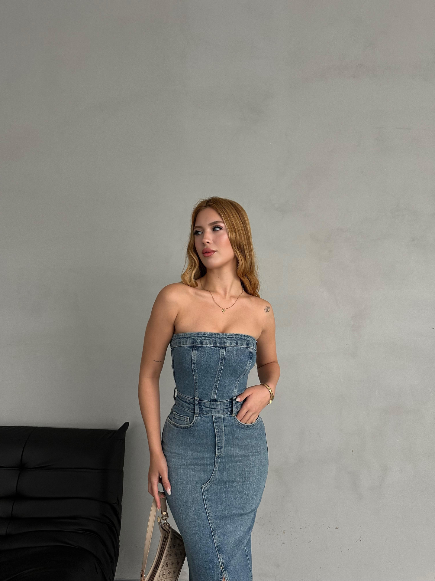 Straplez Denim Elbise