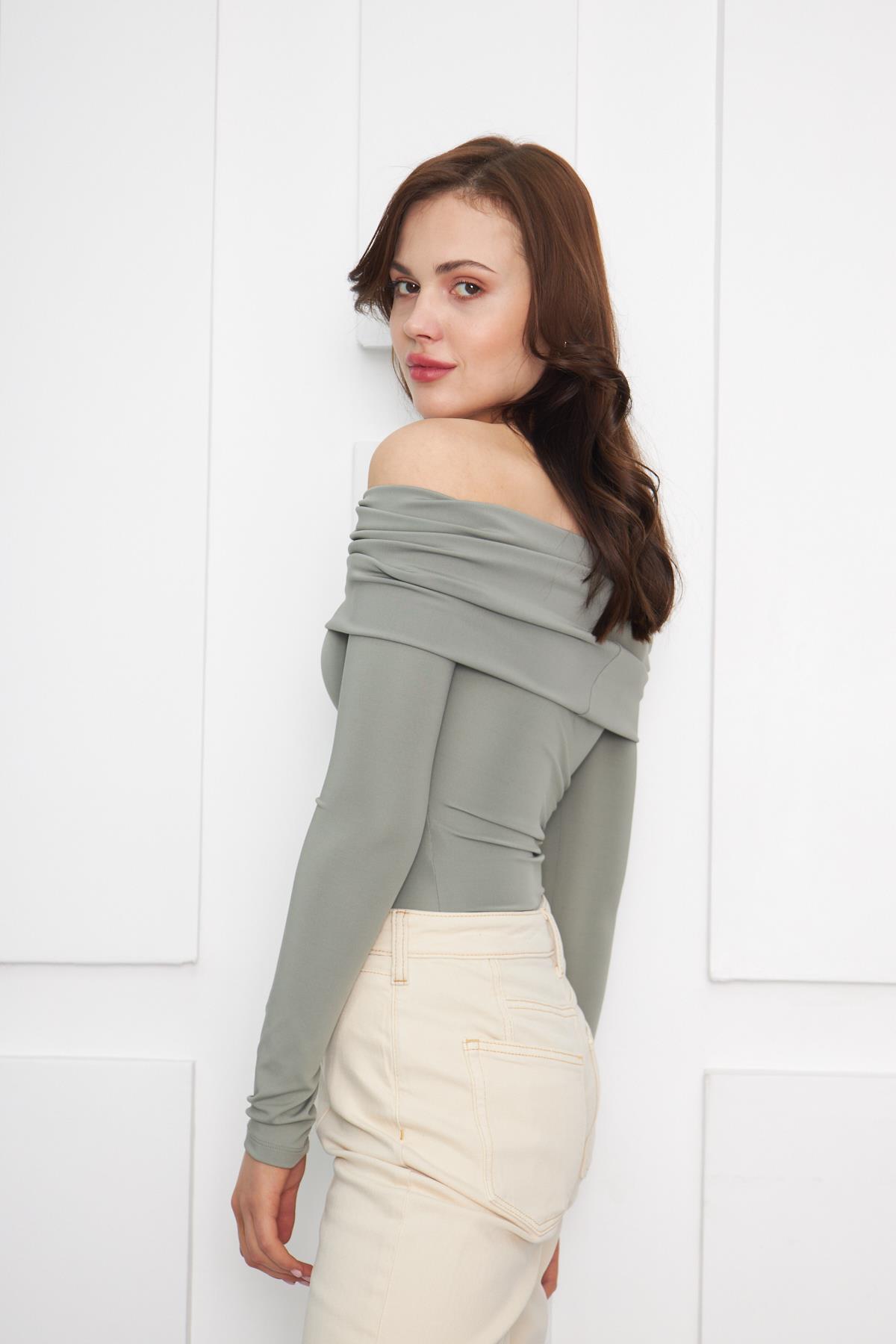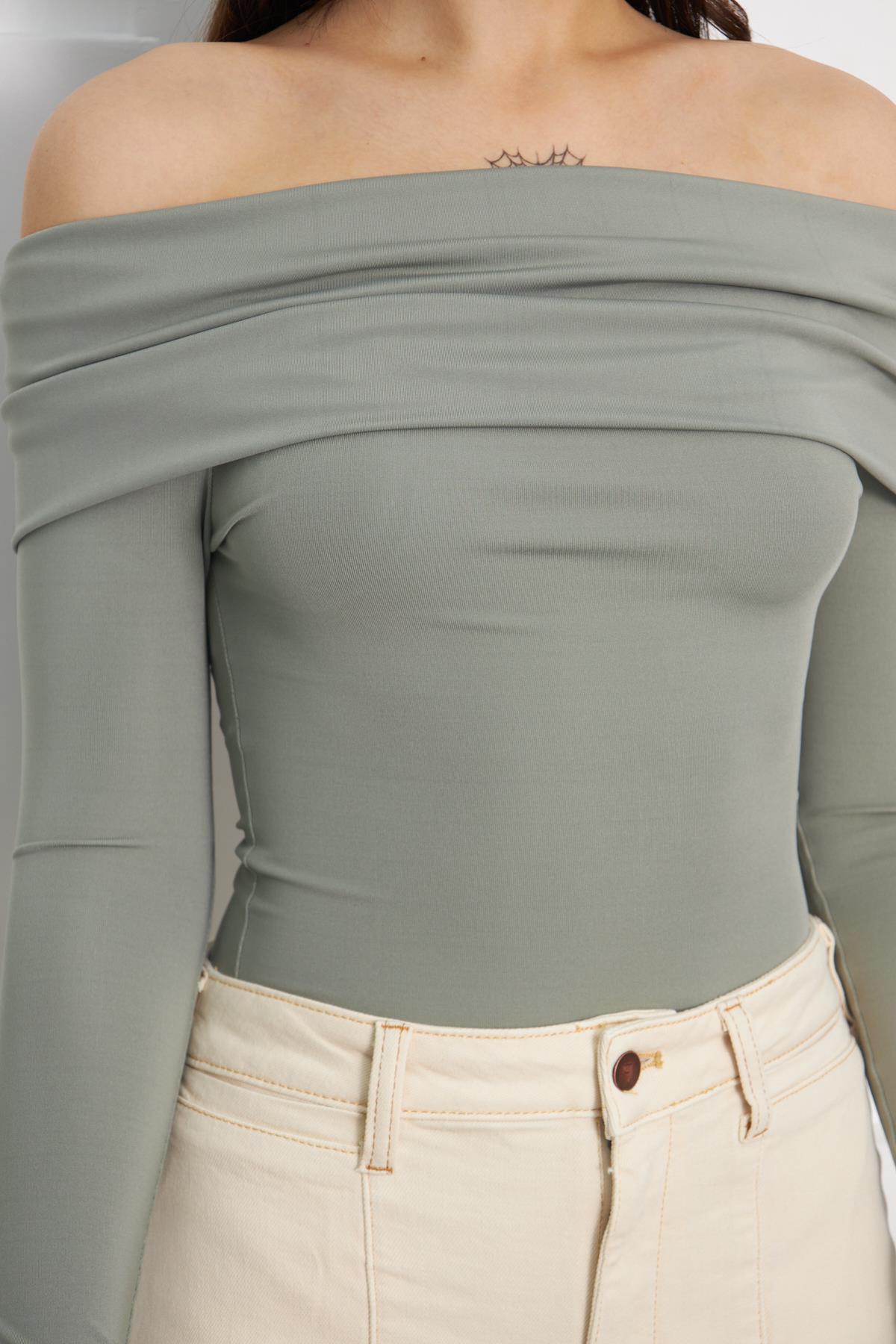Straplez Uzun Kollu Çıtçıtlı Bodi