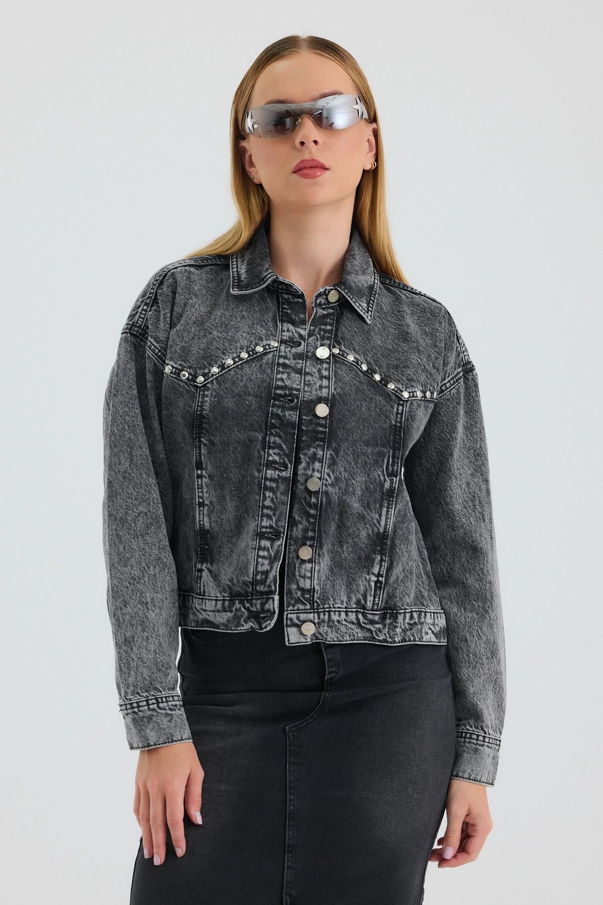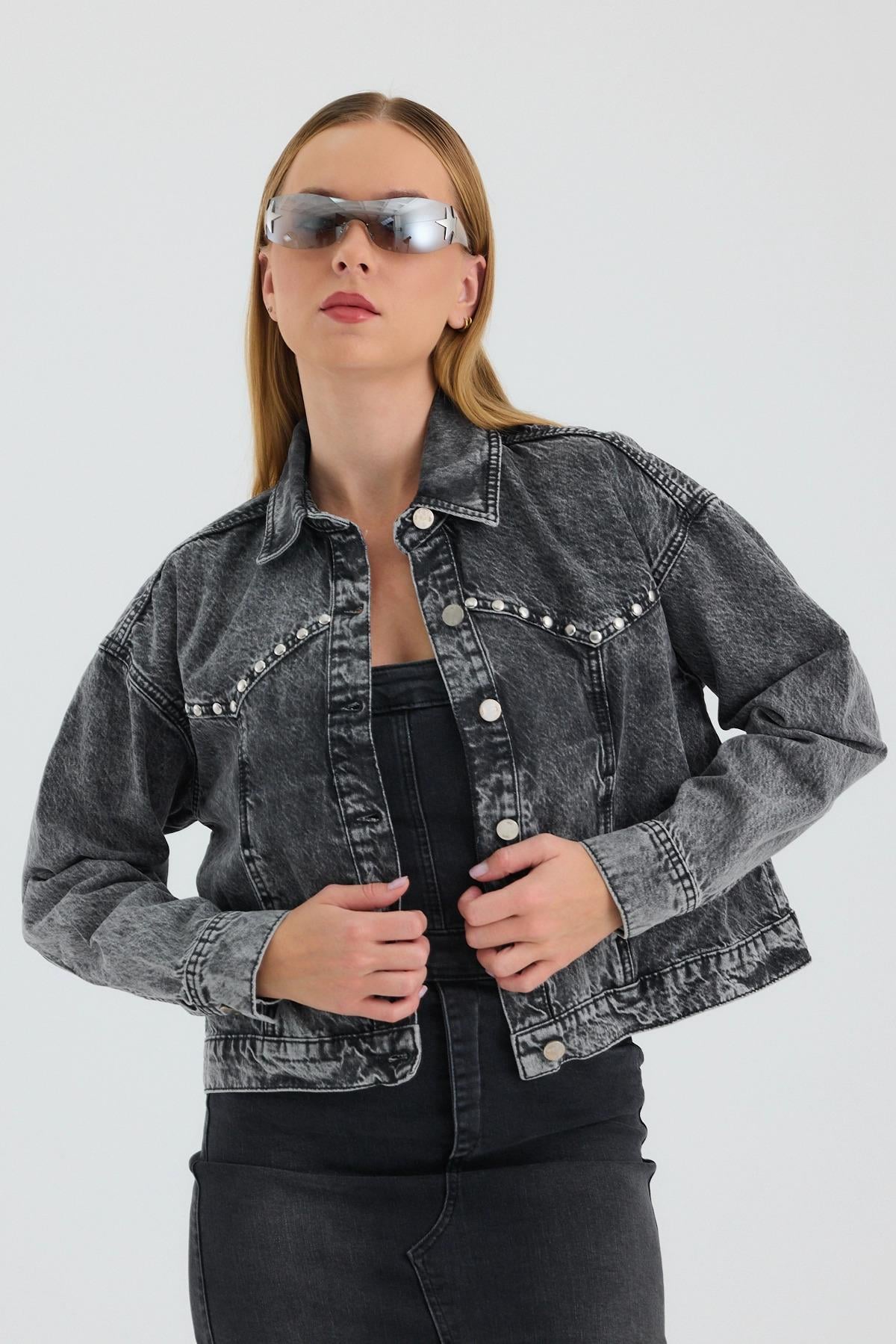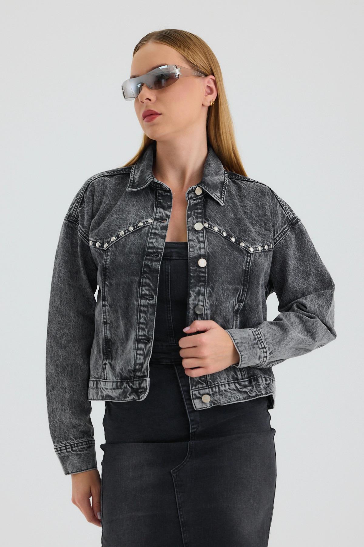 Touche Prive Touche Taş Işlemeli Kot Ceket