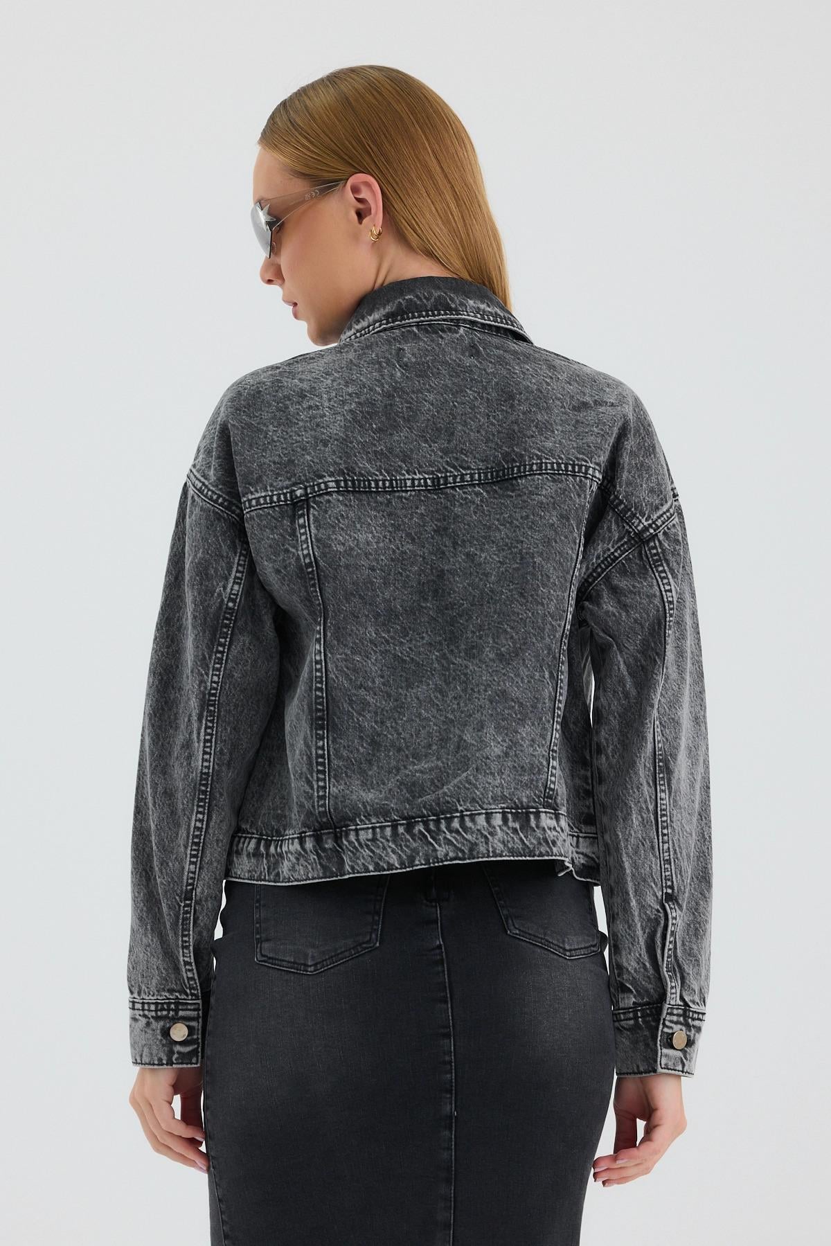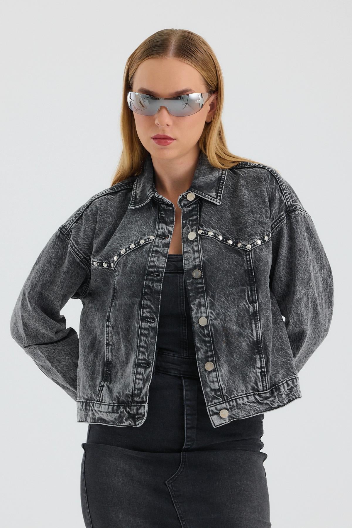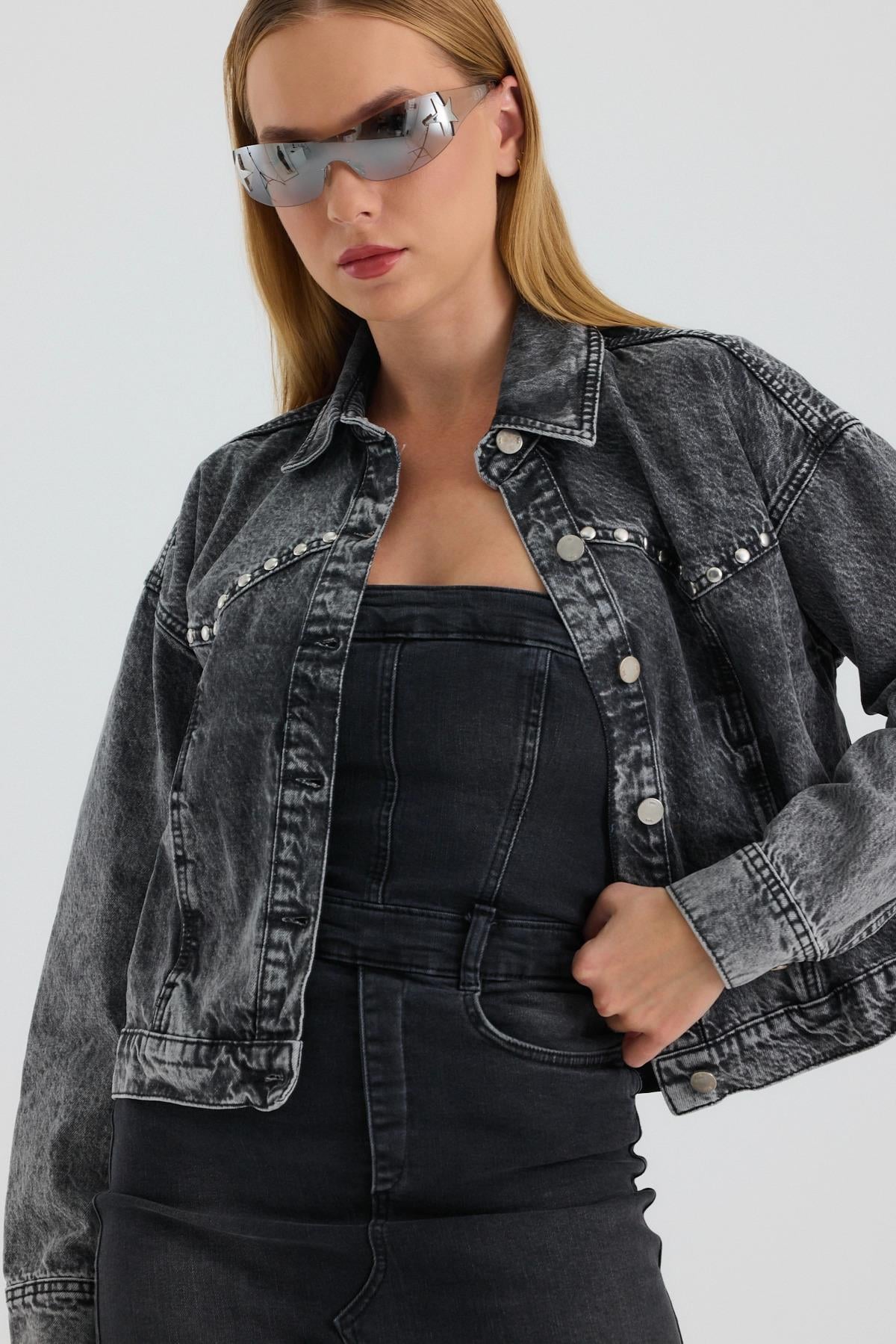 Touche Prive Touche Taş Işlemeli Kot Ceket