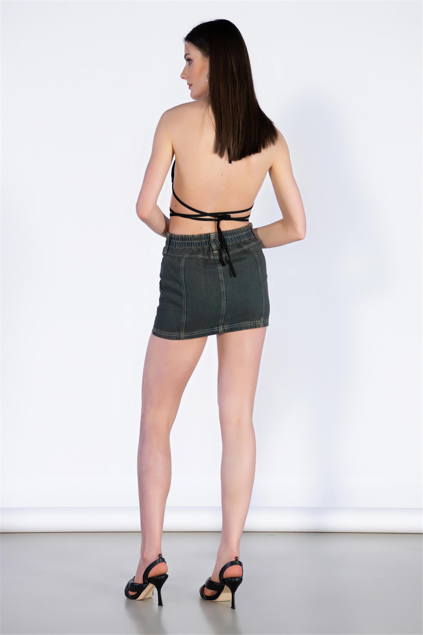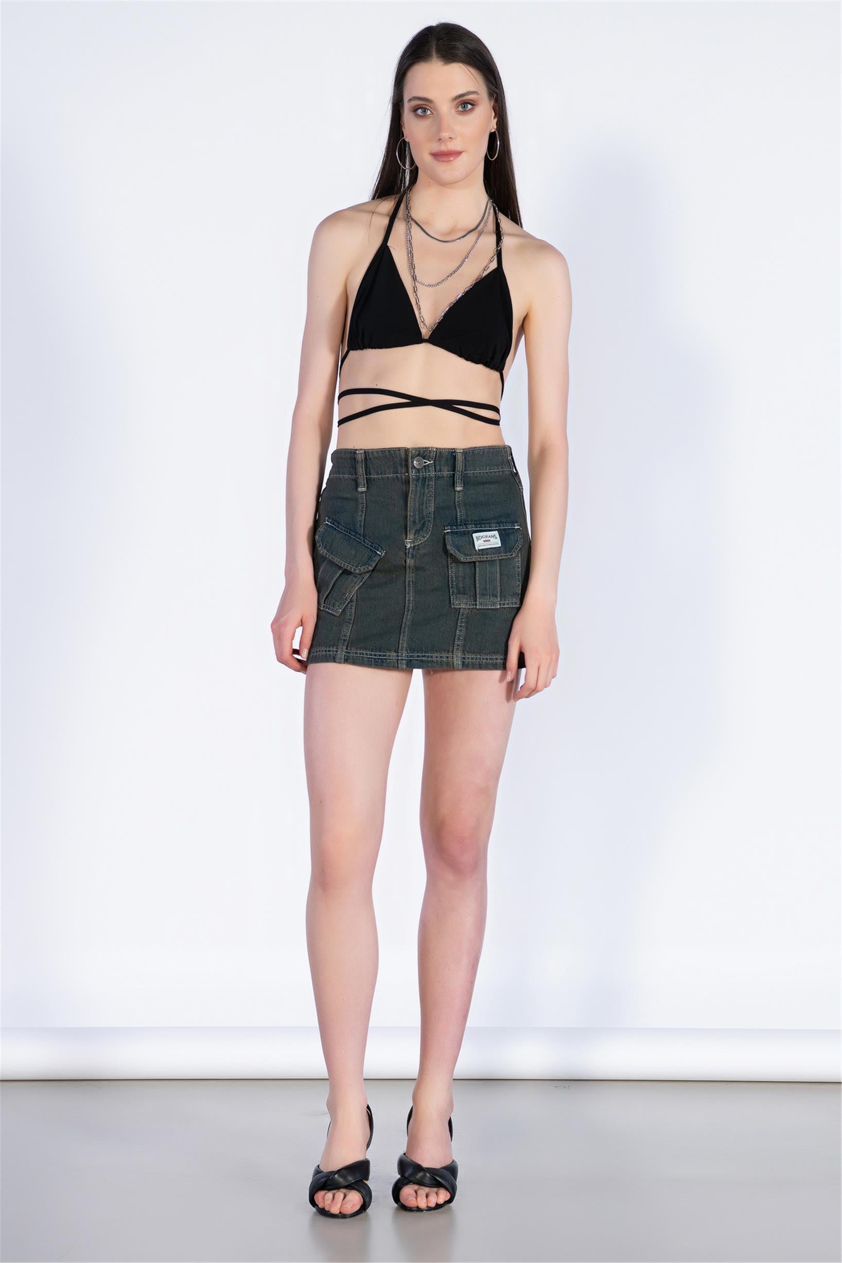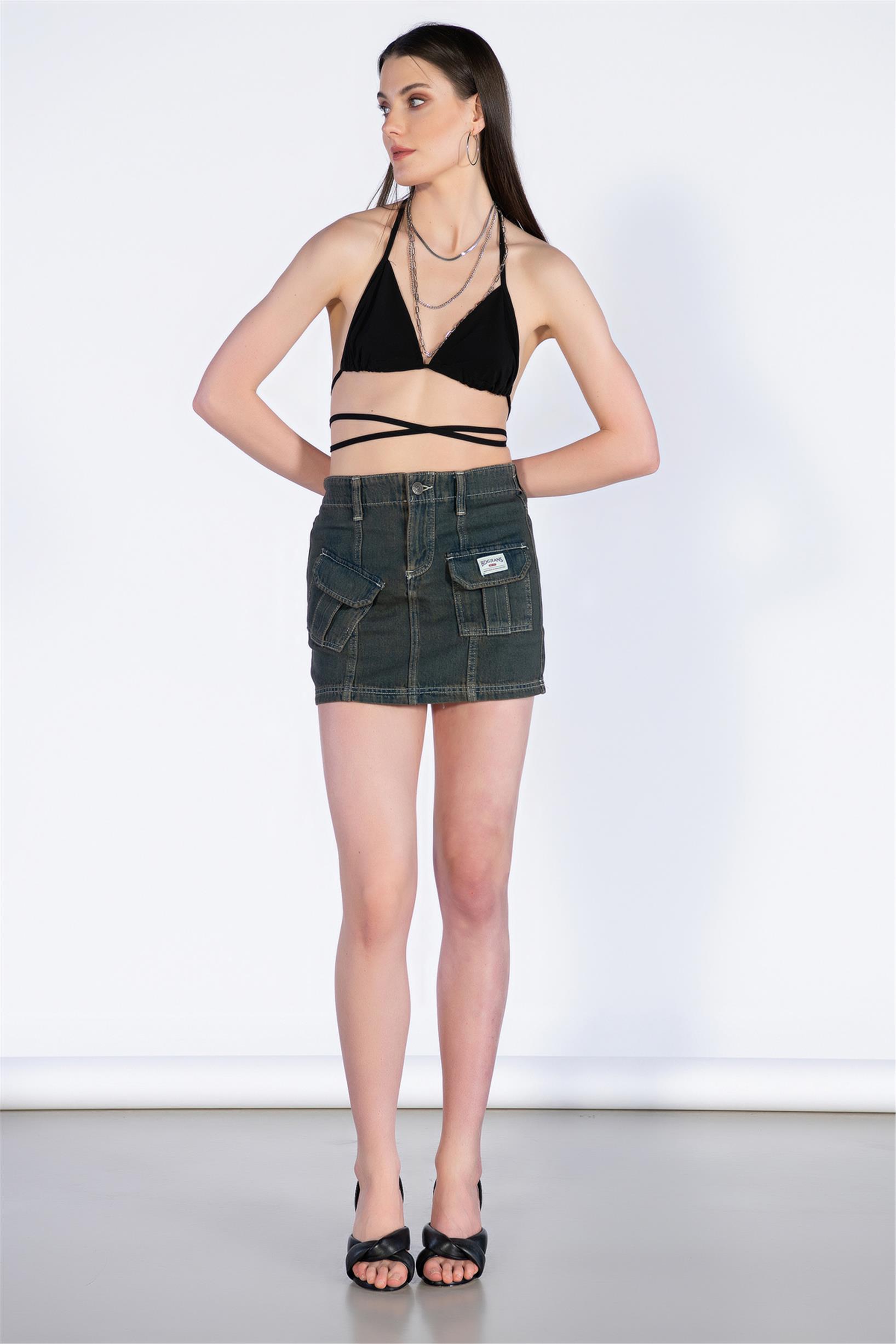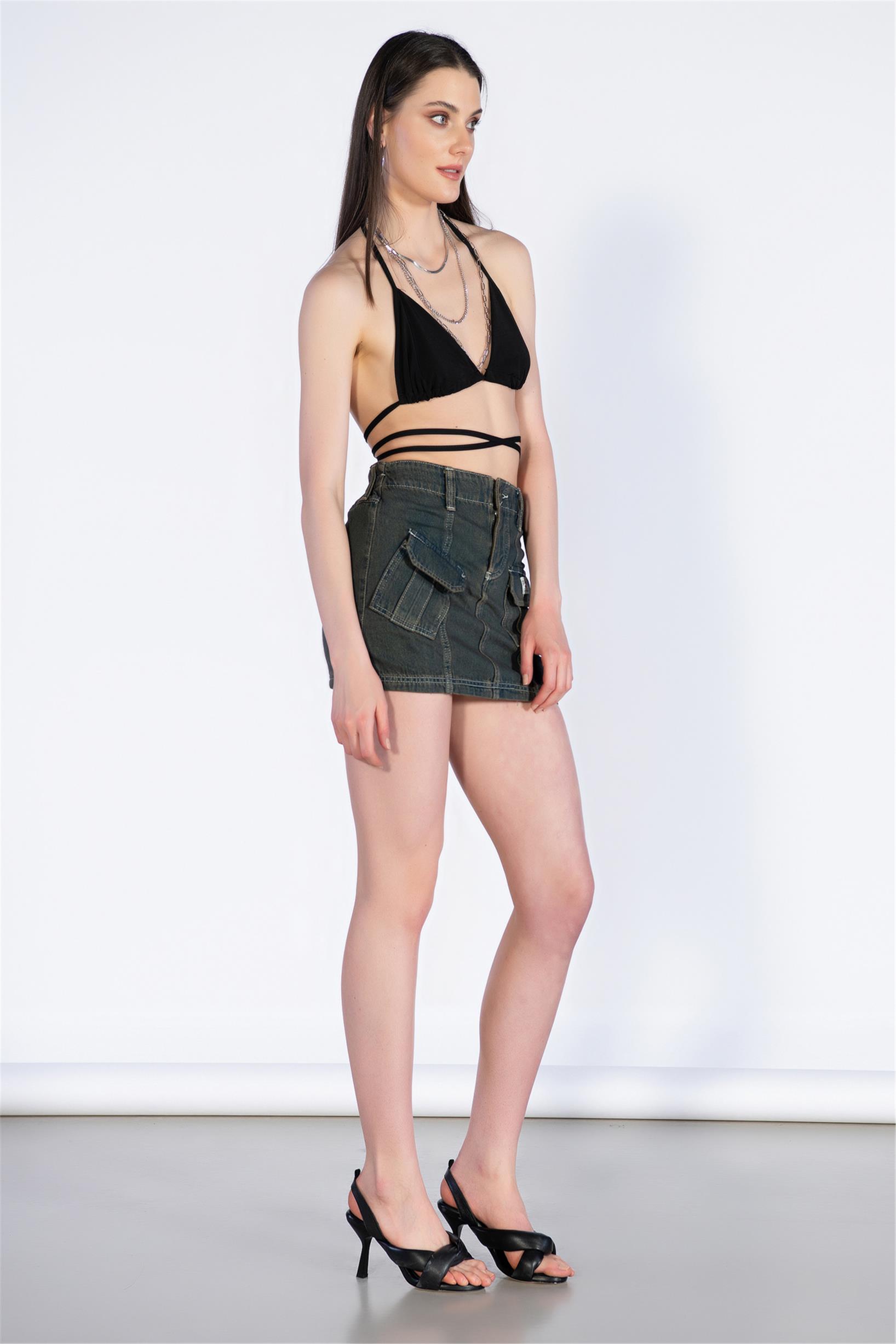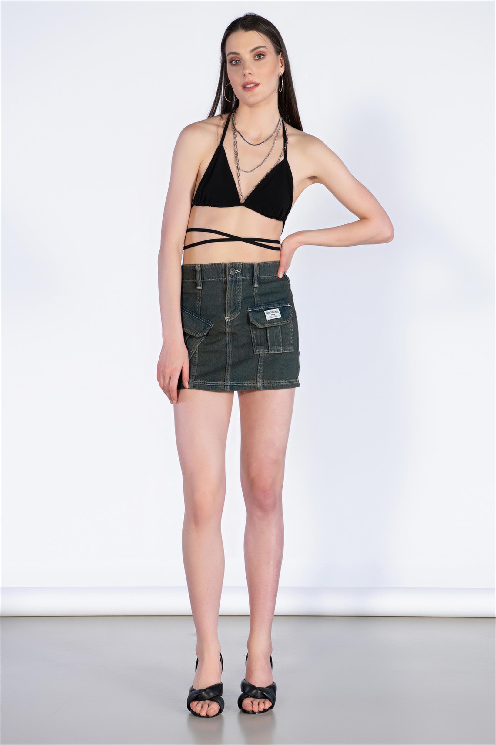 Vintage Mavi Normal Bel Mini Kargo Etek
